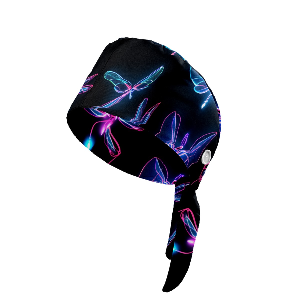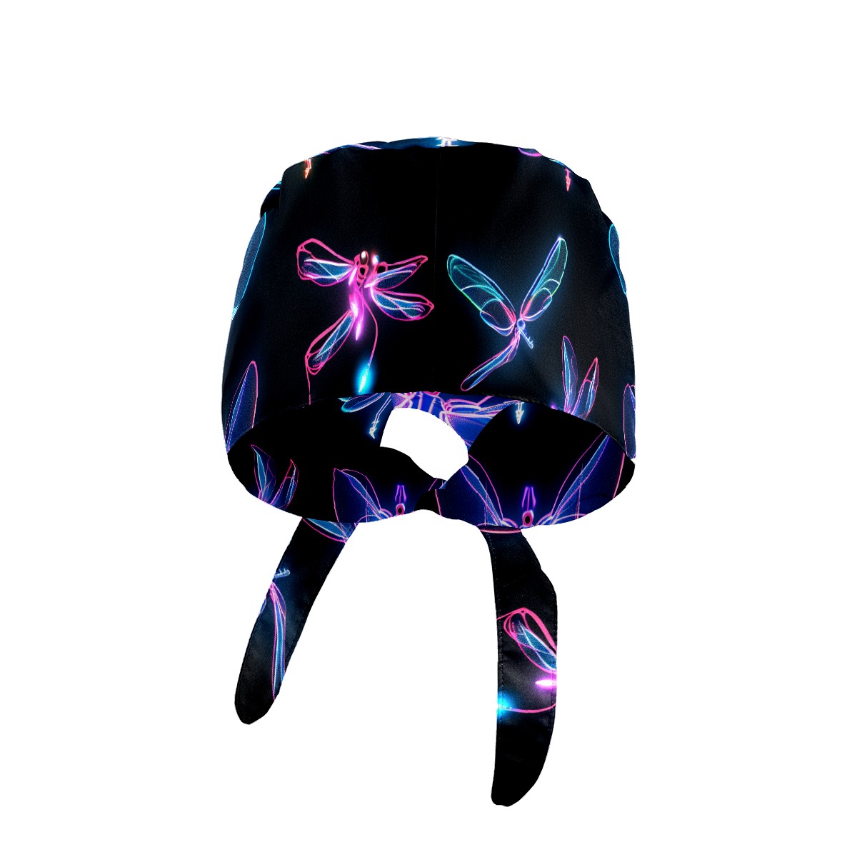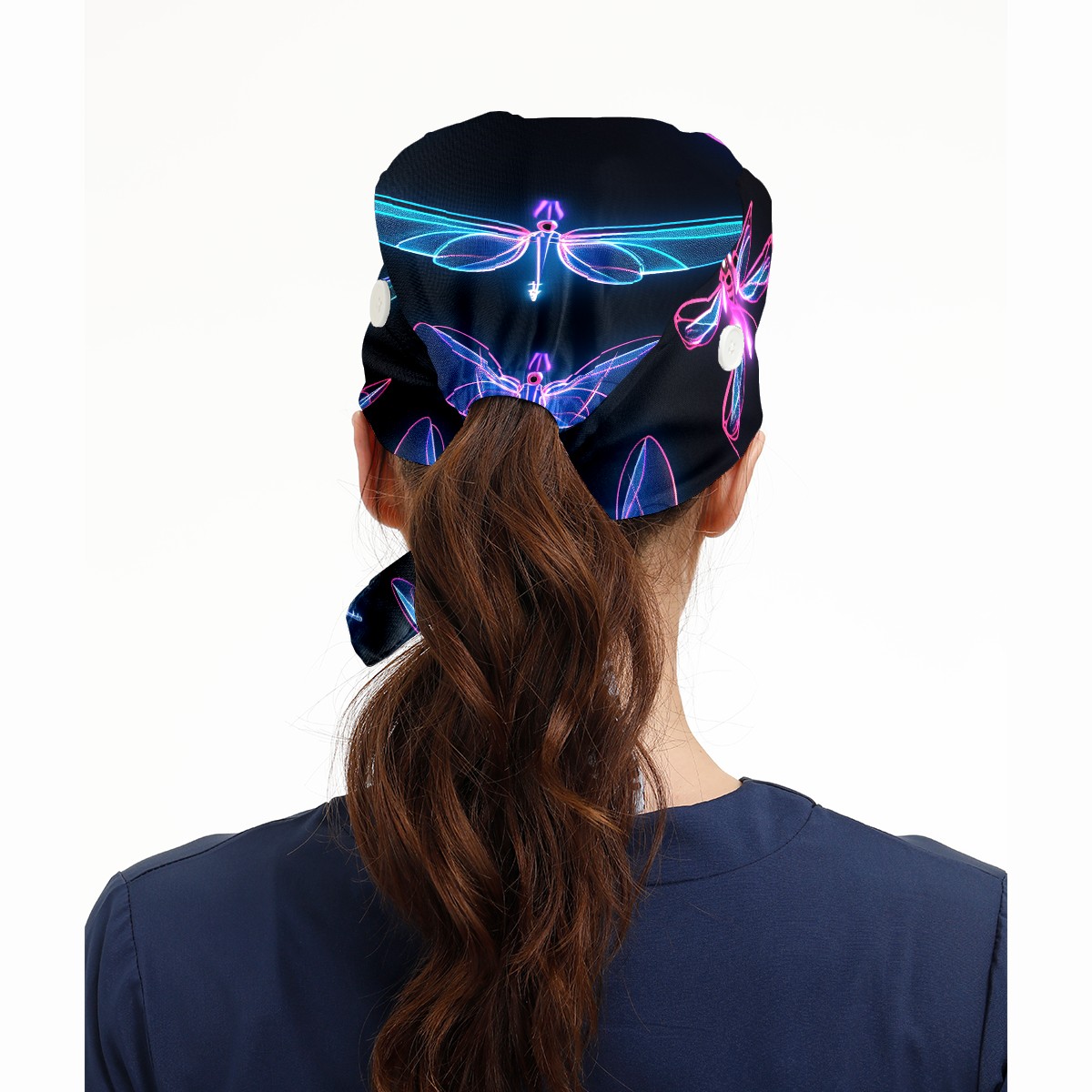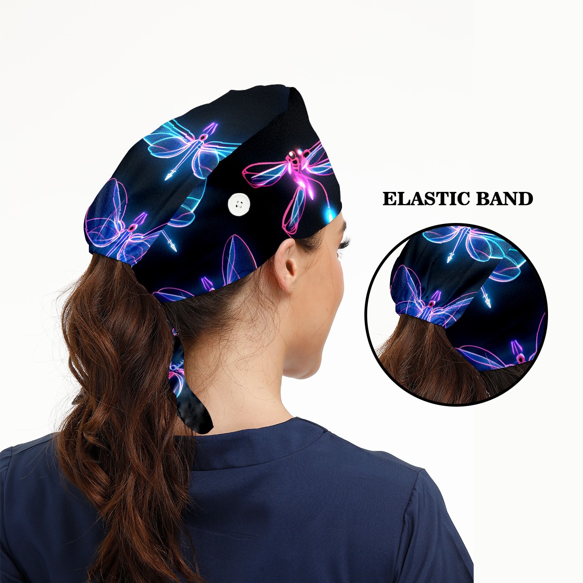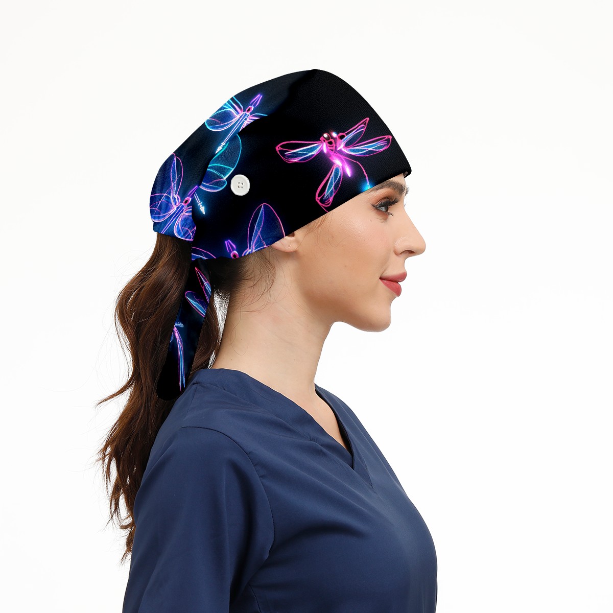 Working Caps with Button & Sweatband Satin Lined Cotton Adjustable Nurse Hats Elastic Band Scrub Cap Surgeon Hat Dragonfly (10)