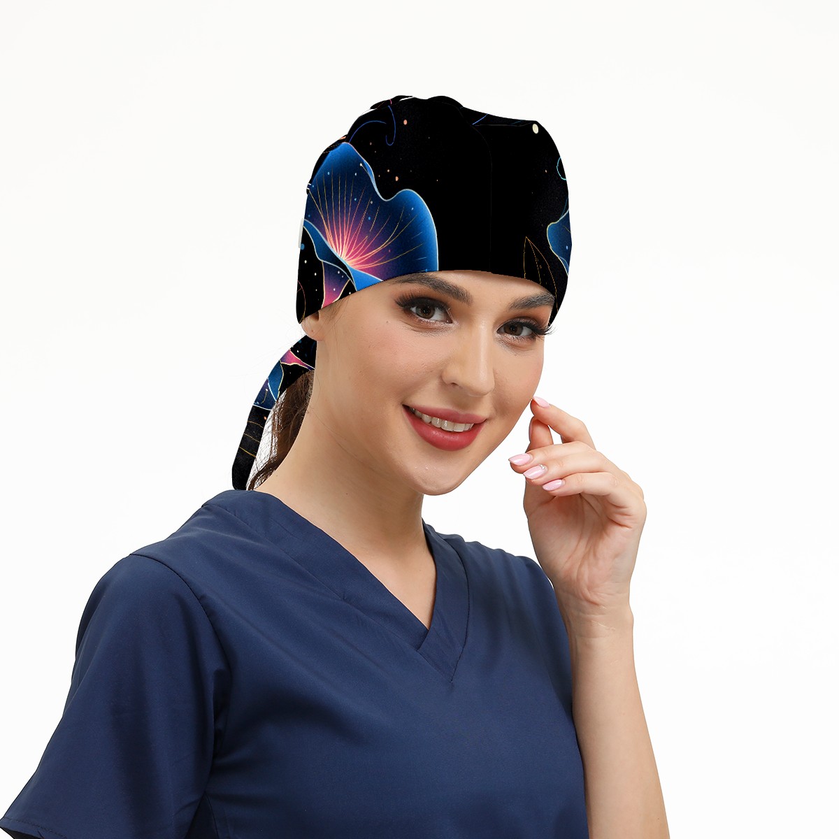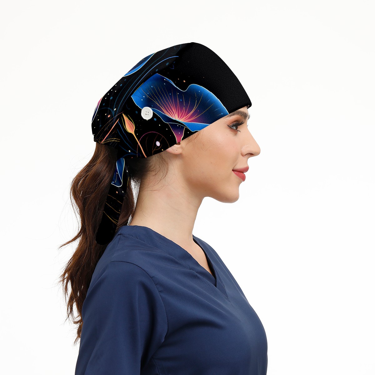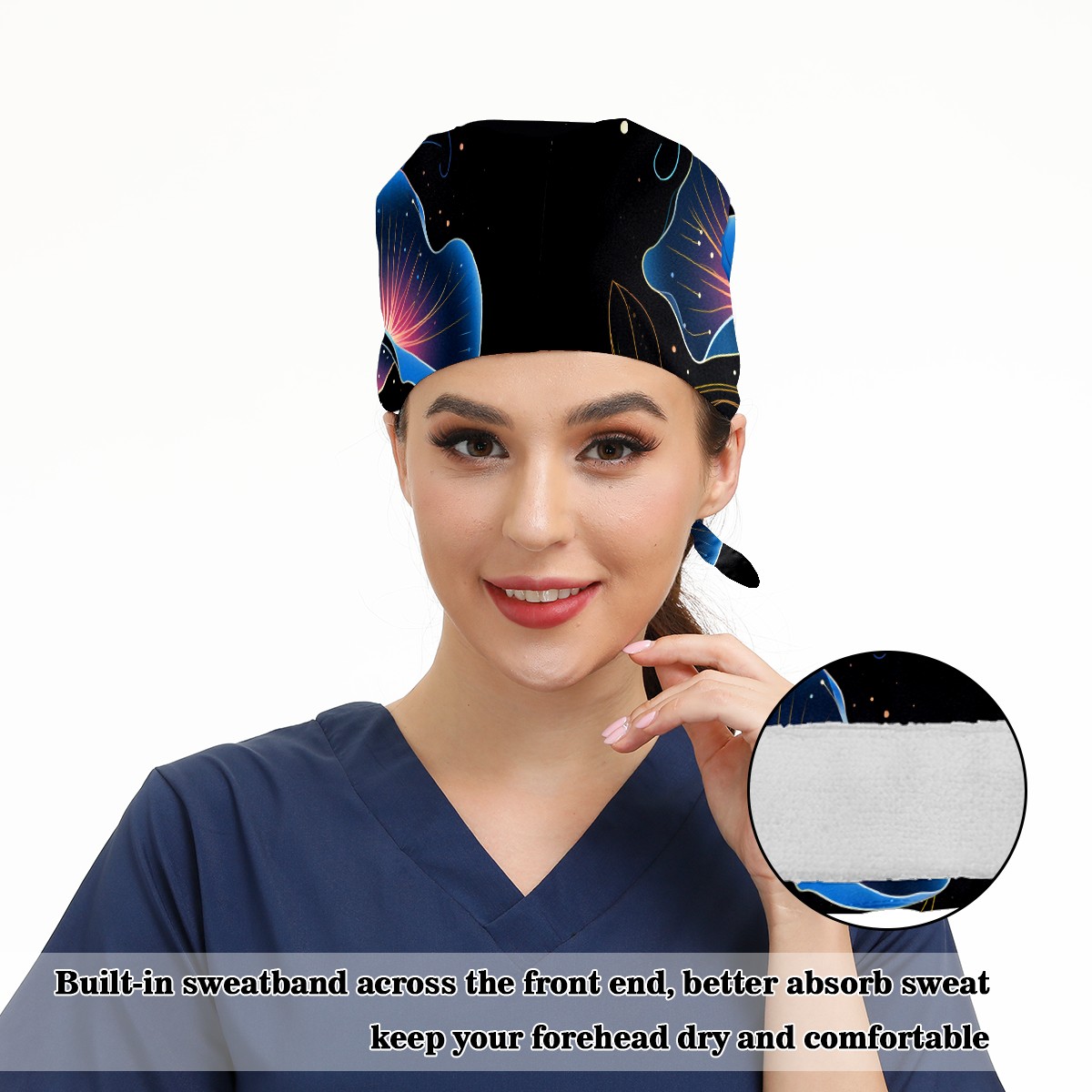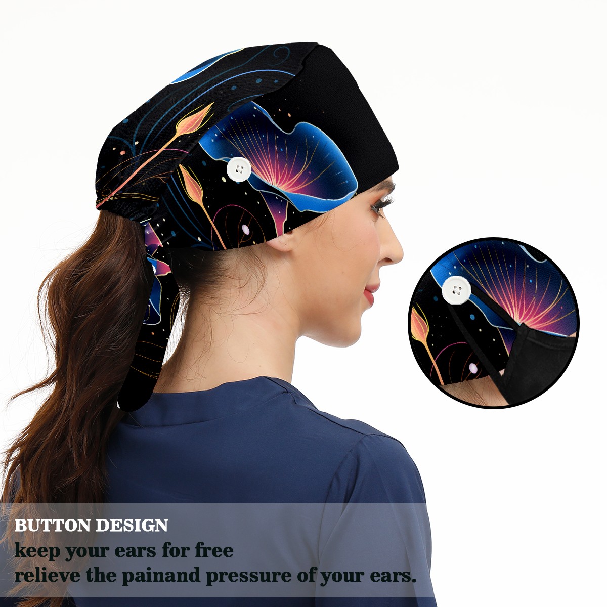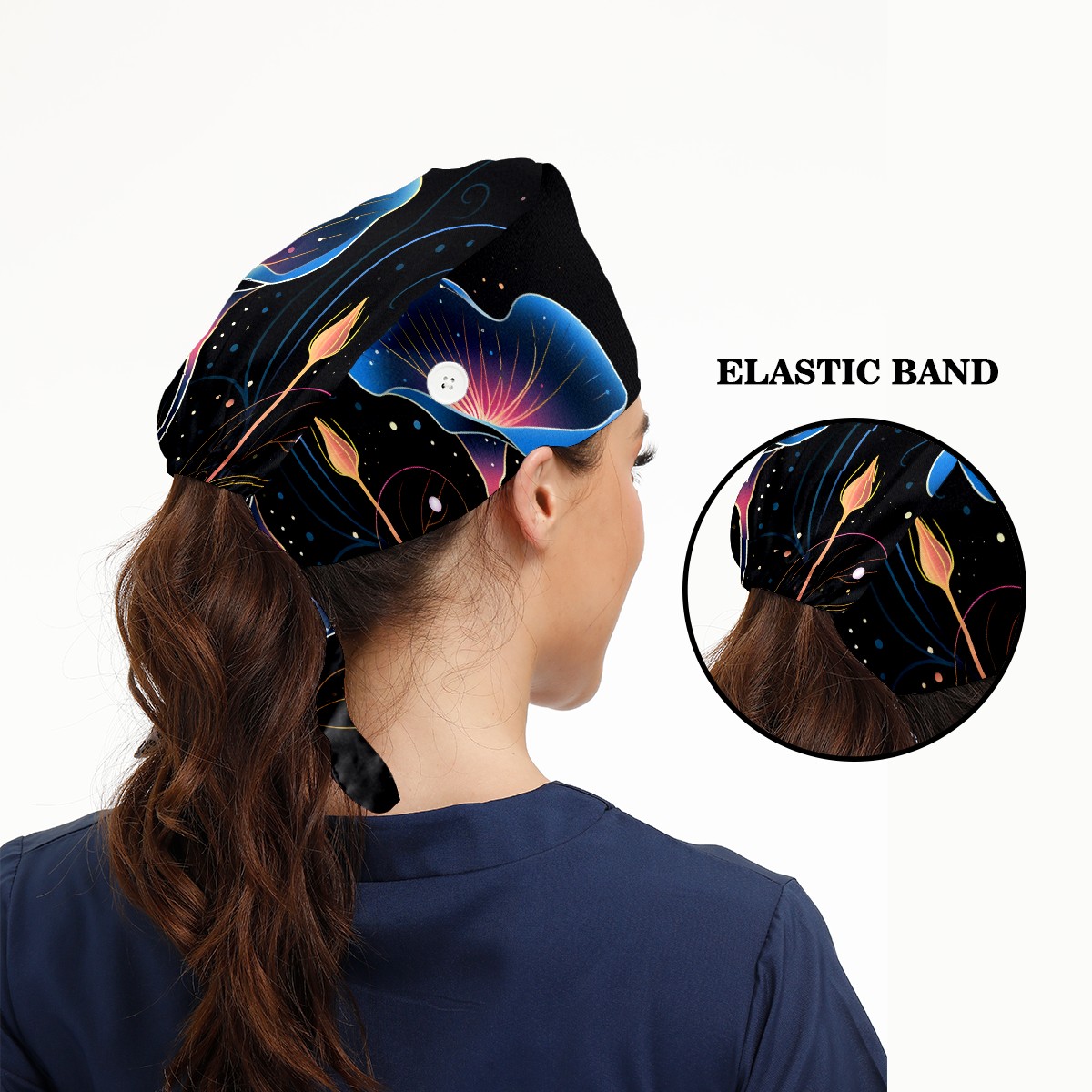 Working Caps with Button & Sweatband Satin Lined Cotton Adjustable Nurse Hats Elastic Band Scrub Cap Surgeon Hat Flower (177)