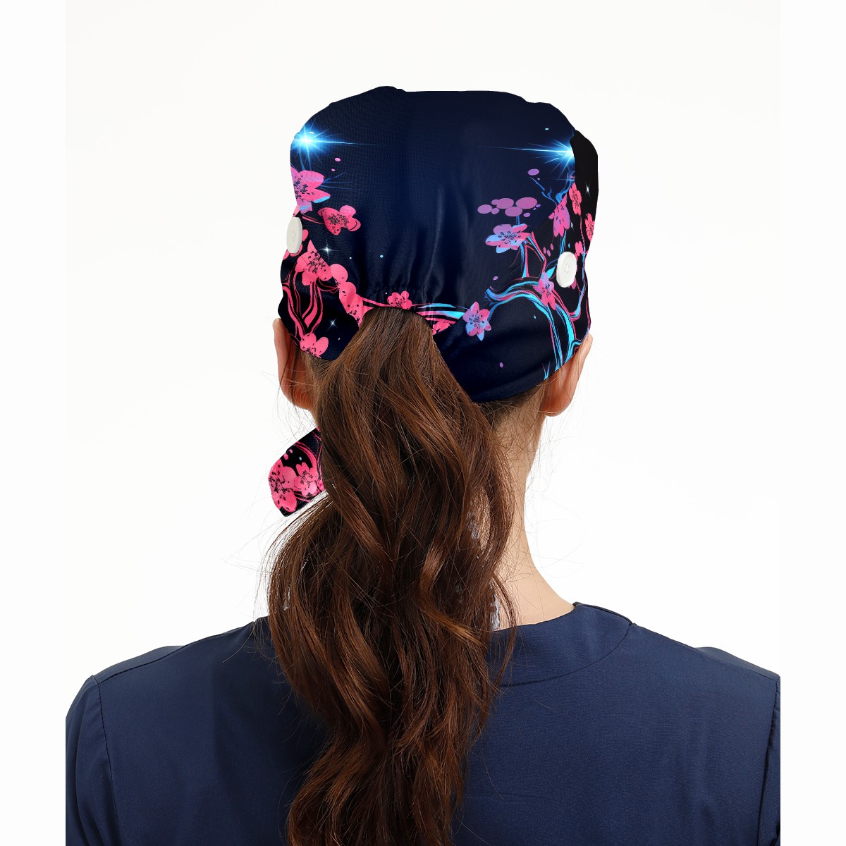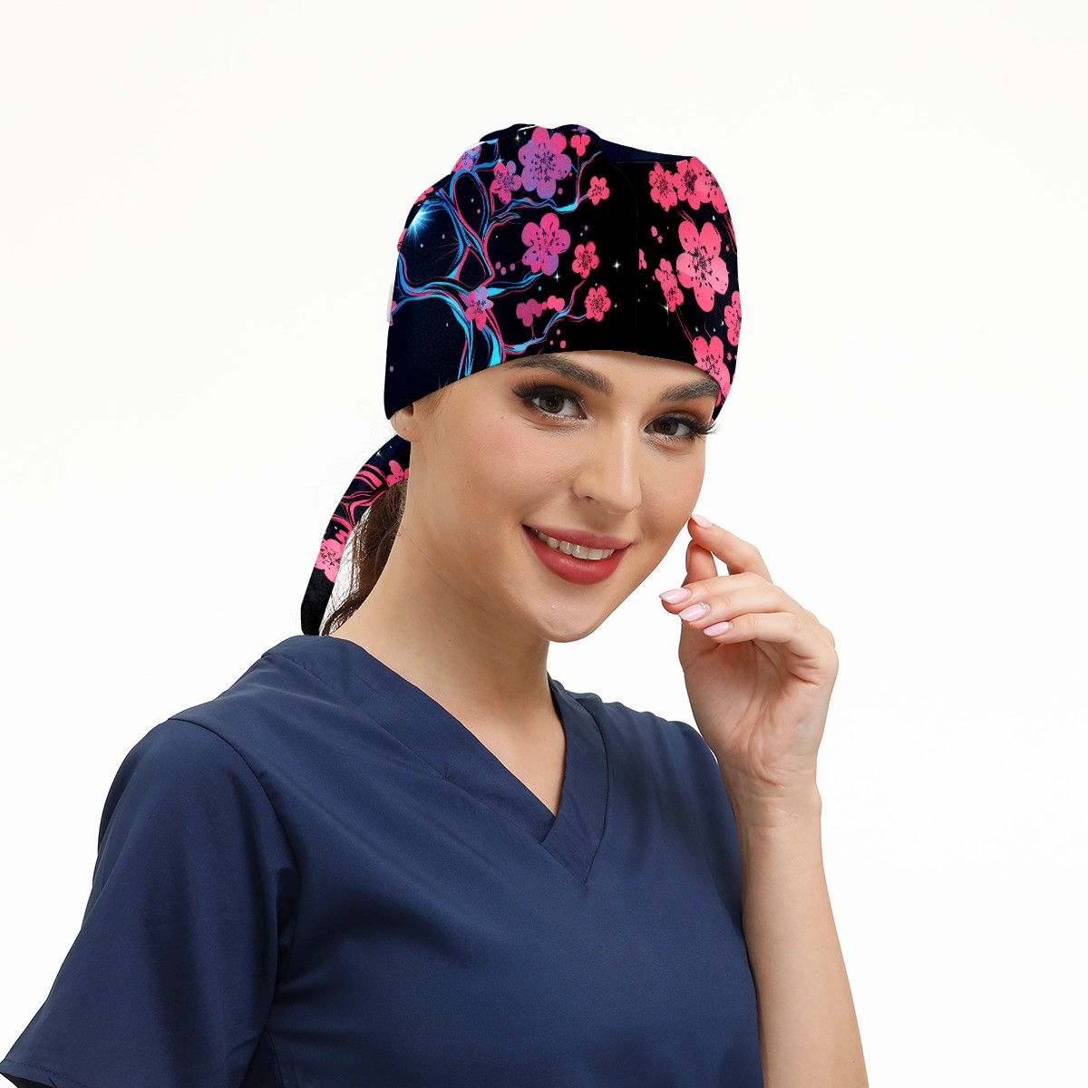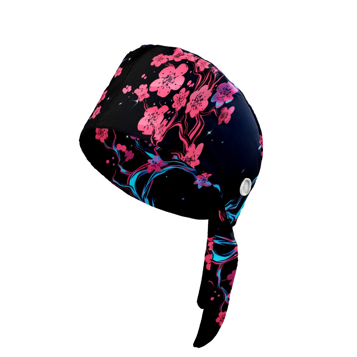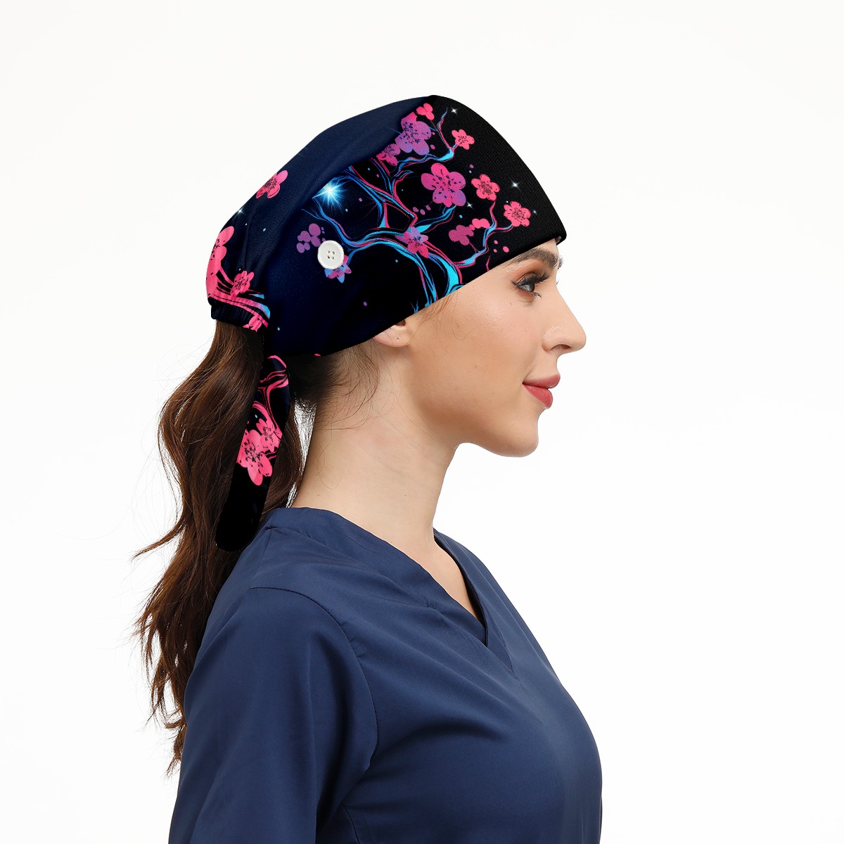 Working Caps with Button & Sweatband Satin Lined Cotton Adjustable Nurse Hats Elastic Band Scrub Cap Surgeon Hat Flower (99)