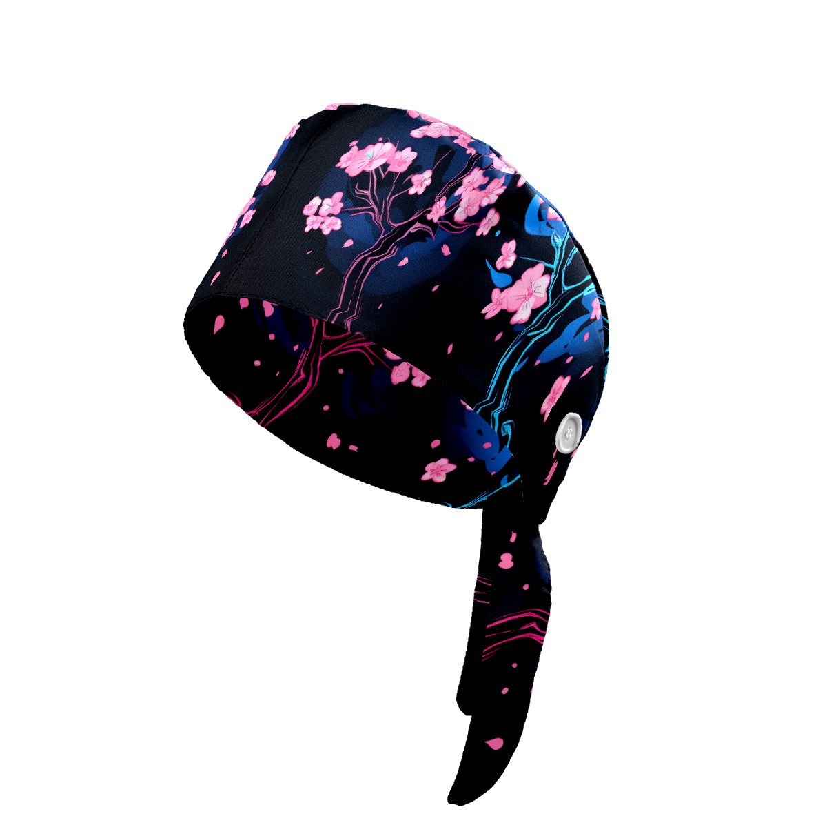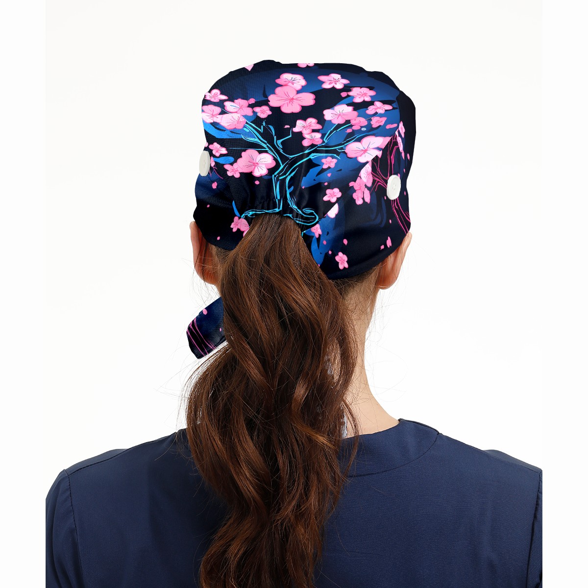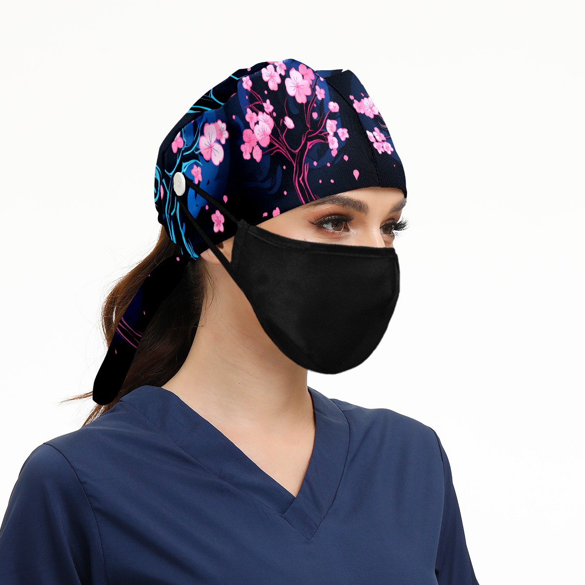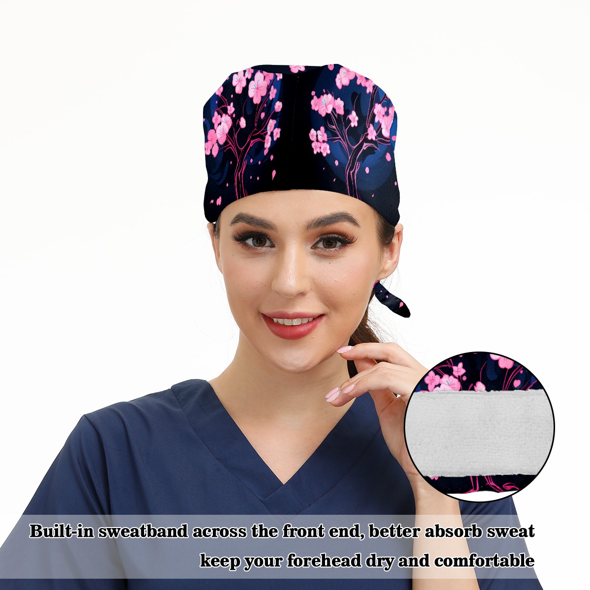 Working Caps with Button & Sweatband Satin Lined Cotton Adjustable Nurse Hats Elastic Band Scrub Cap Surgeon Hat Flower (90)