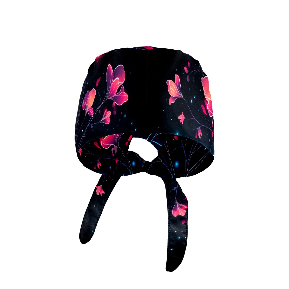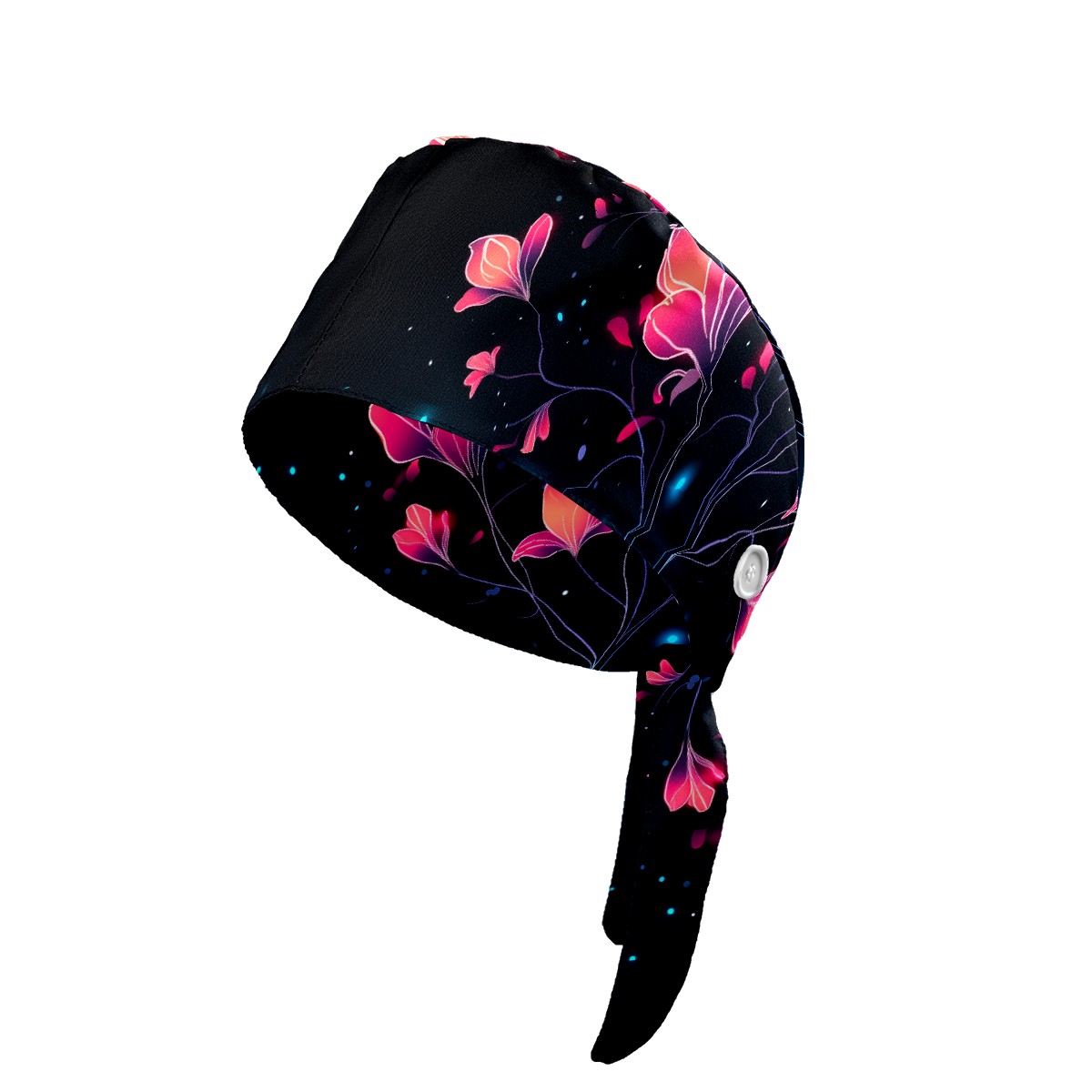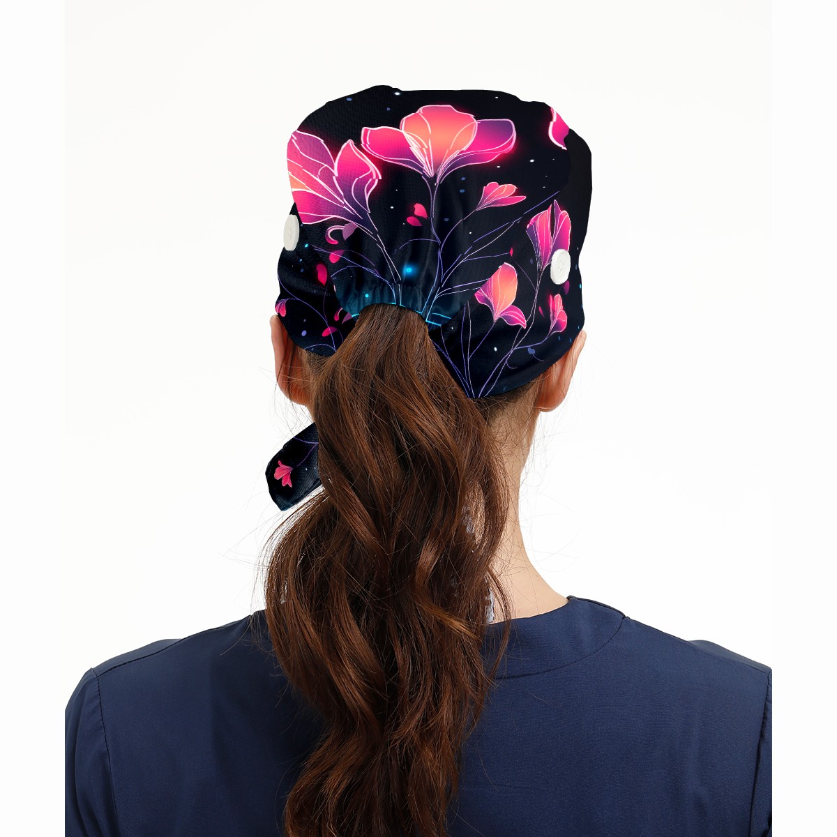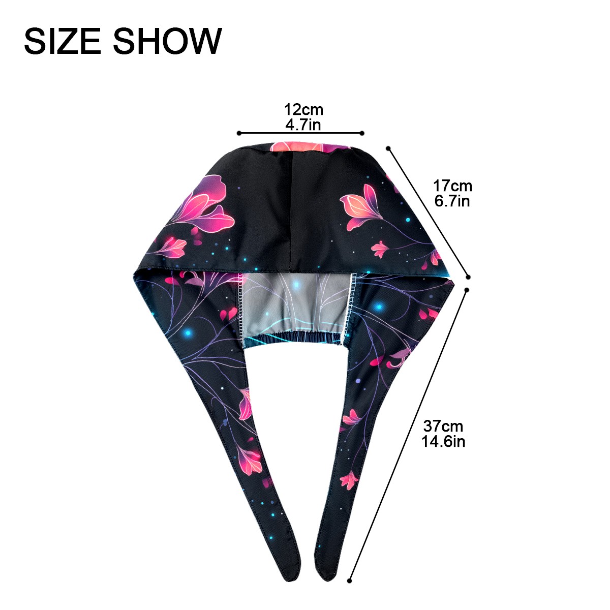 Working Caps with Button & Sweatband Satin Lined Cotton Adjustable Nurse Hats Elastic Band Scrub Cap Surgeon Hat Flower (32)