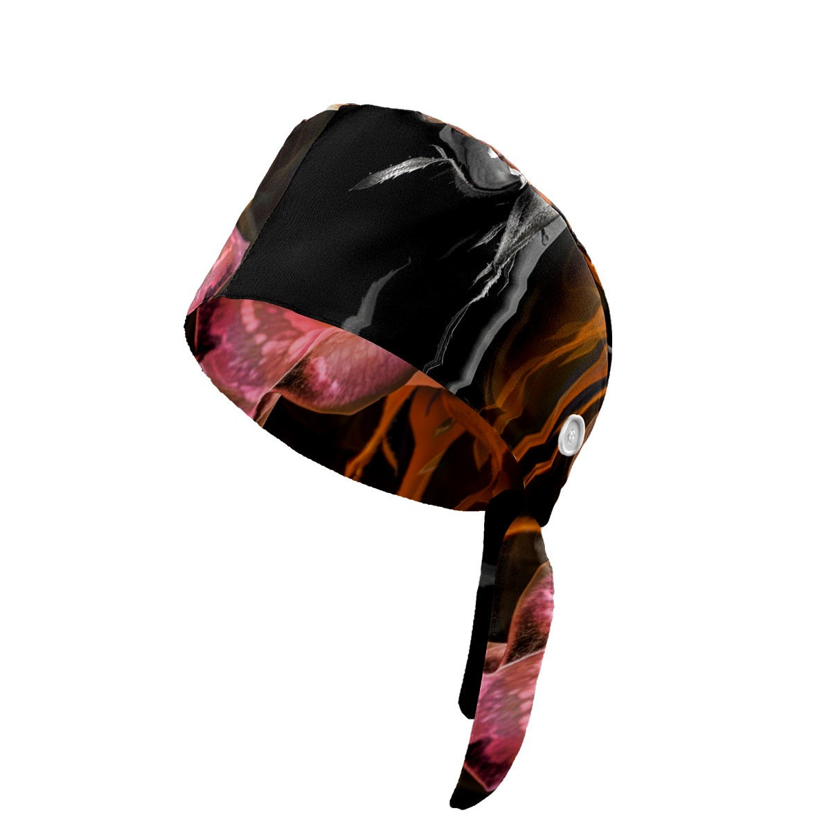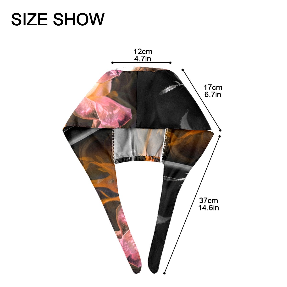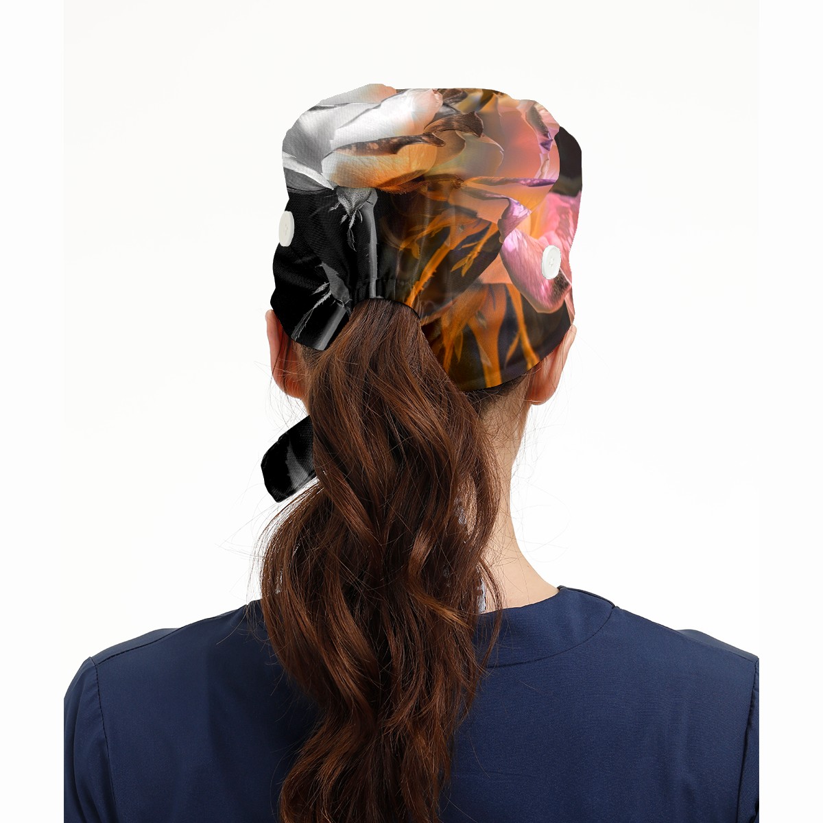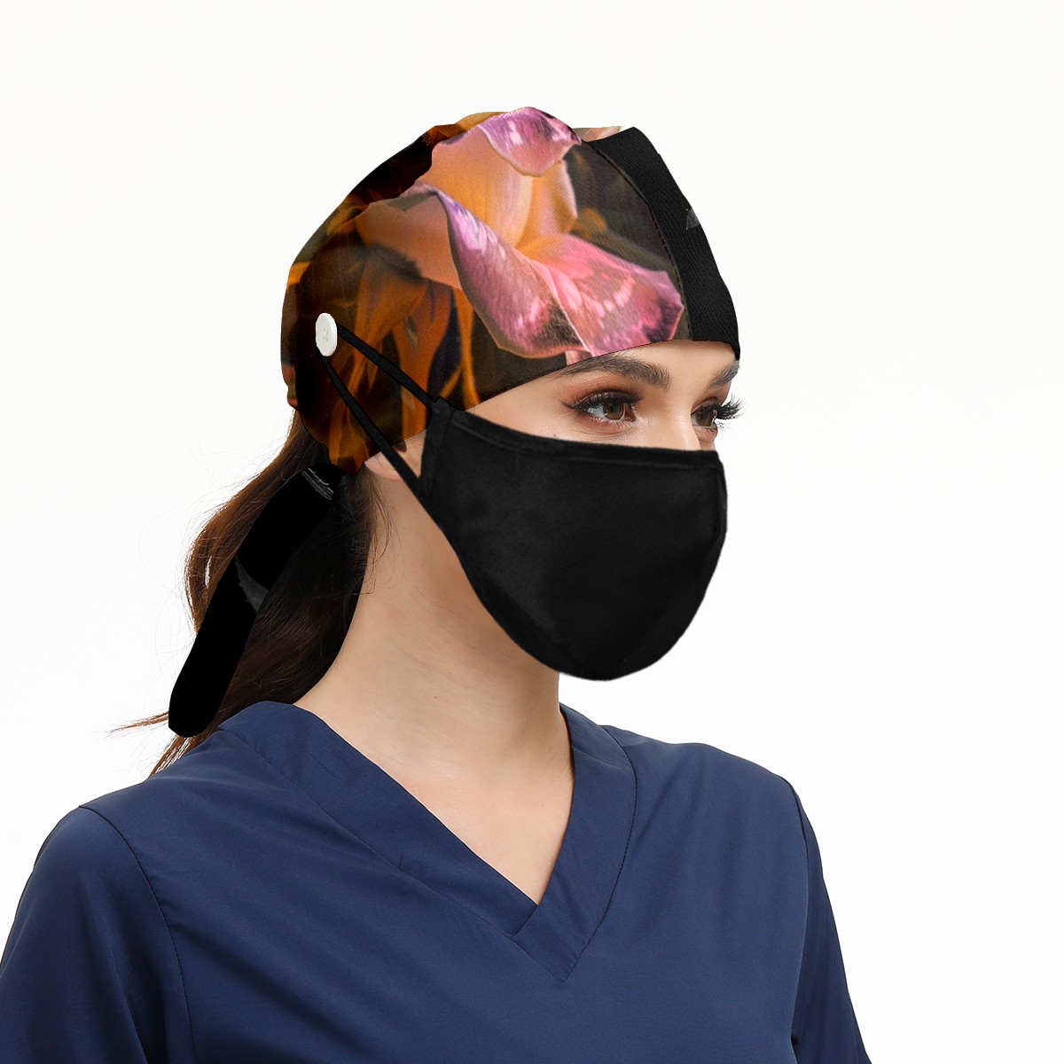 Working Caps with Button & Sweatband Satin Lined Cotton Adjustable Nurse Hats Elastic Band Scrub Cap Surgeon Hat Roses (6)
