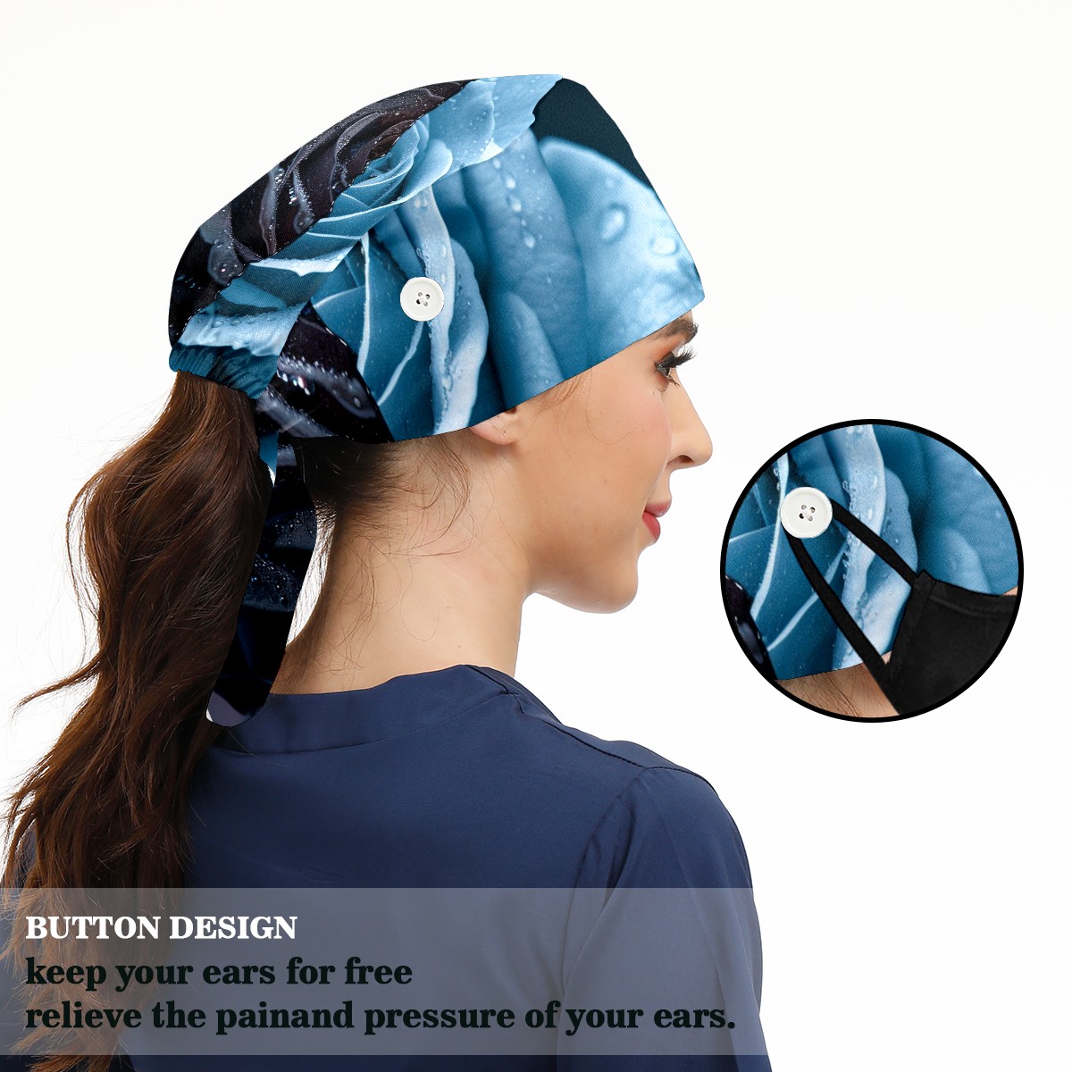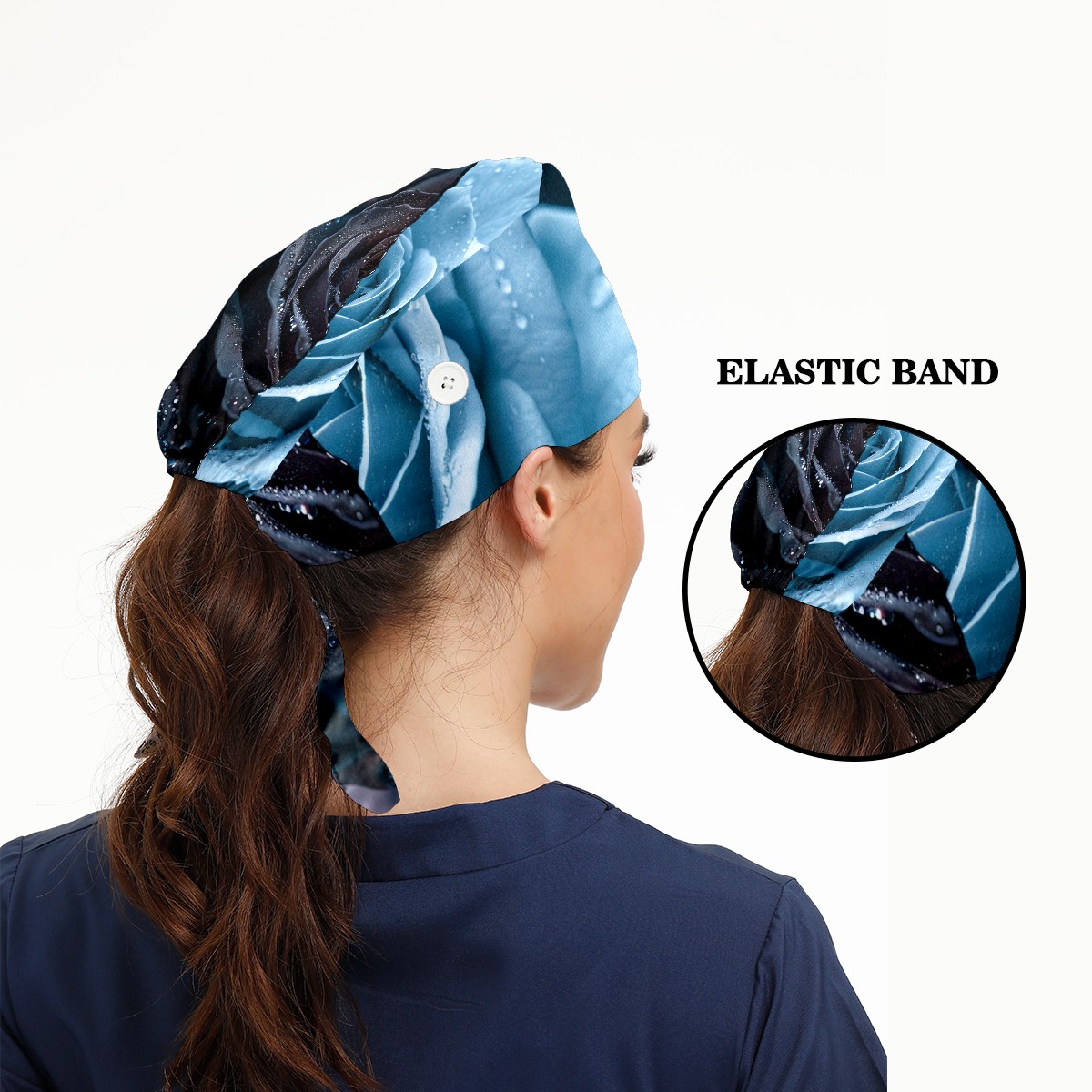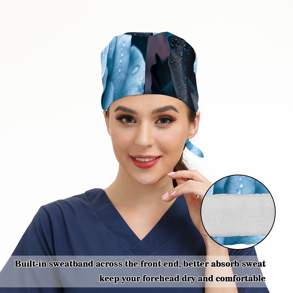 Working Caps with Button & Sweatband Satin Lined Cotton Adjustable Nurse Hats Elastic Band Scrub Cap Surgeon Hat Roses (2)