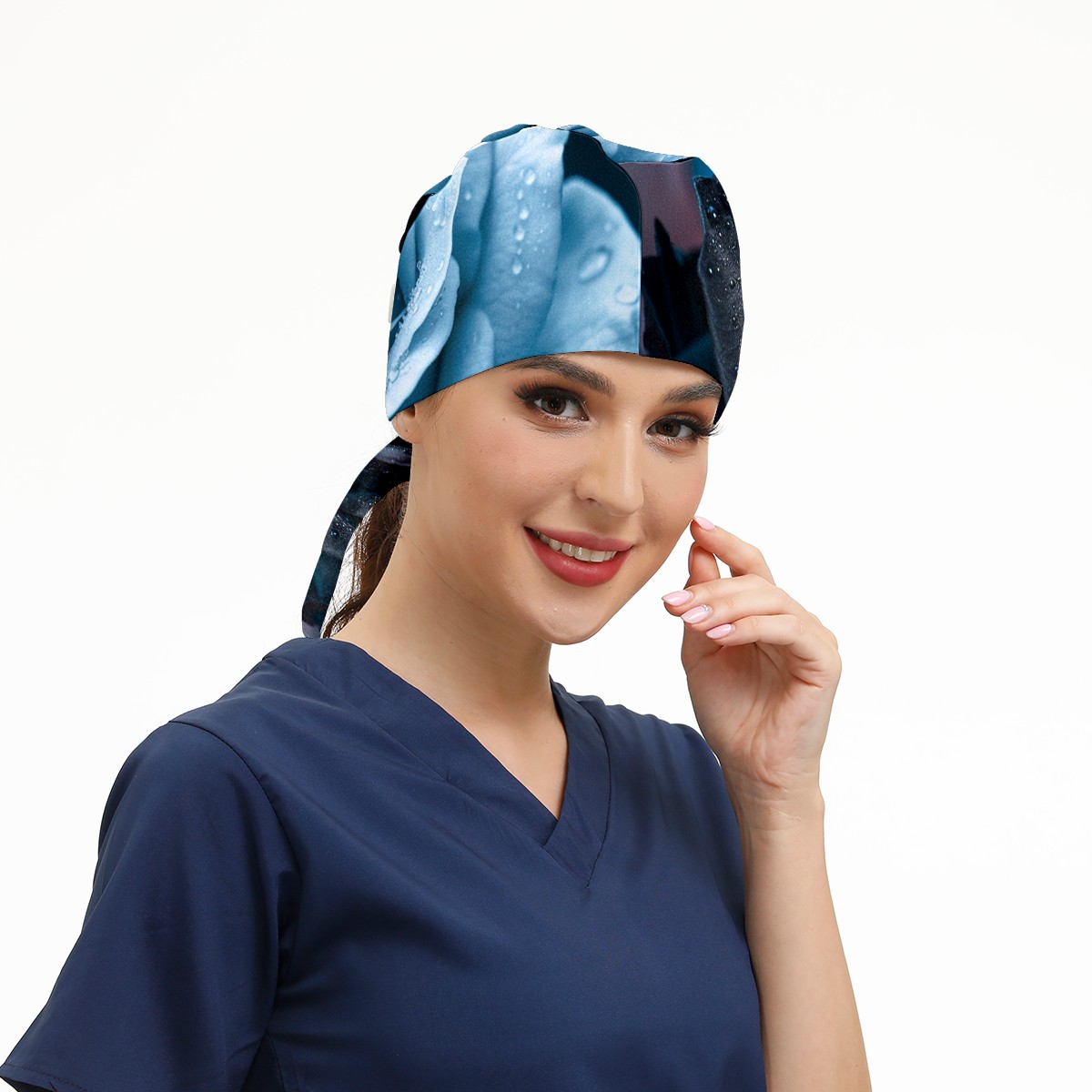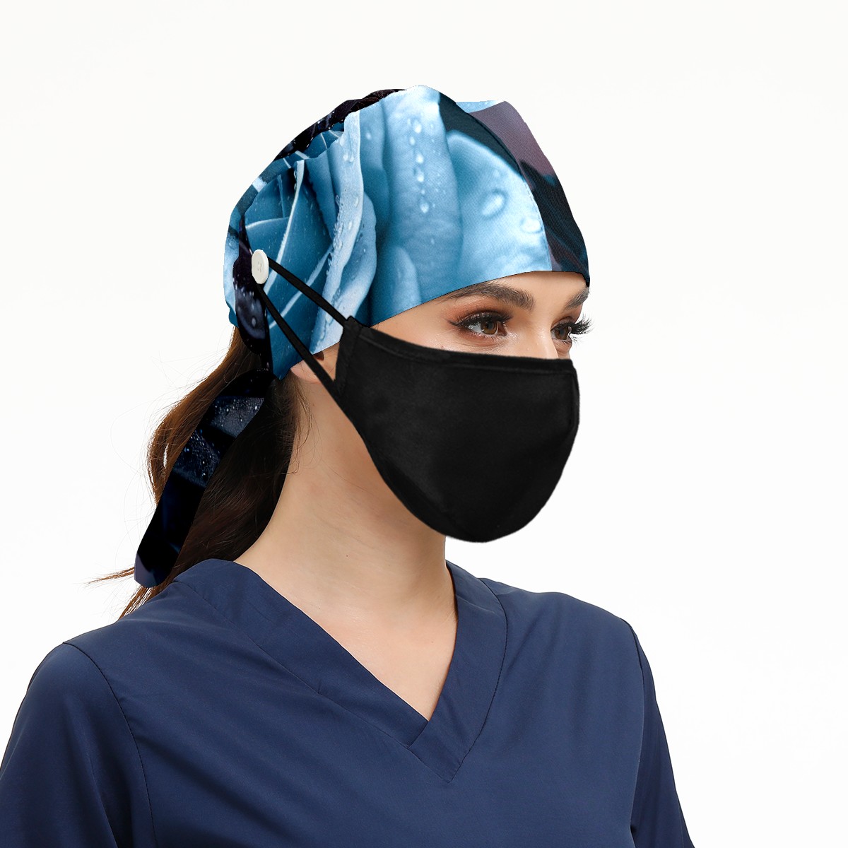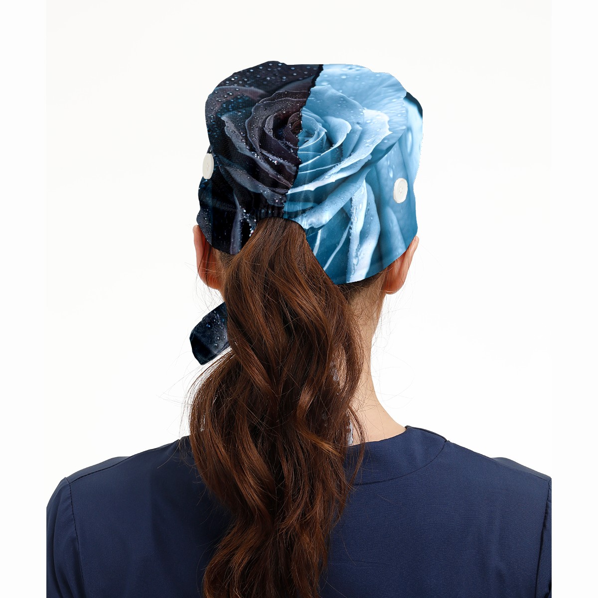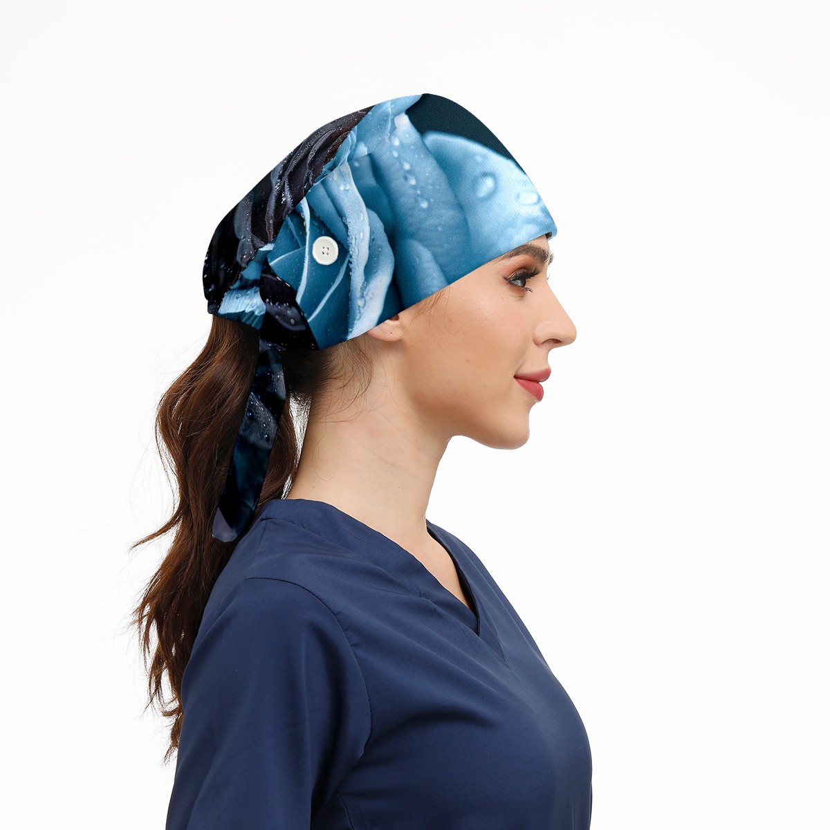 Working Caps with Button & Sweatband Satin Lined Cotton Adjustable Nurse Hats Elastic Band Scrub Cap Surgeon Hat Roses (2)