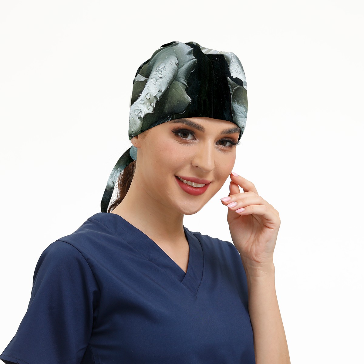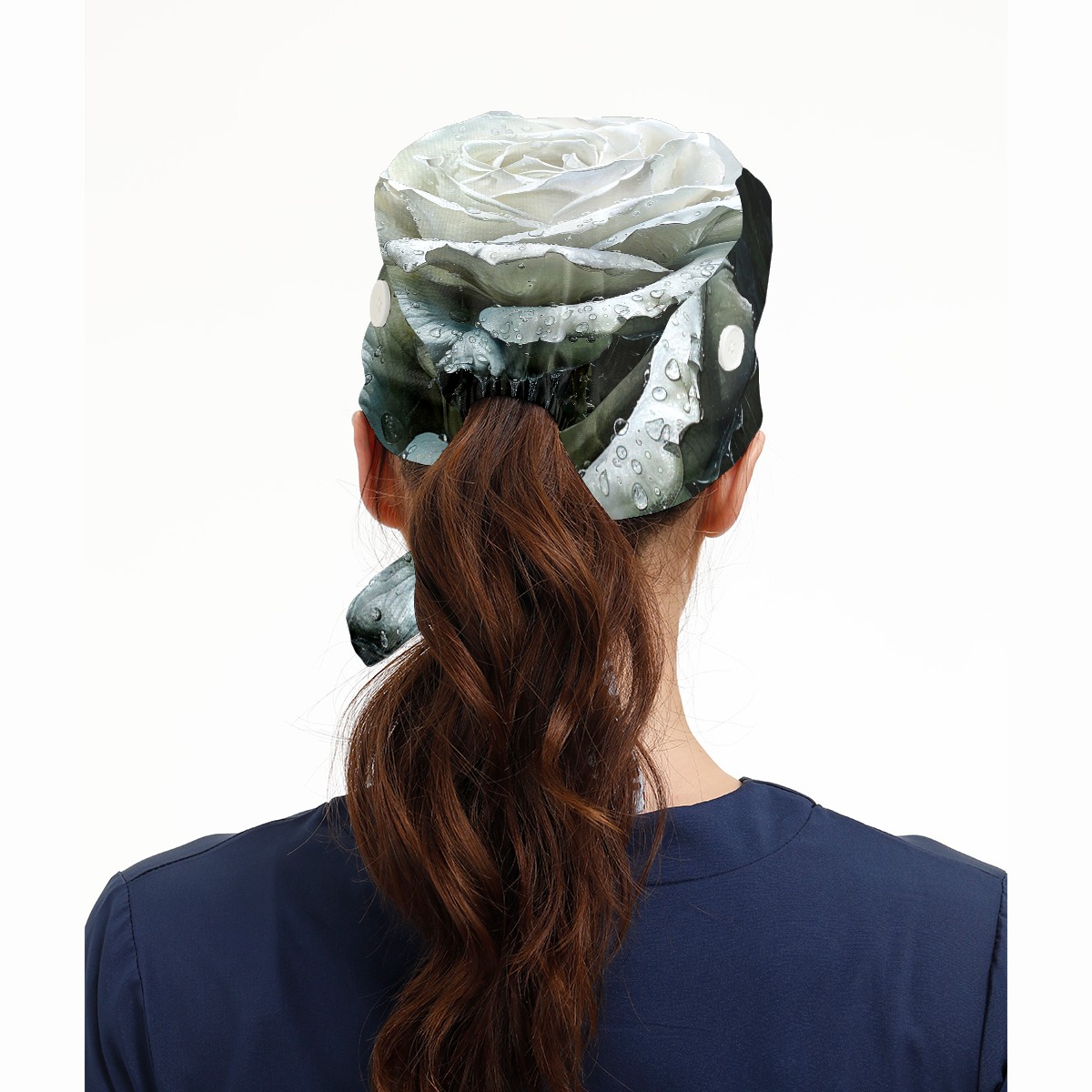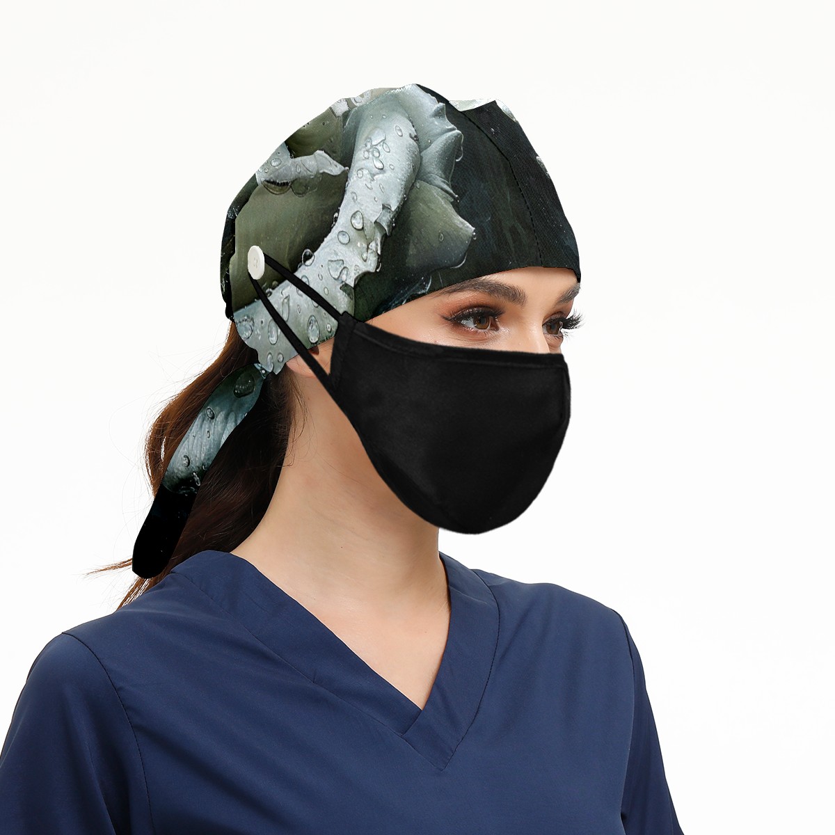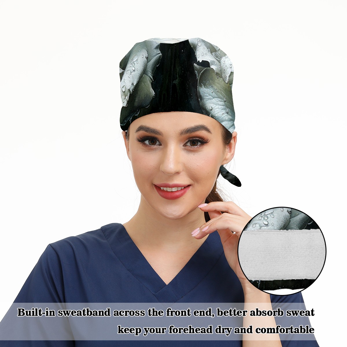 Working Caps with Button & Sweatband Satin Lined Cotton Adjustable Nurse Hats Elastic Band Scrub Cap Surgeon Hat Rose Flower (4)