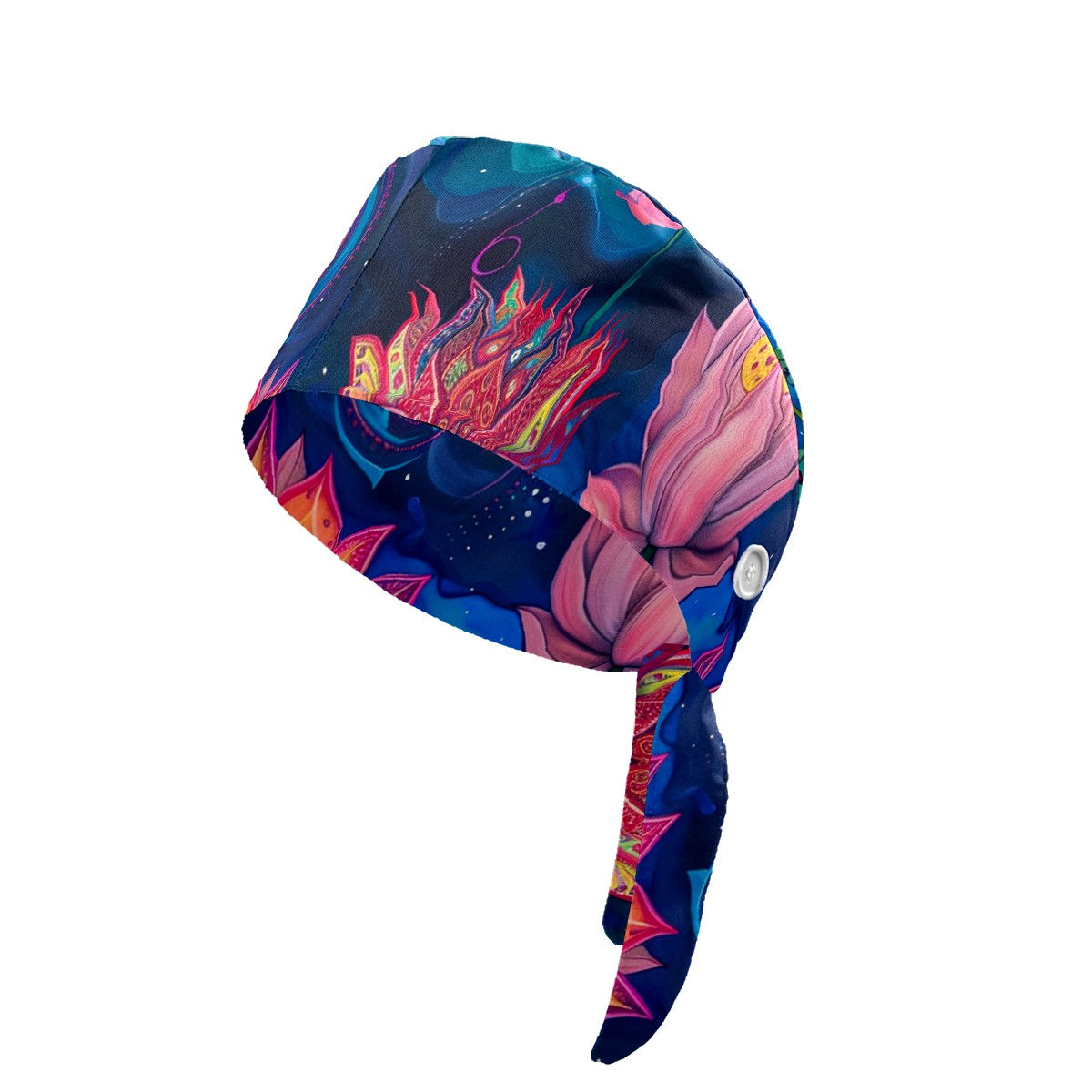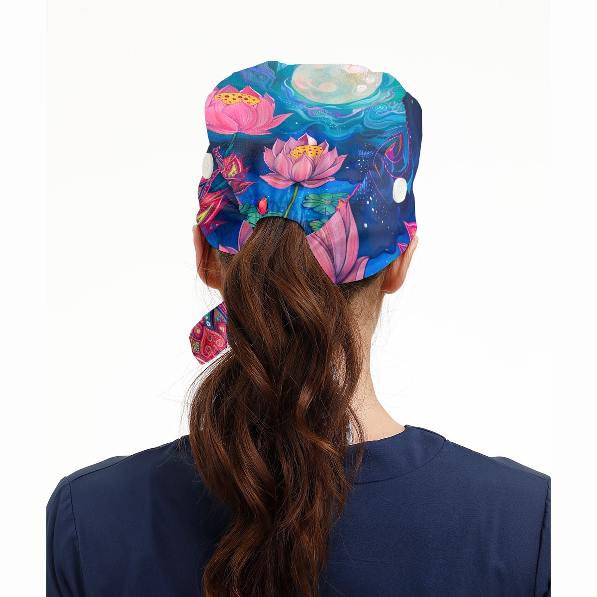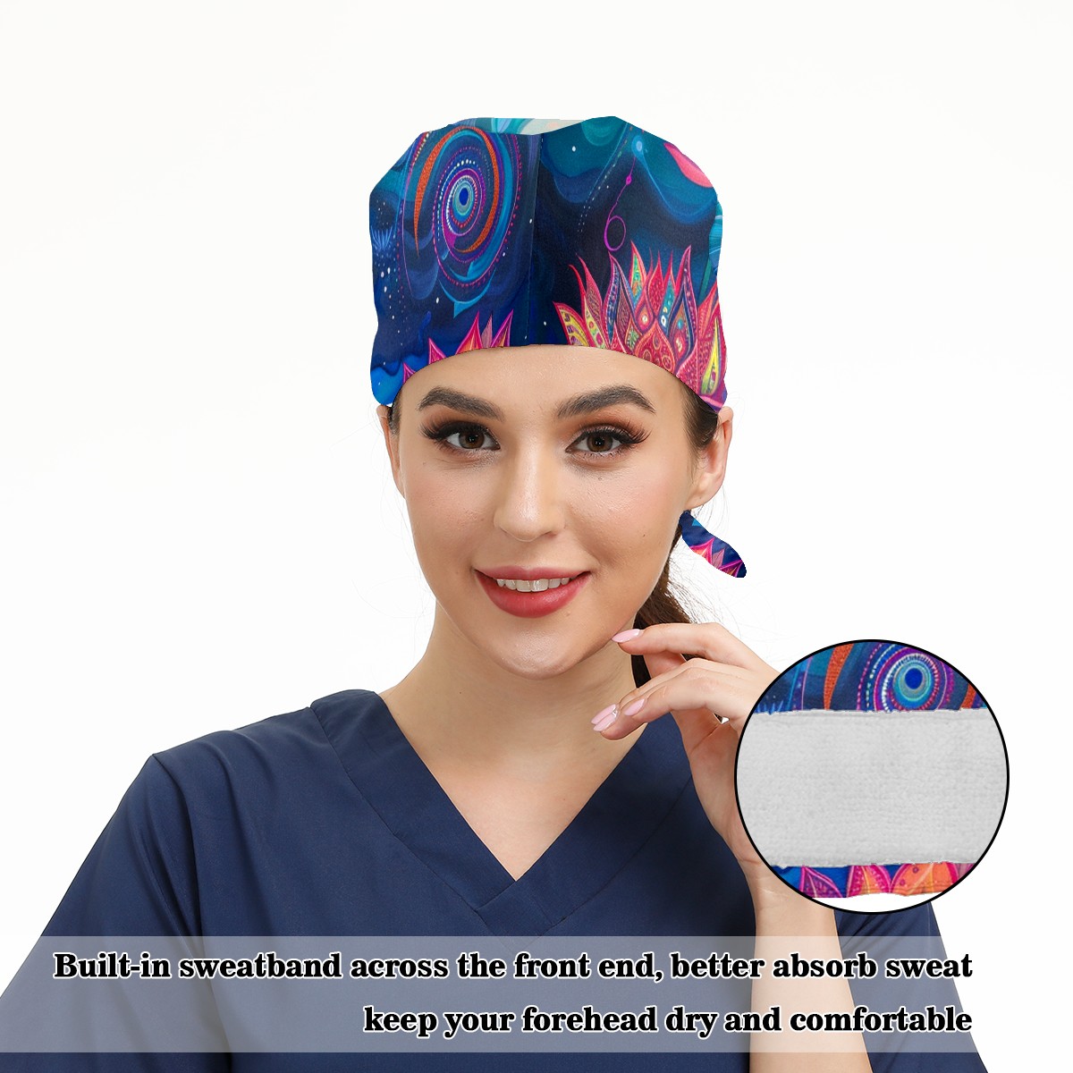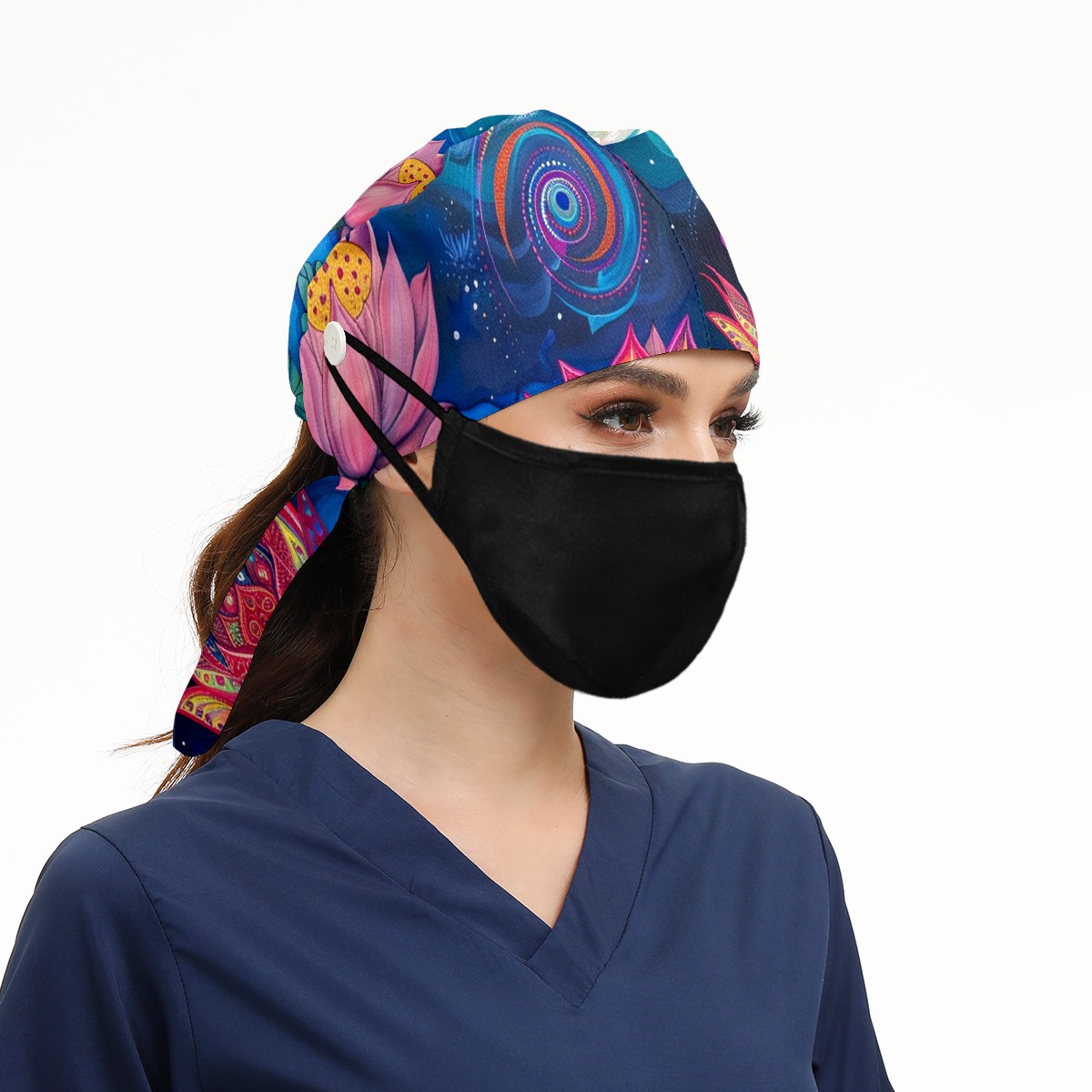 Working Caps with Button & Sweatband Satin Lined Cotton Adjustable Nurse Hats Elastic Band Scrub Cap Surgeon Hat Lotus