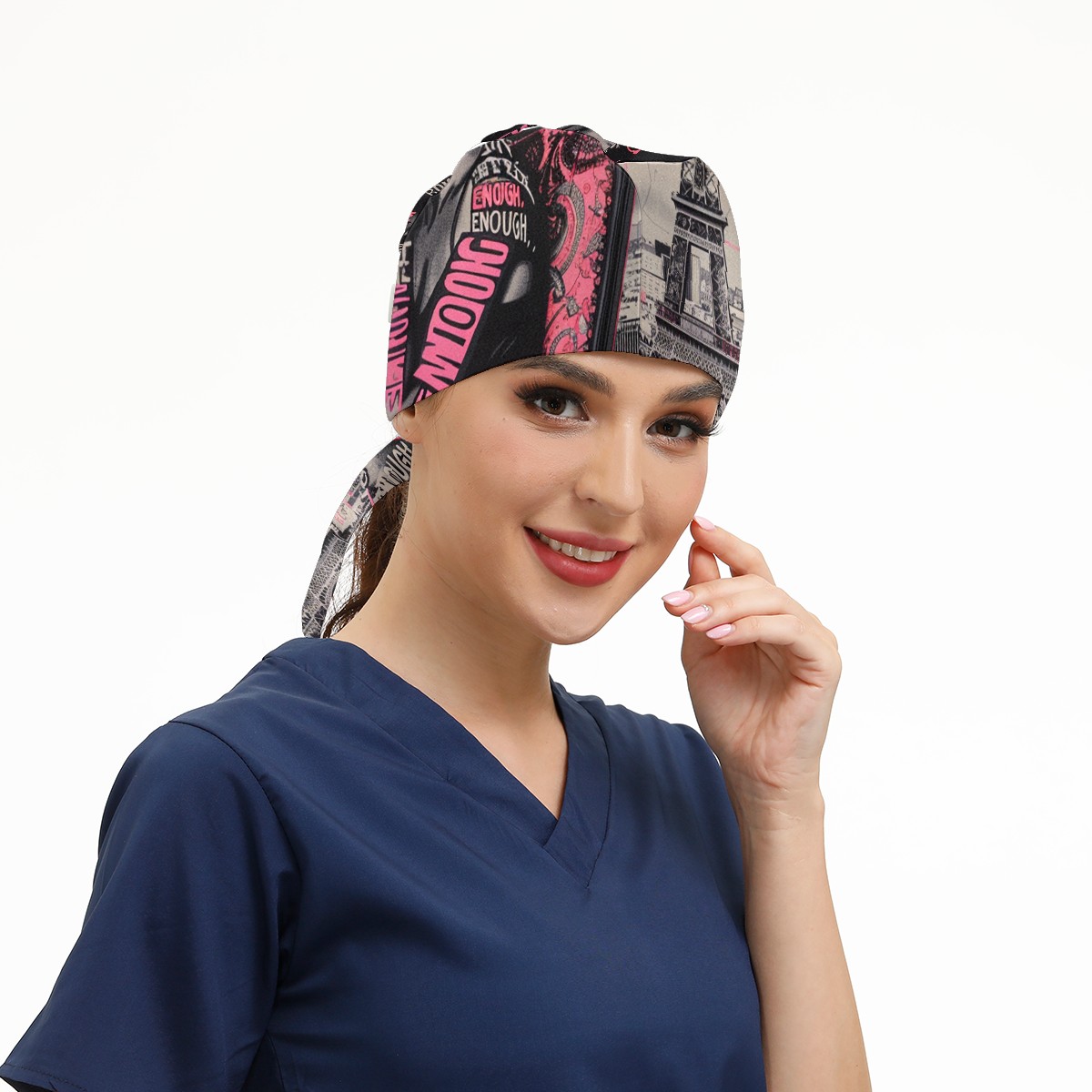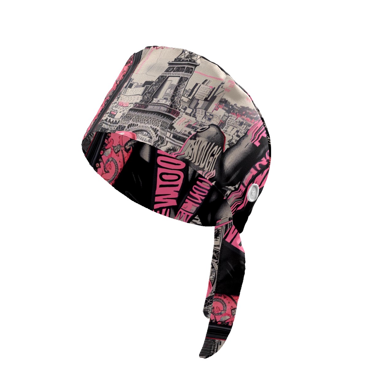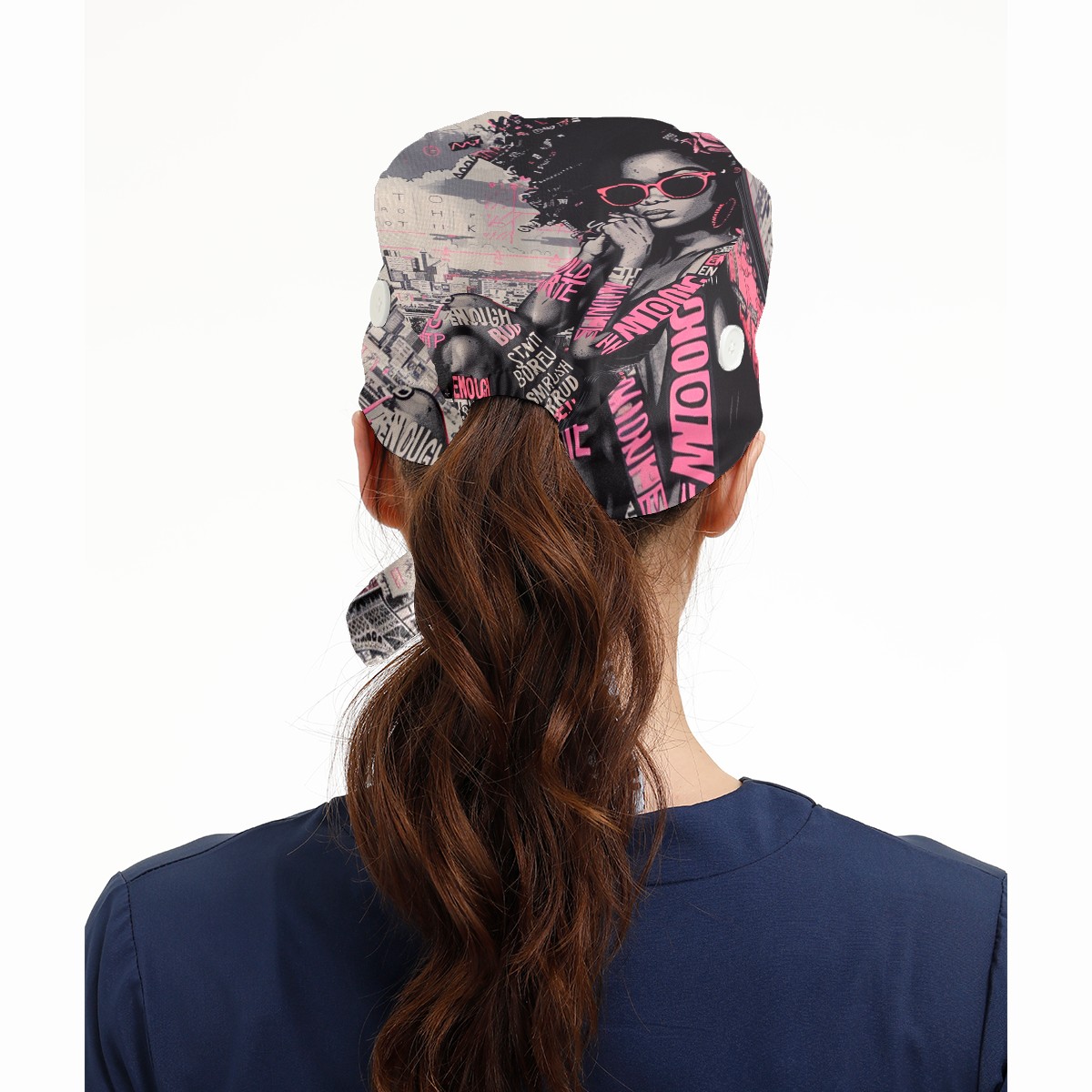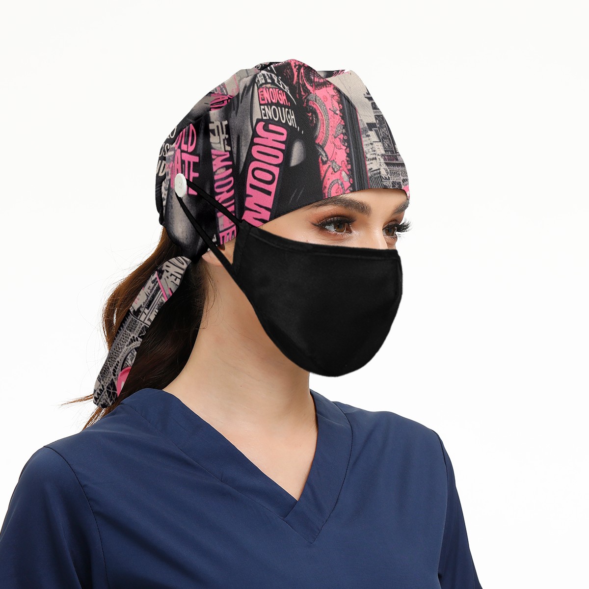 Working Caps with Button & Sweatband Satin Lined Cotton Adjustable Nurse Hats Elastic Band Scrub Cap Surgeon Hat Pink Lady