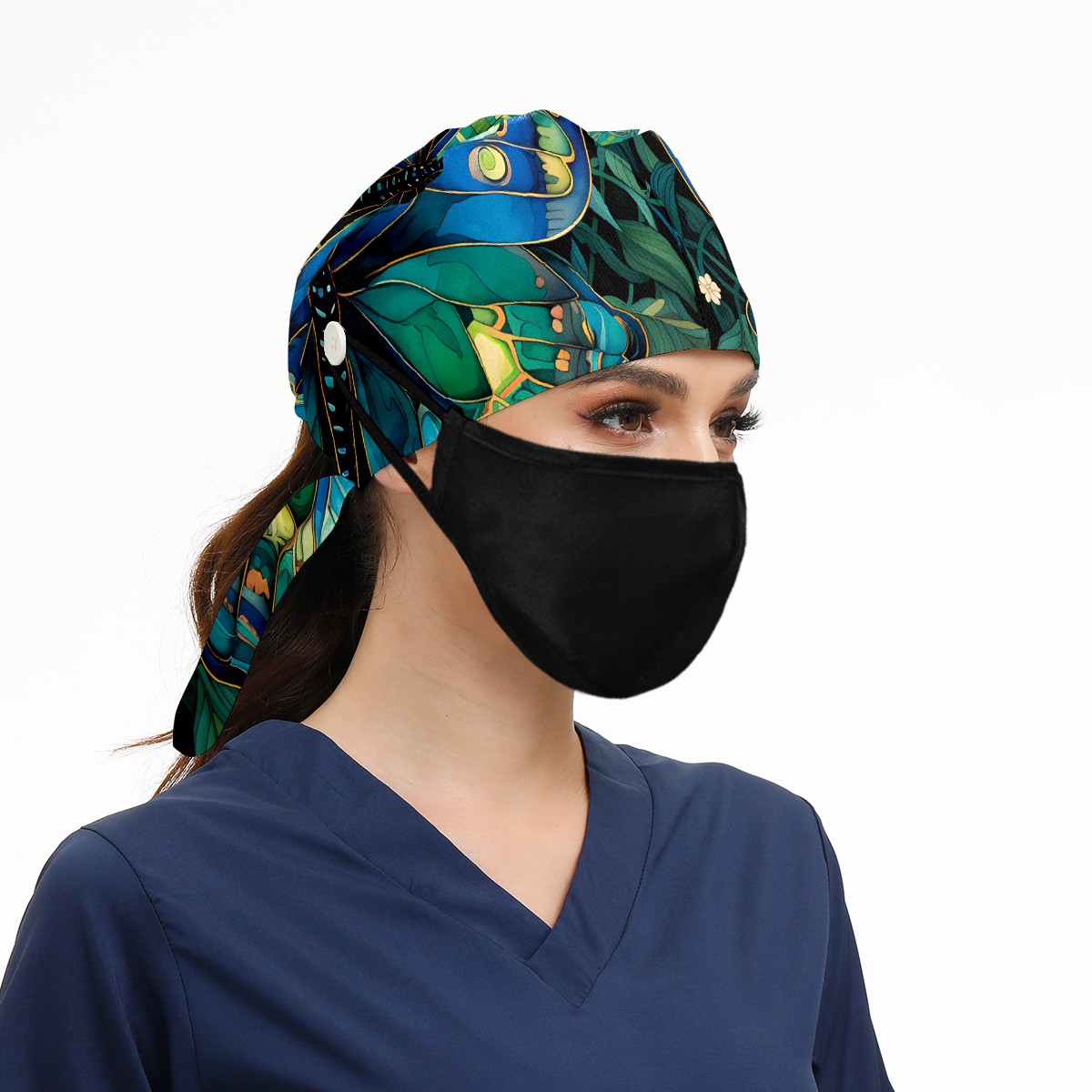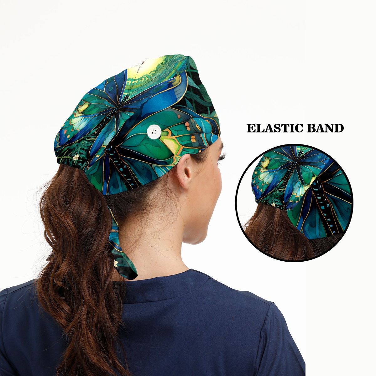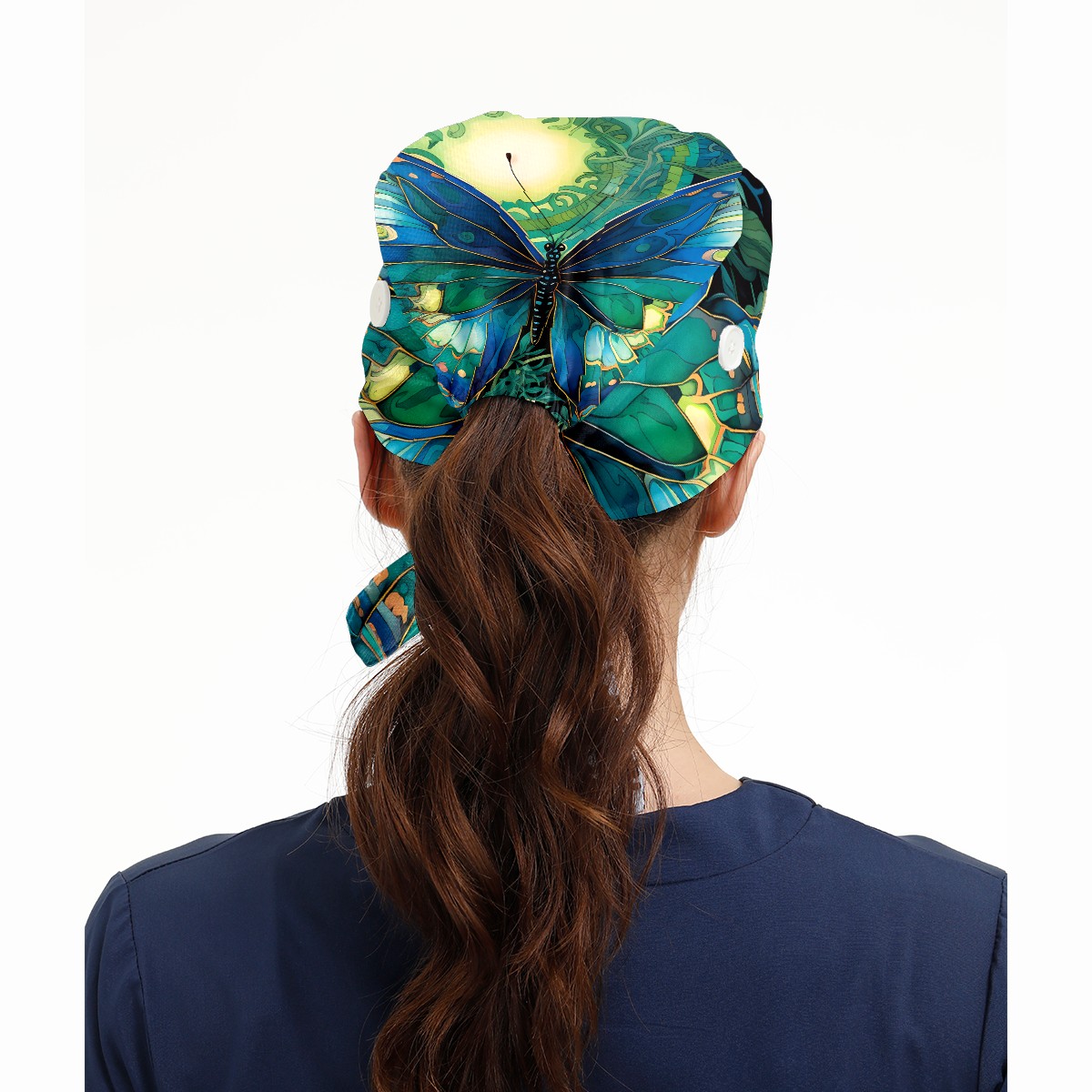 Working Caps with Button & Sweatband Satin Lined Cotton Adjustable Nurse Hats Elastic Band Scrub Cap Surgeon Hat Butterfly (1)
