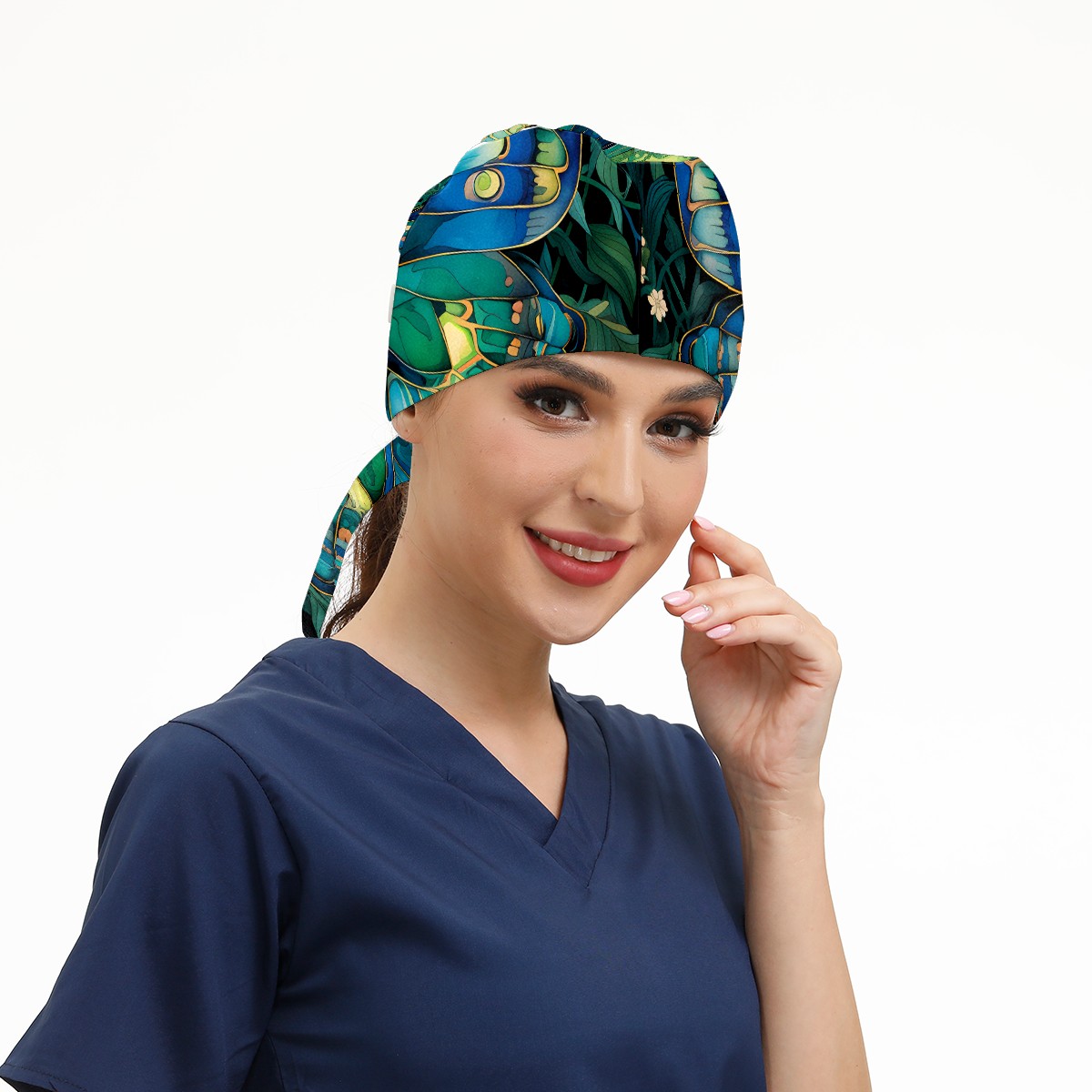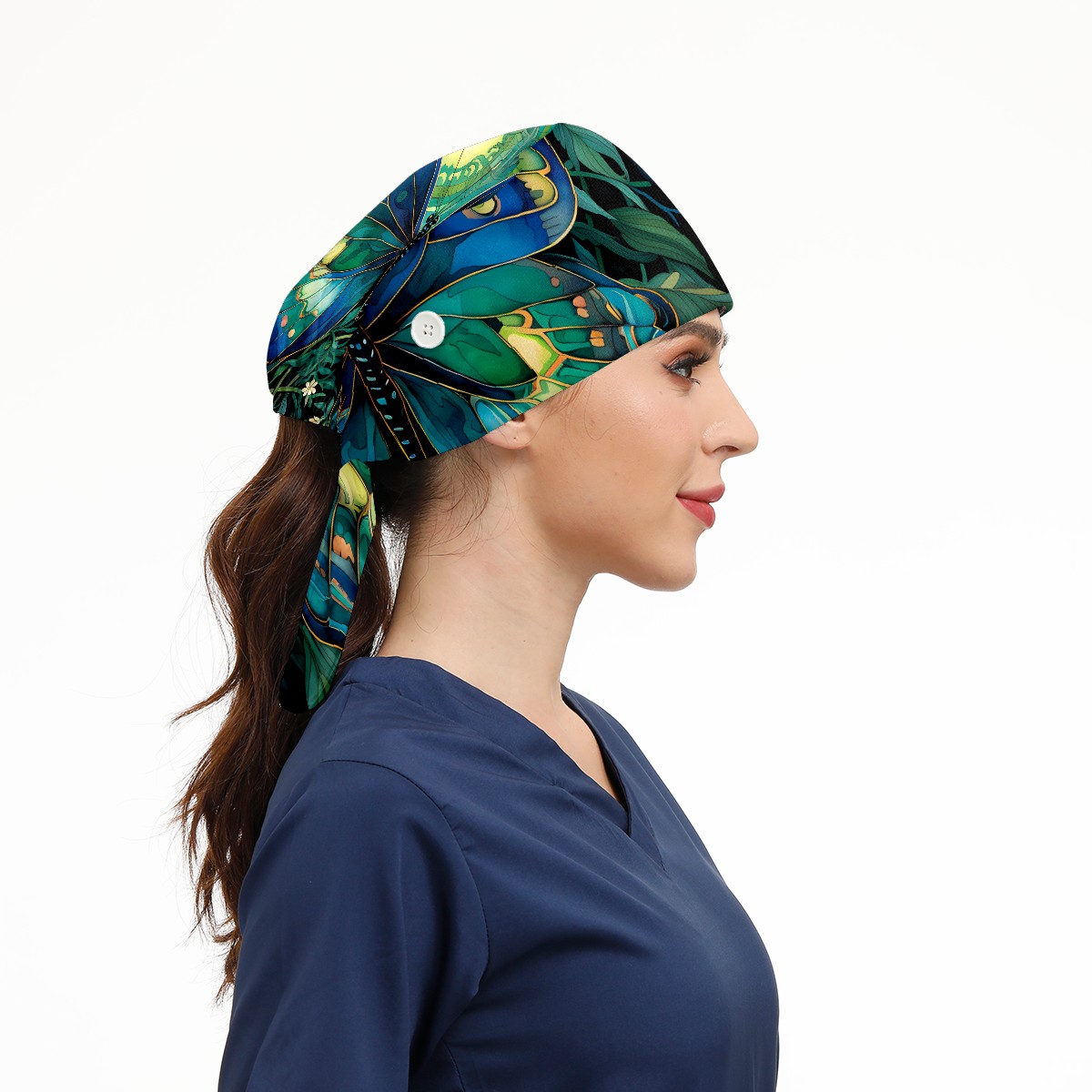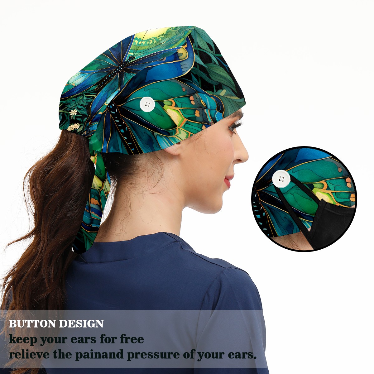 Working Caps with Button & Sweatband Satin Lined Cotton Adjustable Nurse Hats Elastic Band Scrub Cap Surgeon Hat Butterfly (1)