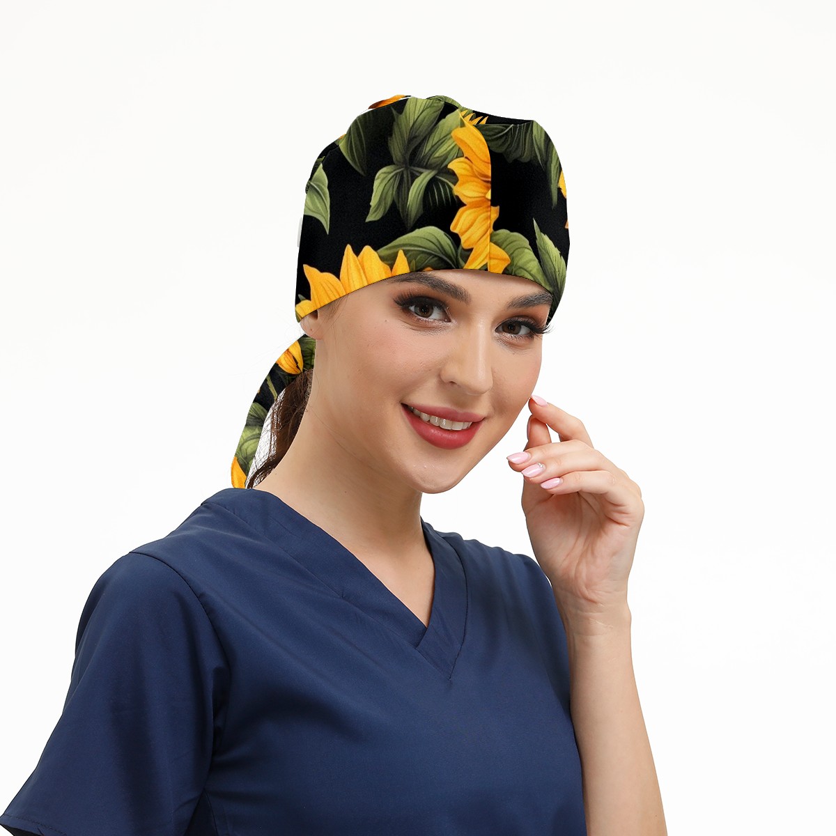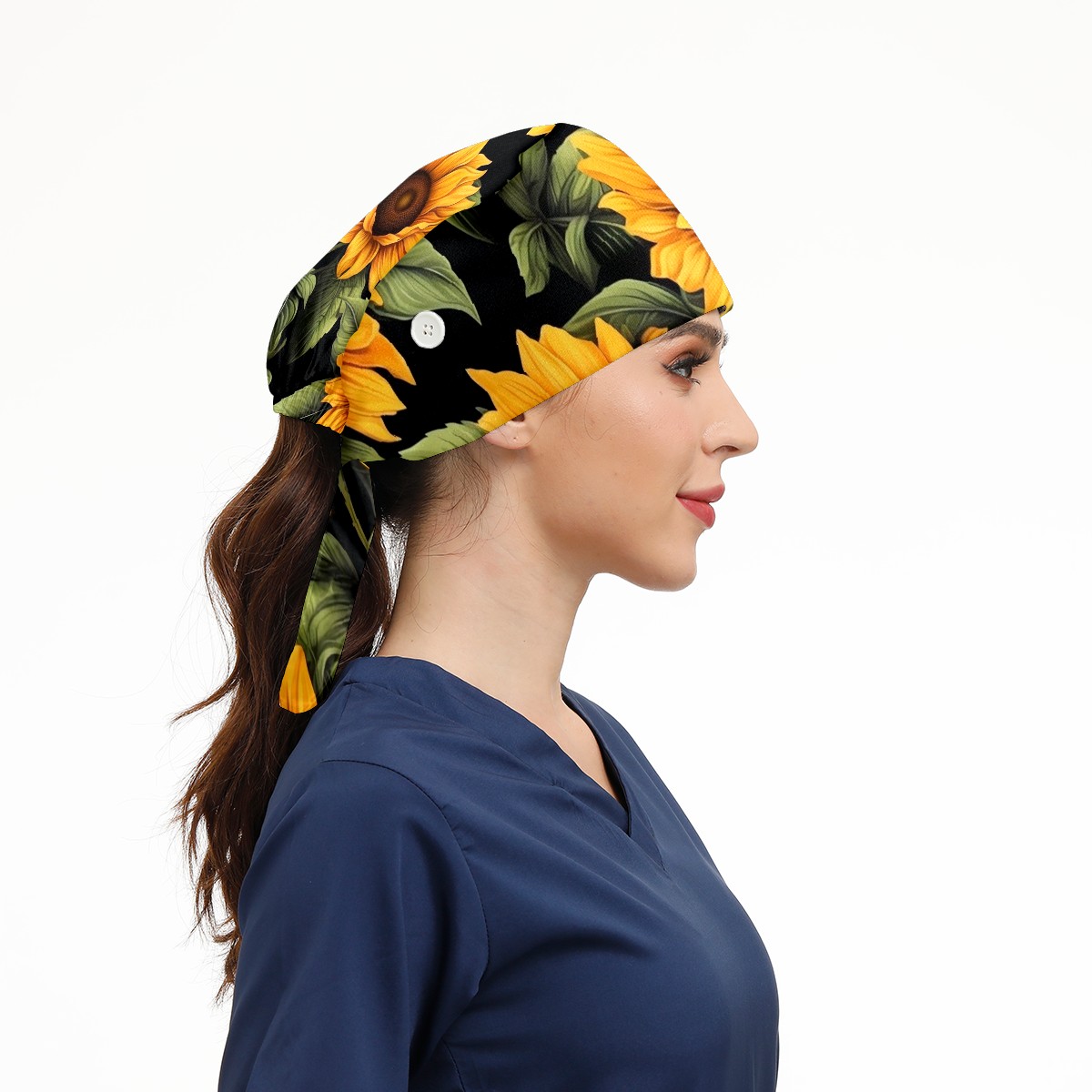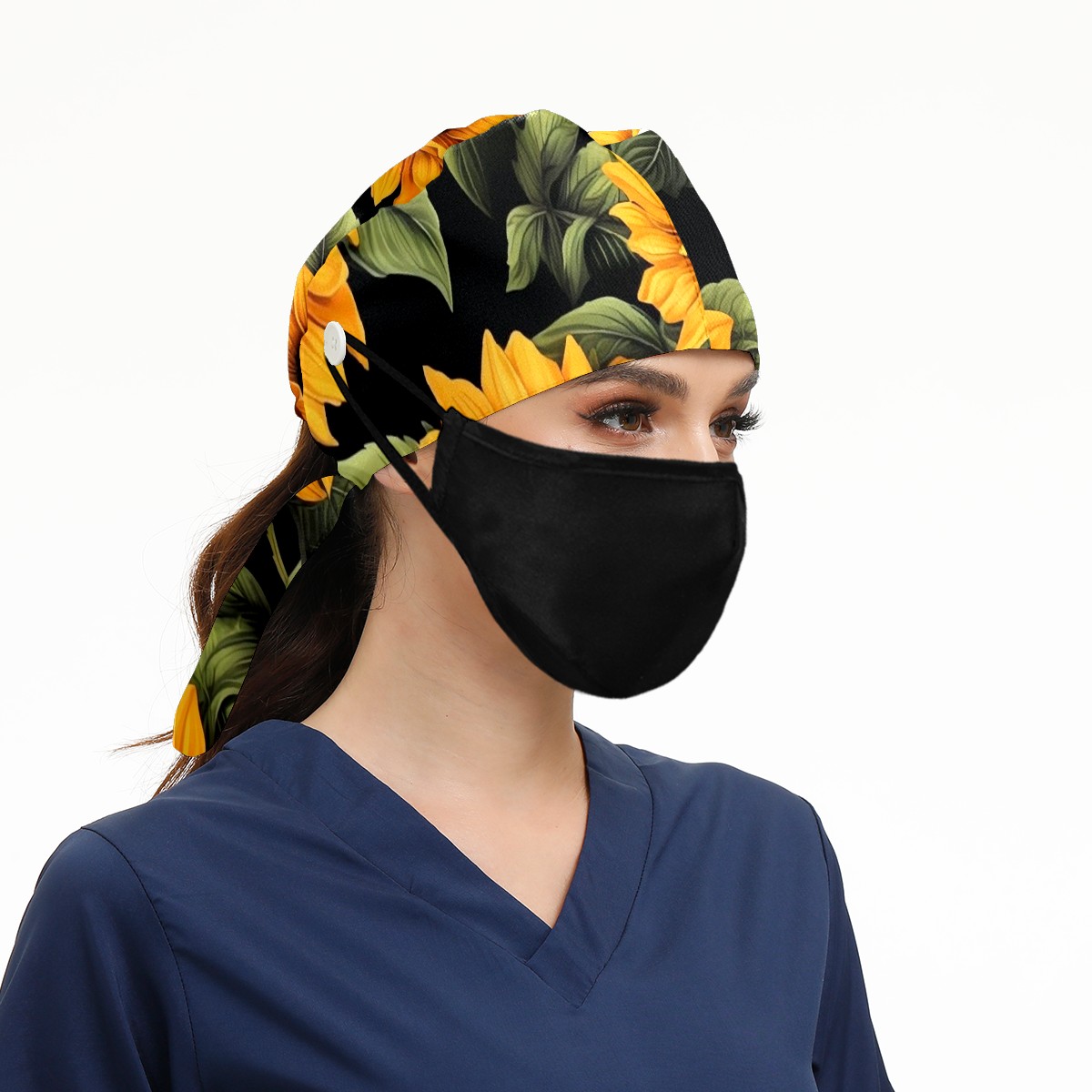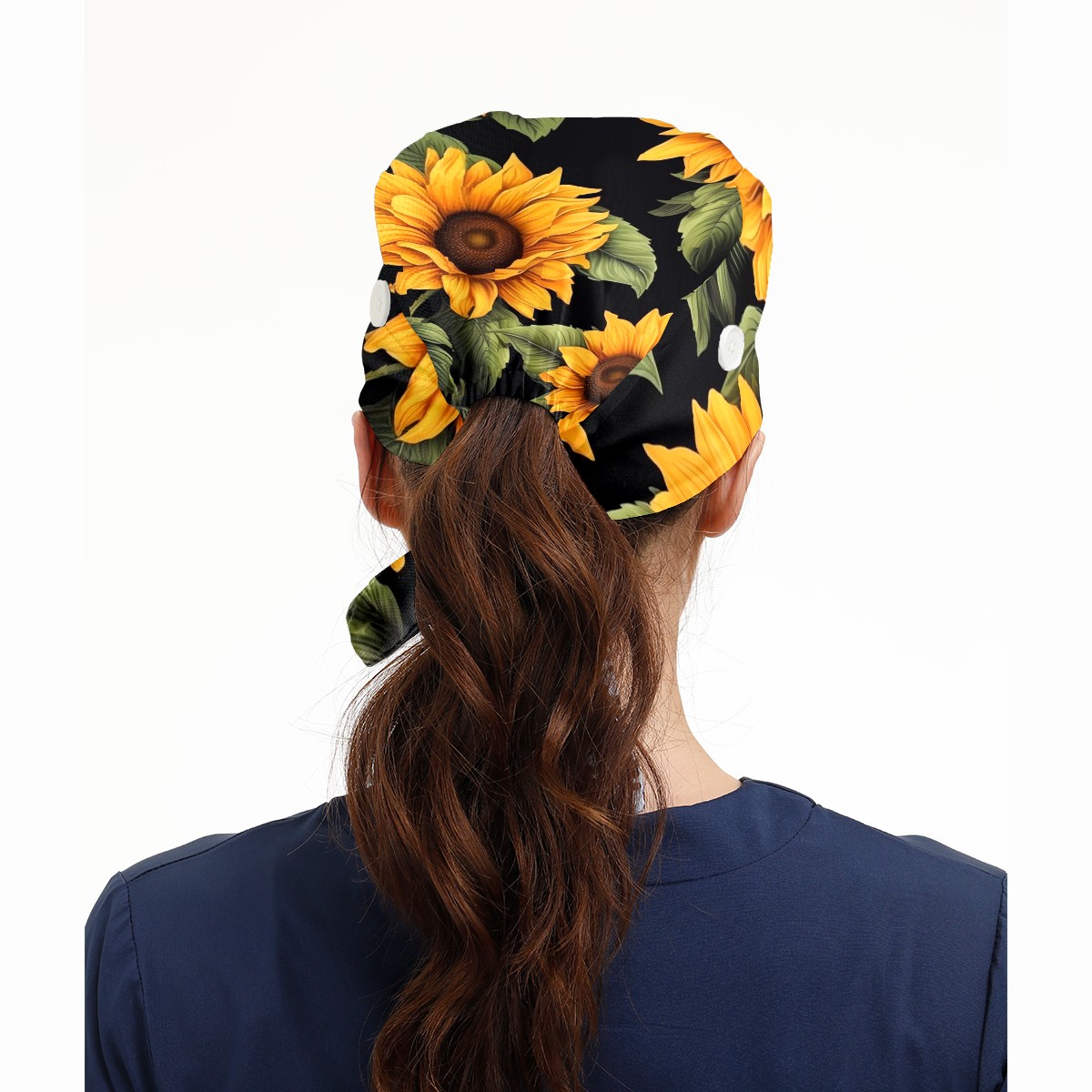 Working Caps with Button & Sweatband Satin Lined Cotton Adjustable Nurse Hats Elastic Band Scrub Cap Surgeon Hat Sunflower (2)