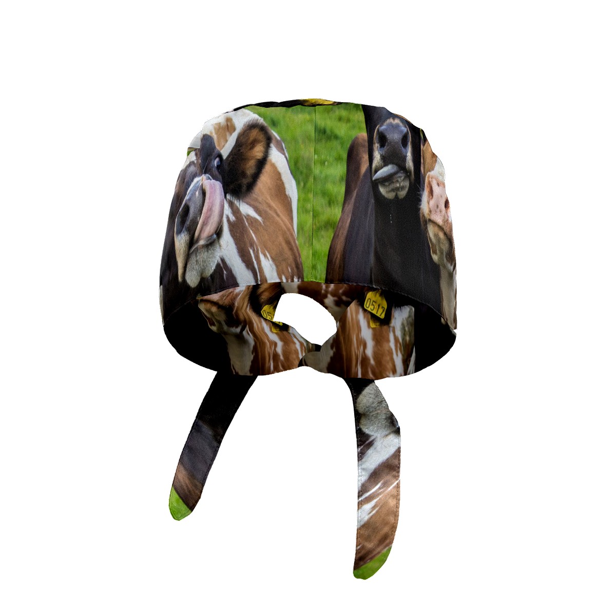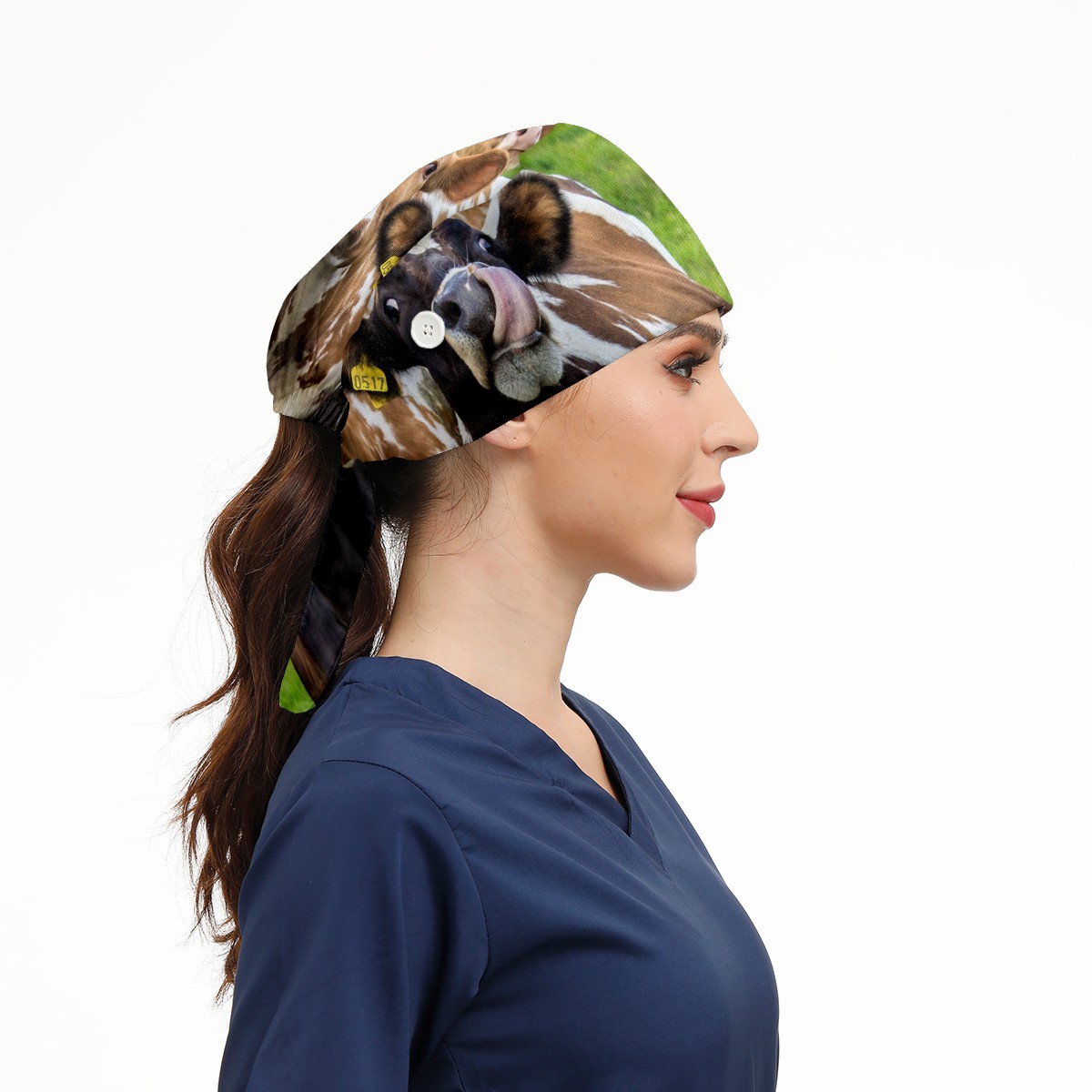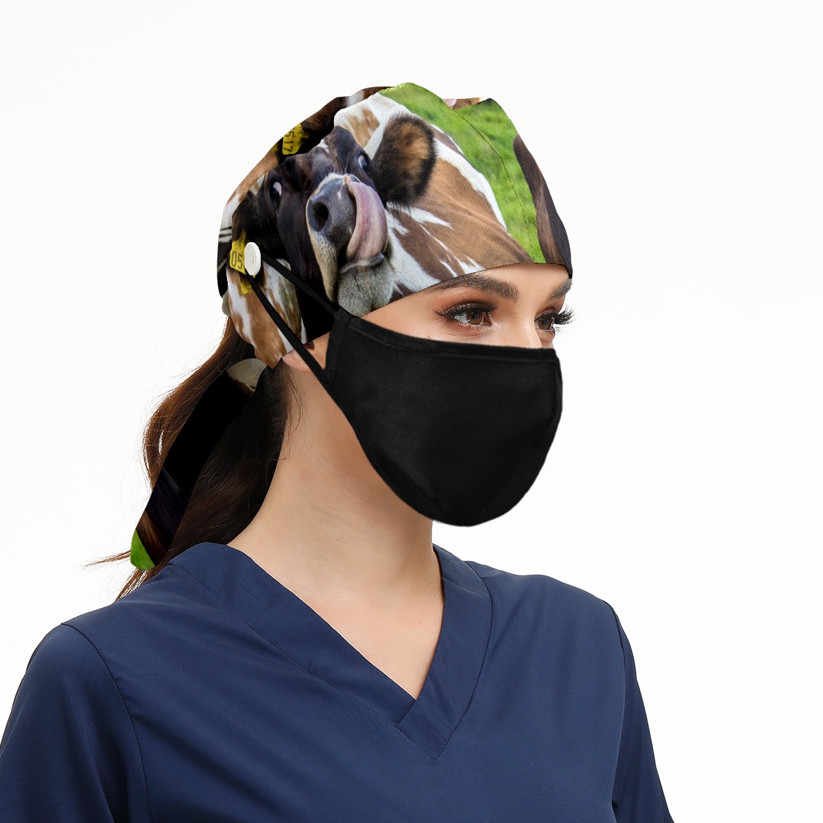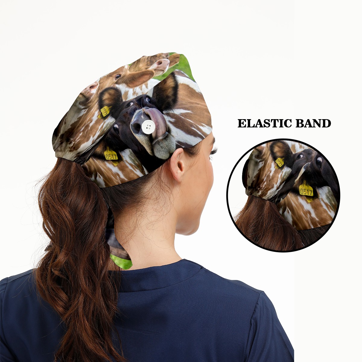 Working Caps with Button & Sweatband Satin Lined Cotton Adjustable Nurse Hats Elastic Band Scrub Cap Surgeon Hat Animal Cows On Green Grassland