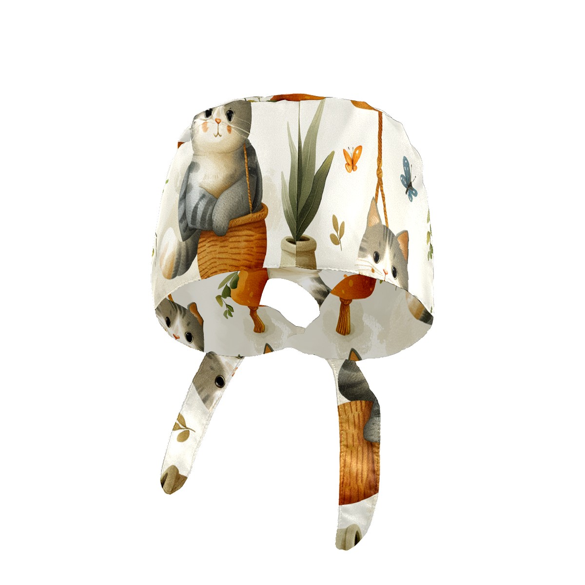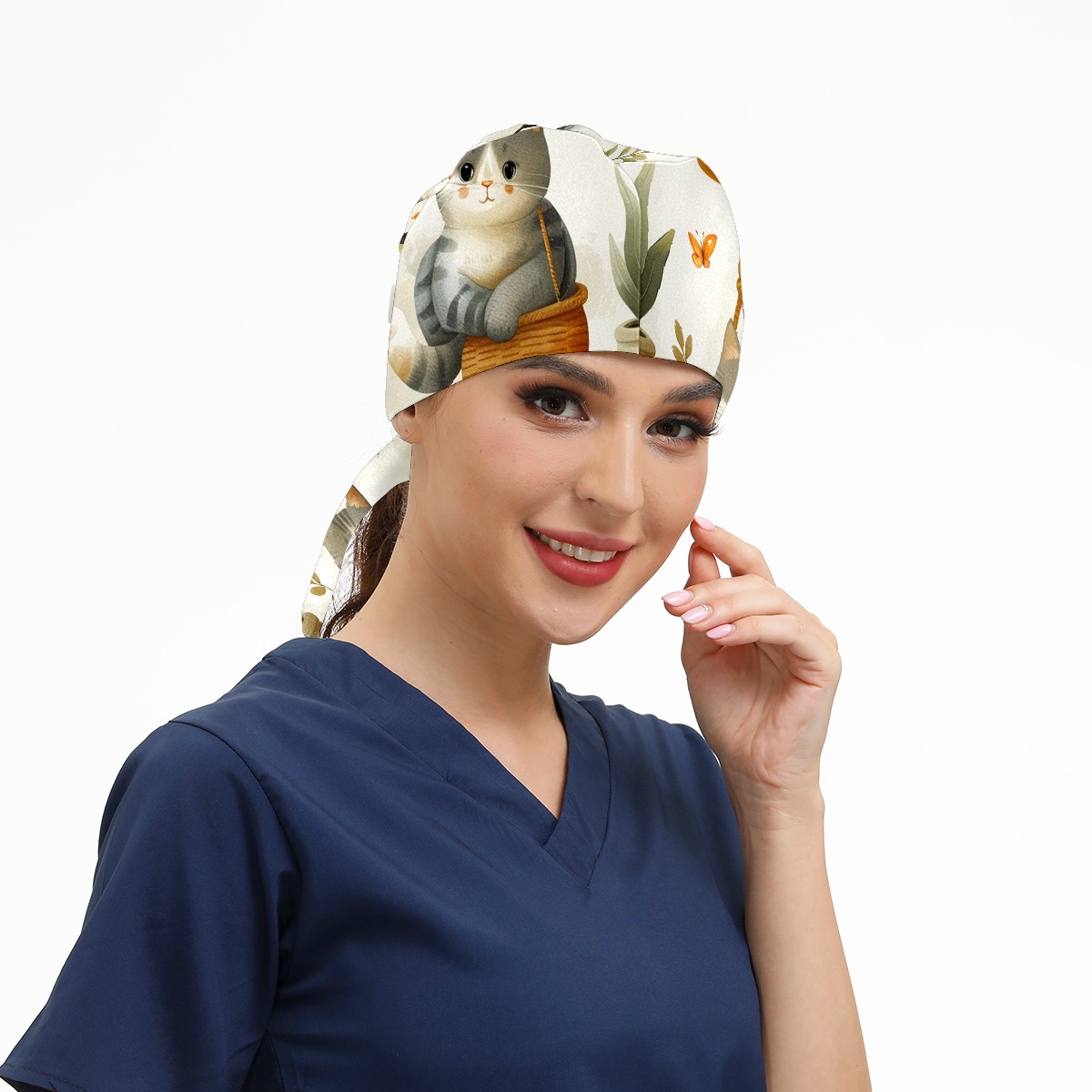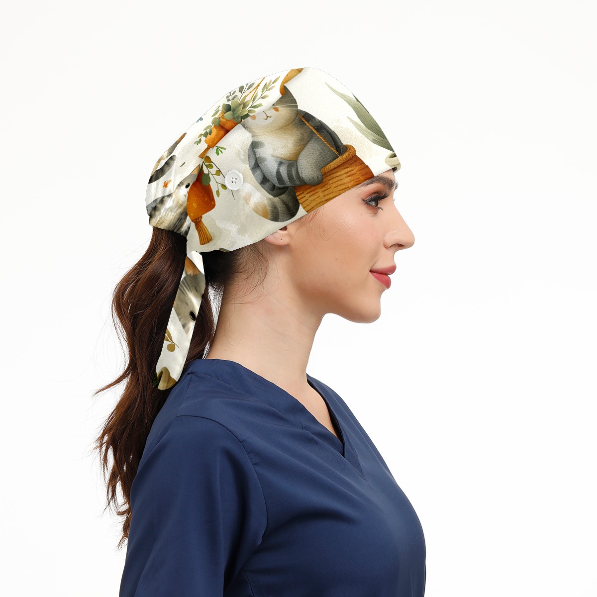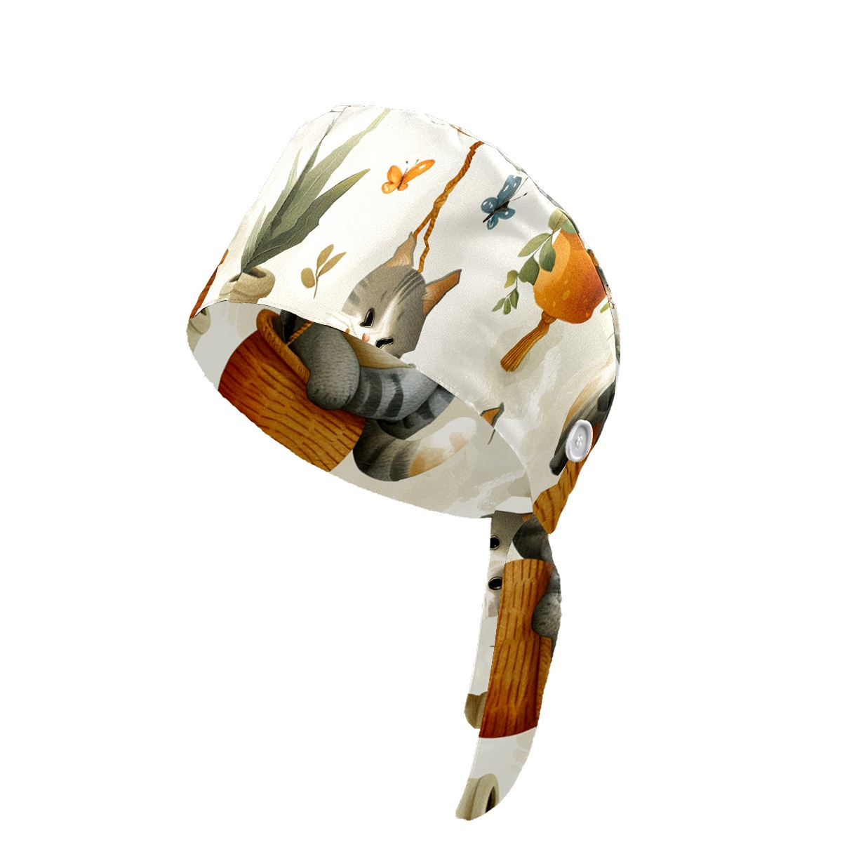 Working Caps with Button & Sweatband Satin Lined Cotton Adjustable Nurse Hats Elastic Band Scrub Cap Surgeon Hat Short Haired Cat