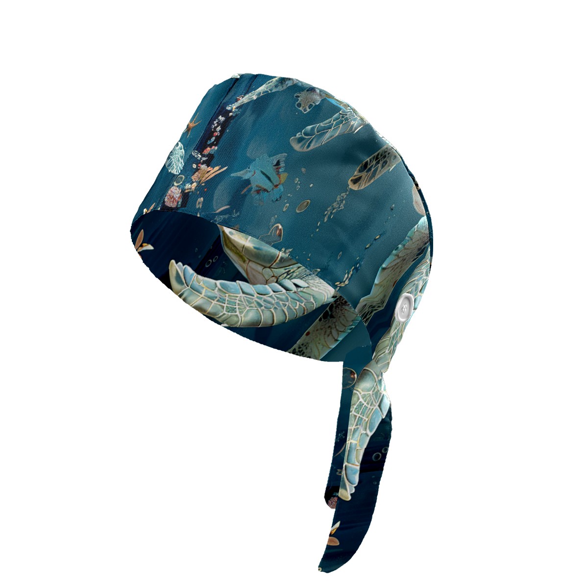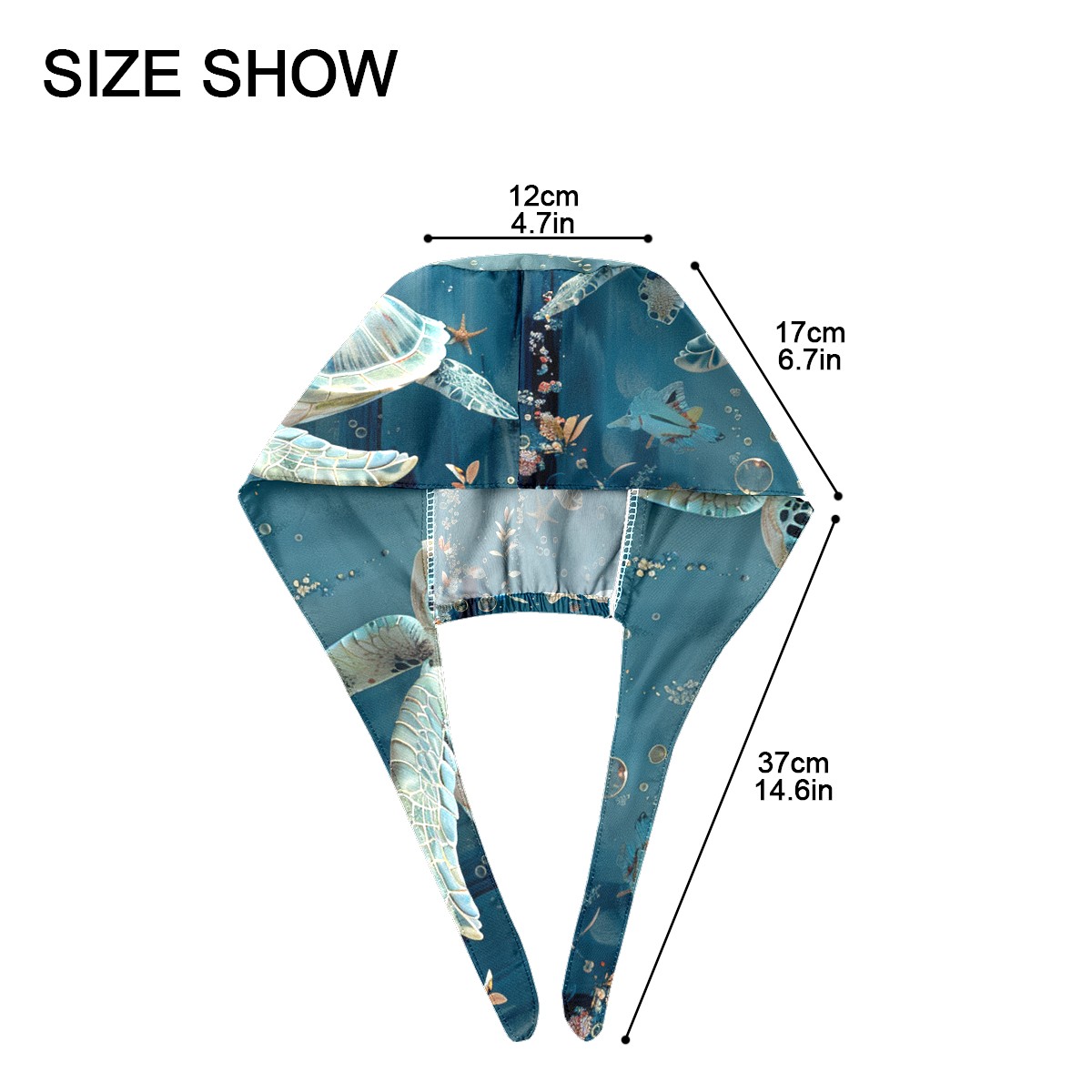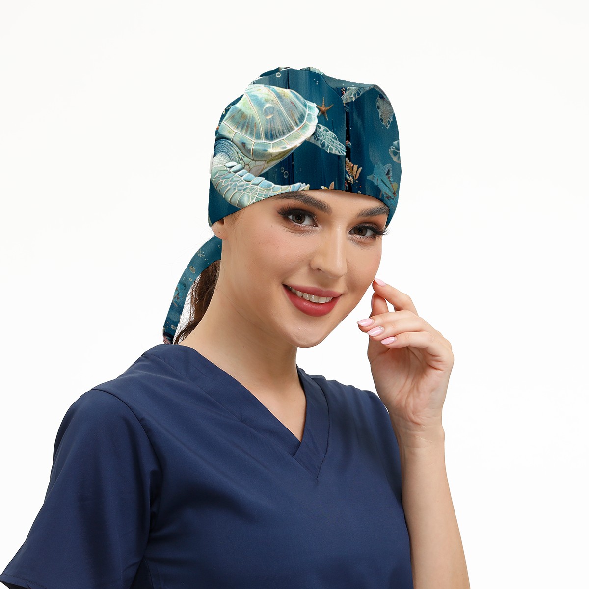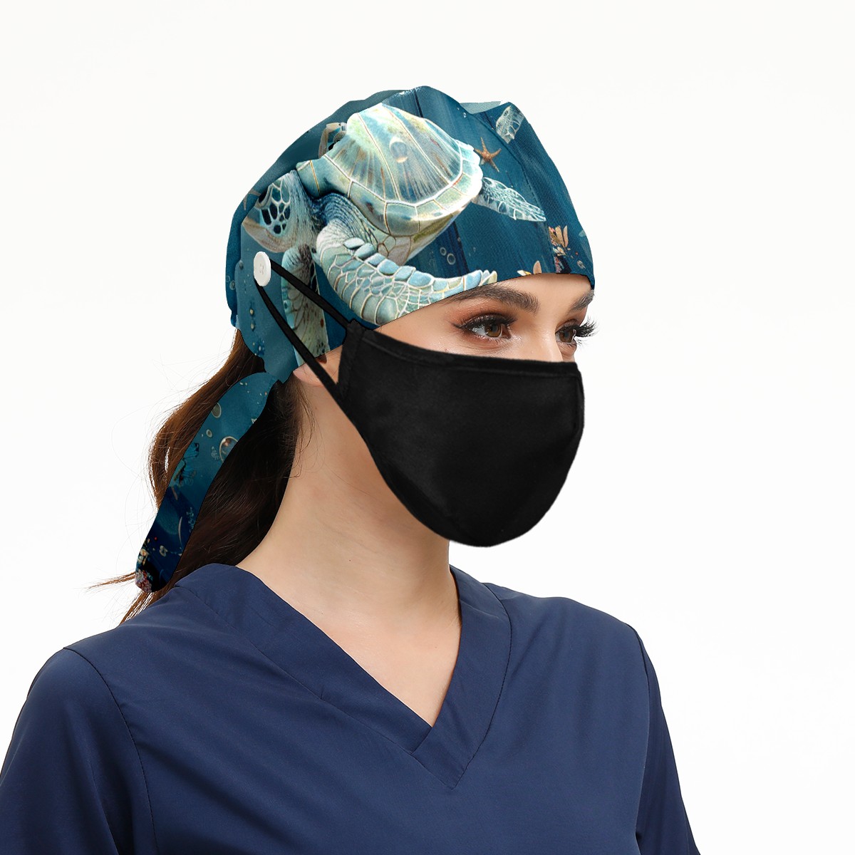 Working Caps with Button & Sweatband Satin Lined Cotton Adjustable Nurse Hats Elastic Band Scrub Cap Surgeon Hat Turtle