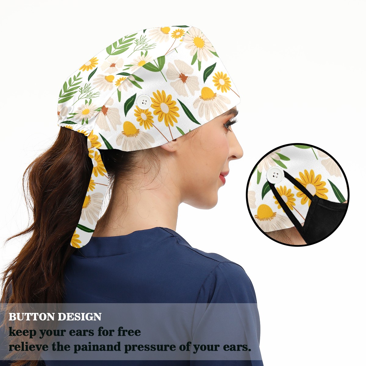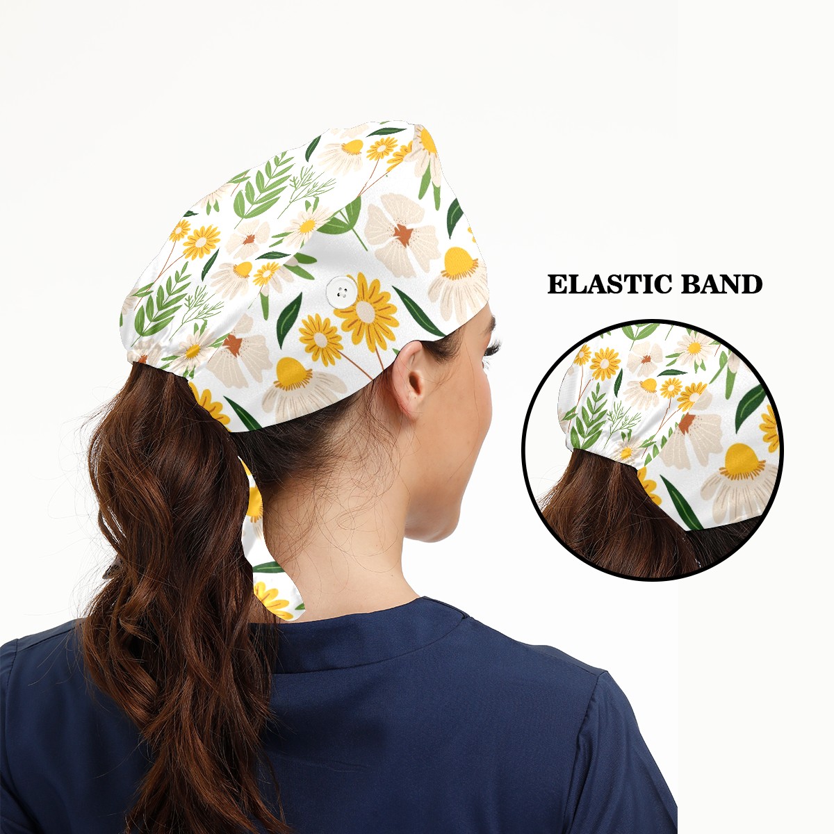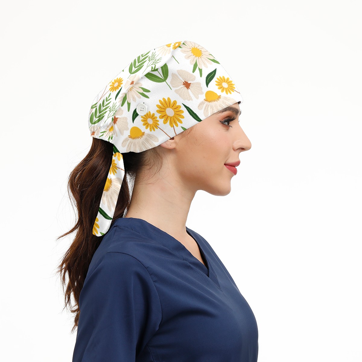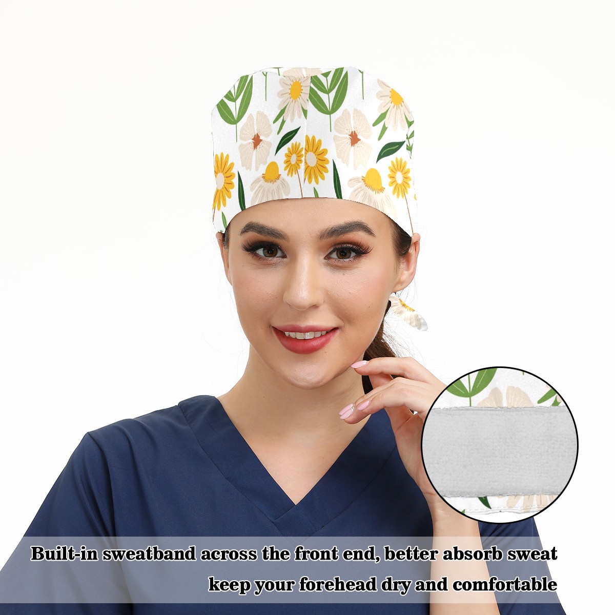 Working Caps with Button & Sweatband Satin Lined Cotton Adjustable Nurse Hats Elastic Band Scrub Cap Surgeon Hat Flower-5239814_1920