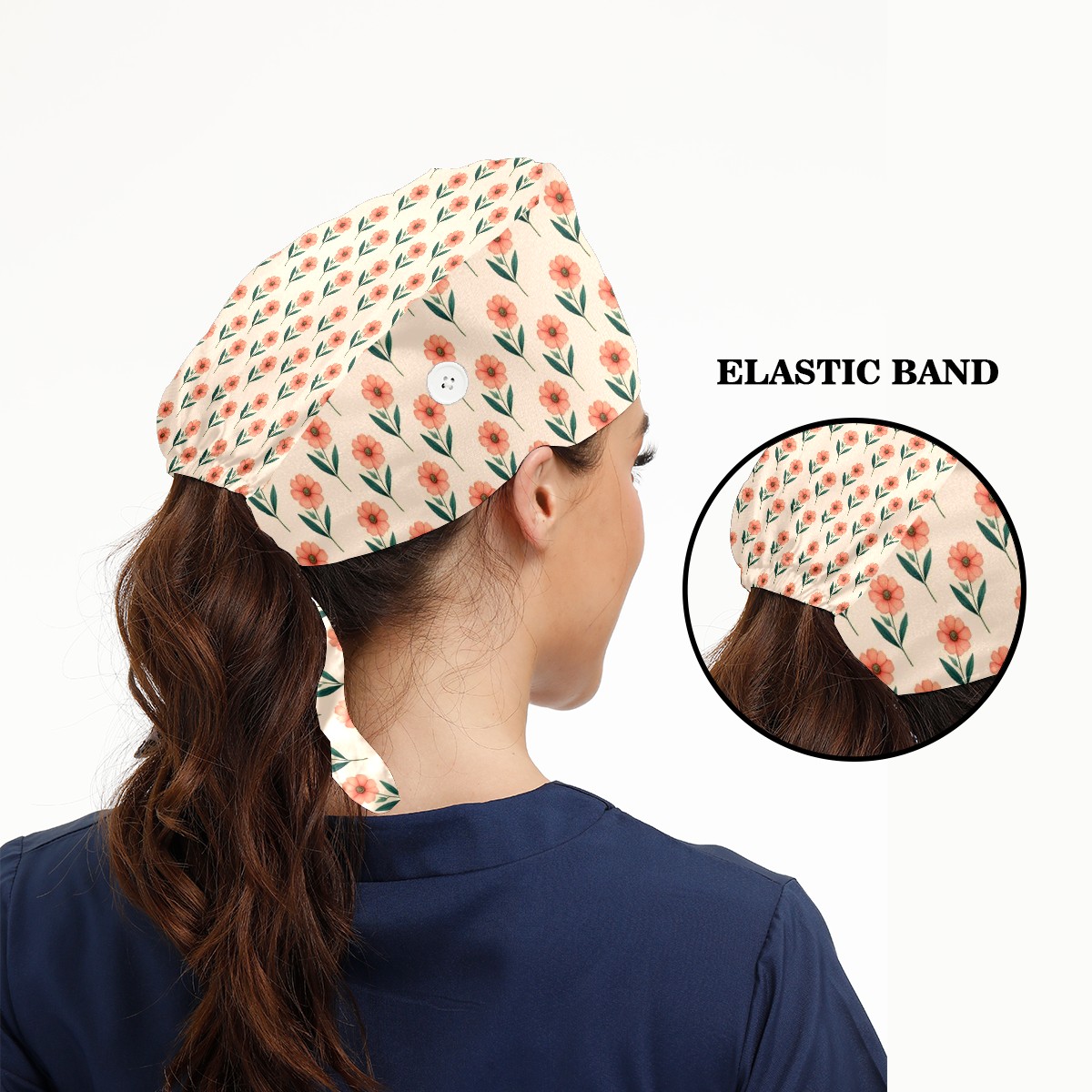 Working Caps with Button & Sweatband Satin Lined Cotton Adjustable Nurse Hats Elastic Band Scrub Cap Surgeon Hat Flower2