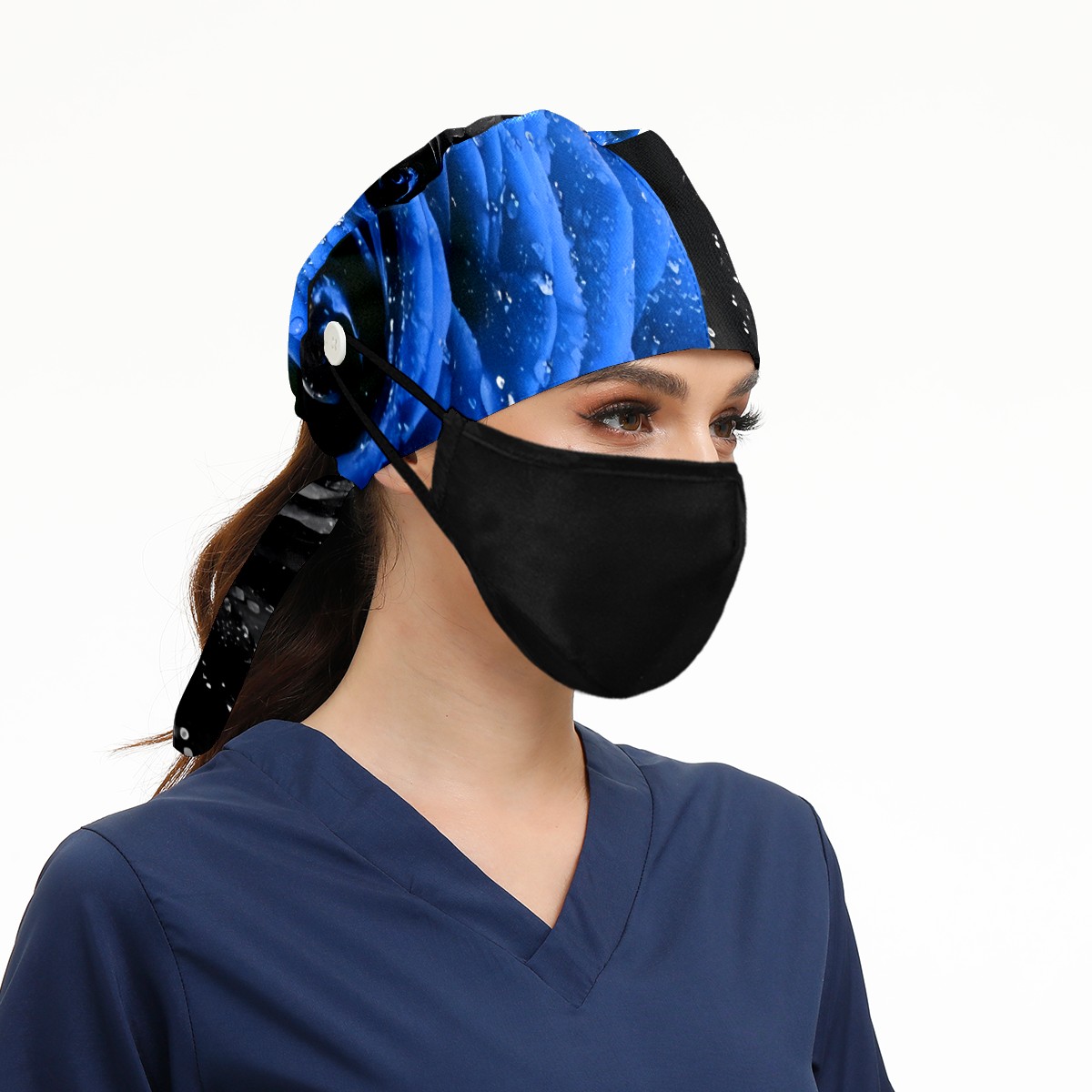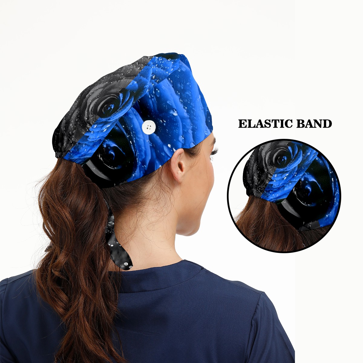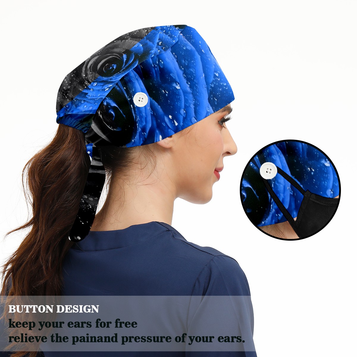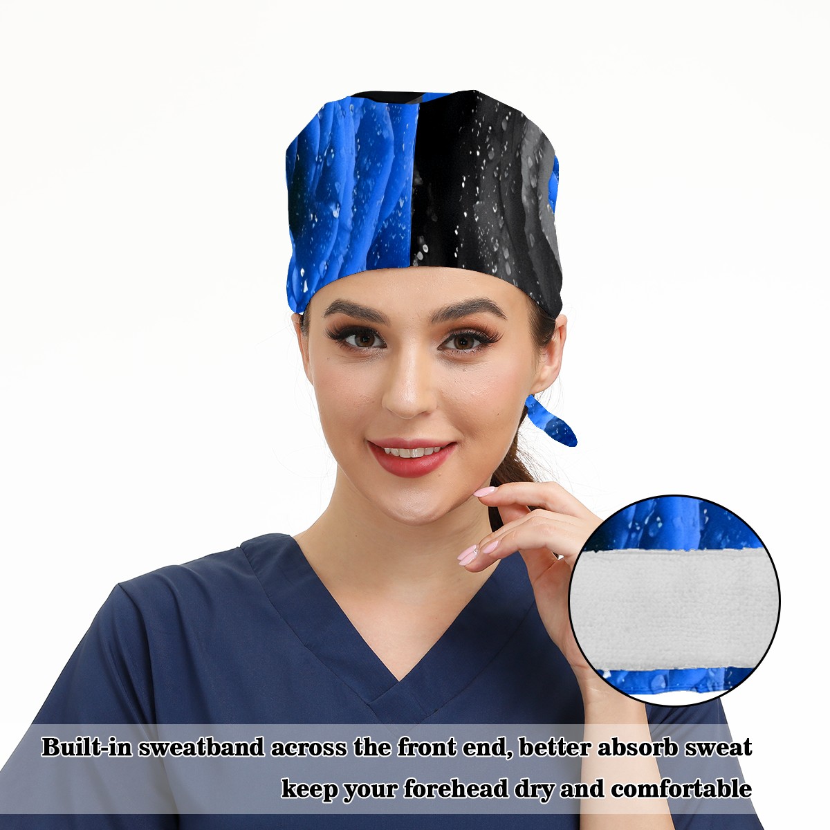 Working Caps with Button & Sweatband Satin Lined Cotton Adjustable Nurse Hats Elastic Band Scrub Cap Surgeon Hat Black Blue Rose (1)(1)(1)