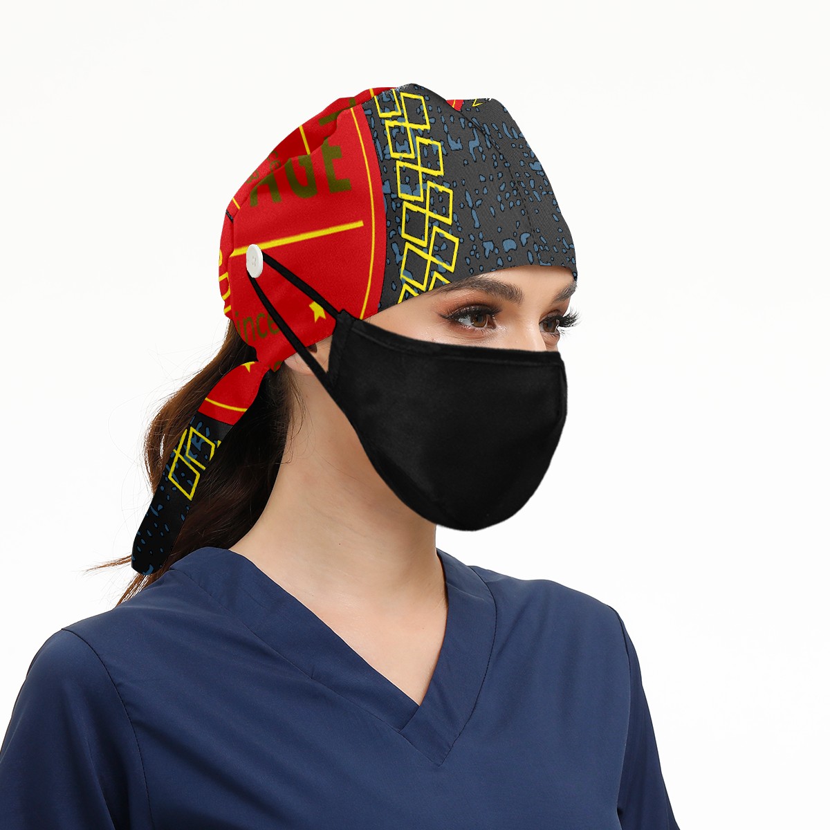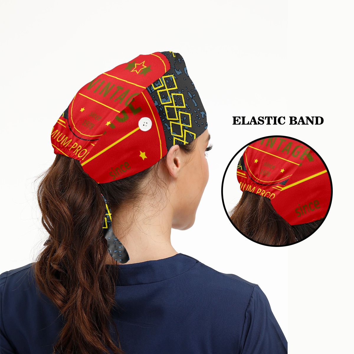 Working Caps with Button & Sweatband Satin Lined Cotton Adjustable Nurse Hats Elastic Band Scrub Cap Surgeon Hat Vintage 1978