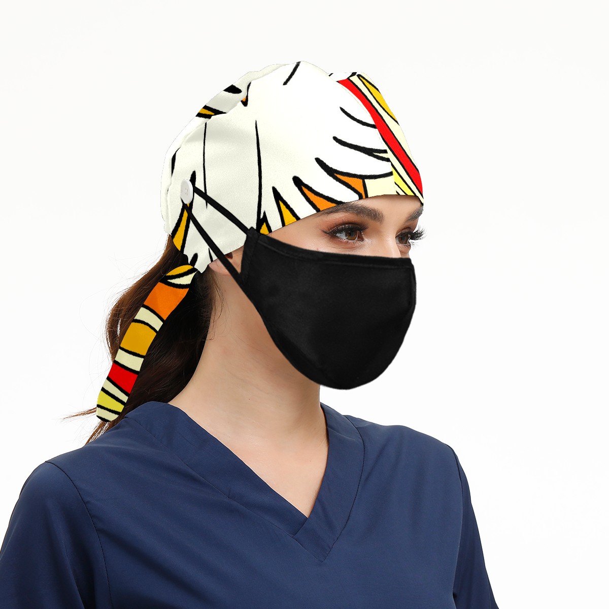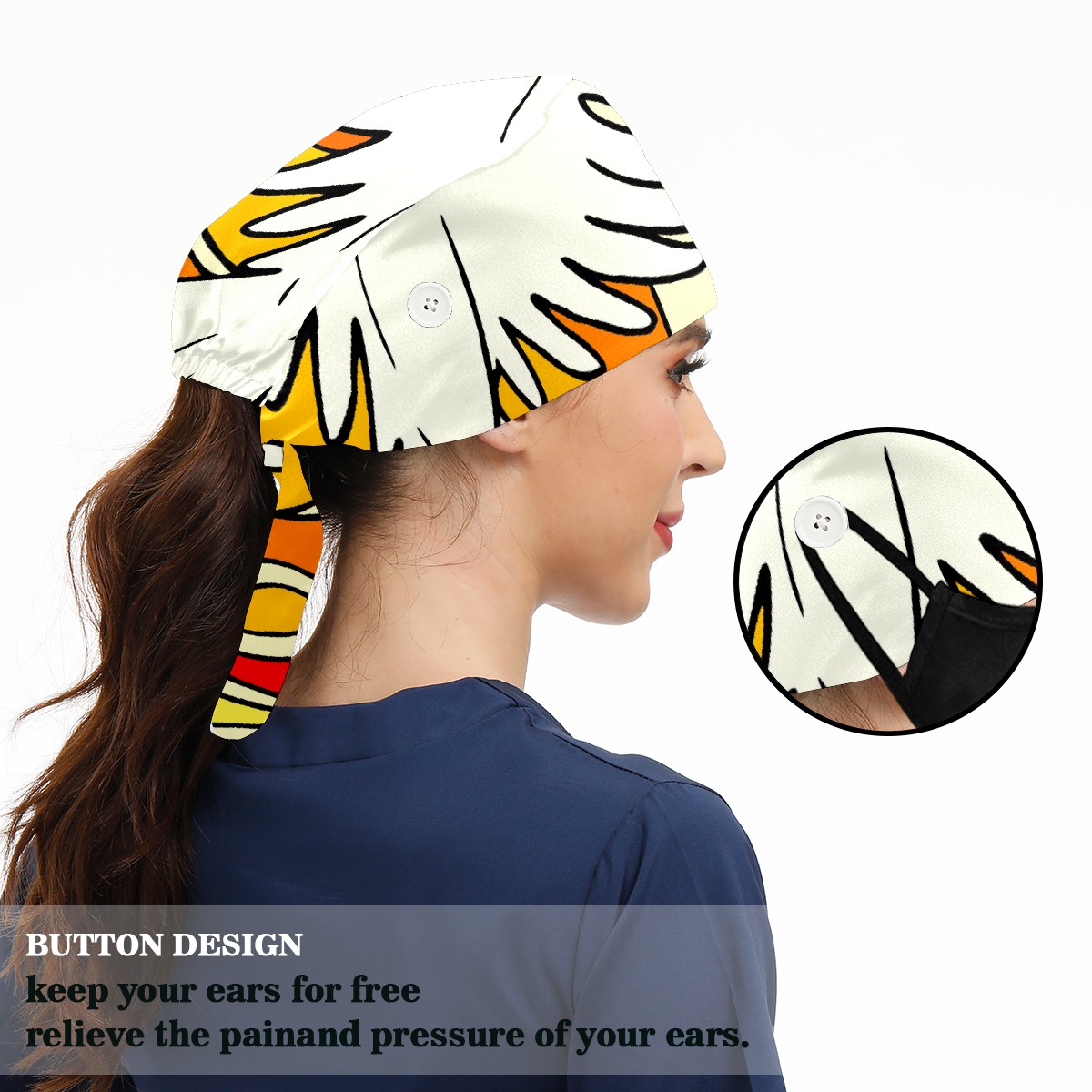 Working Caps with Button & Sweatband Satin Lined Cotton Adjustable Nurse Hats Elastic Band Scrub Cap Surgeon Hat Day Of Pentecost