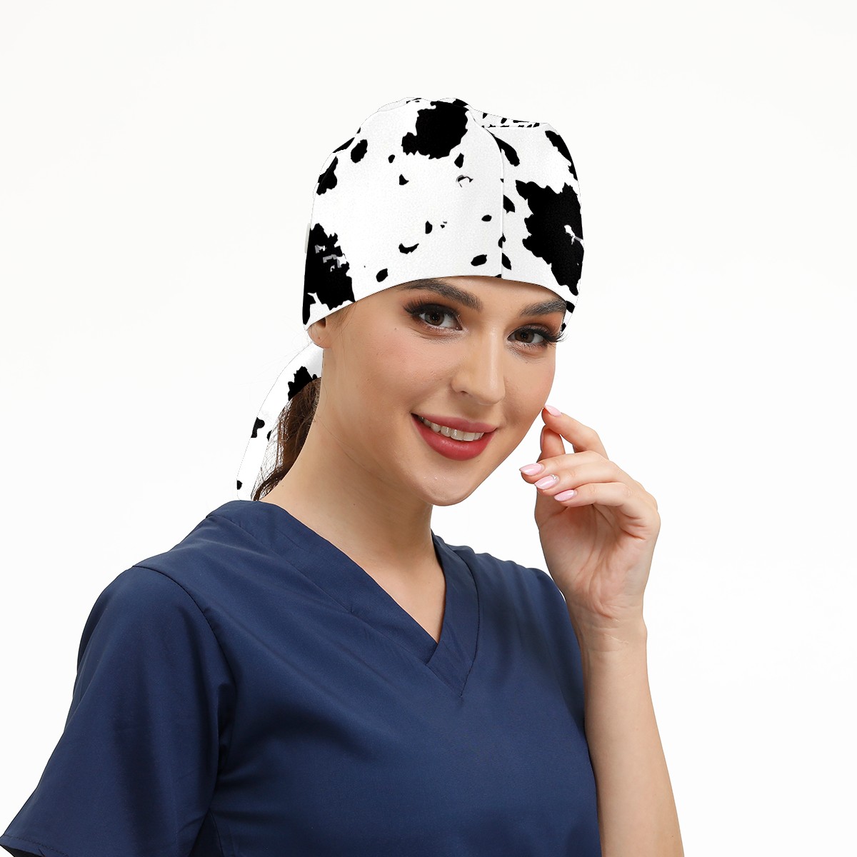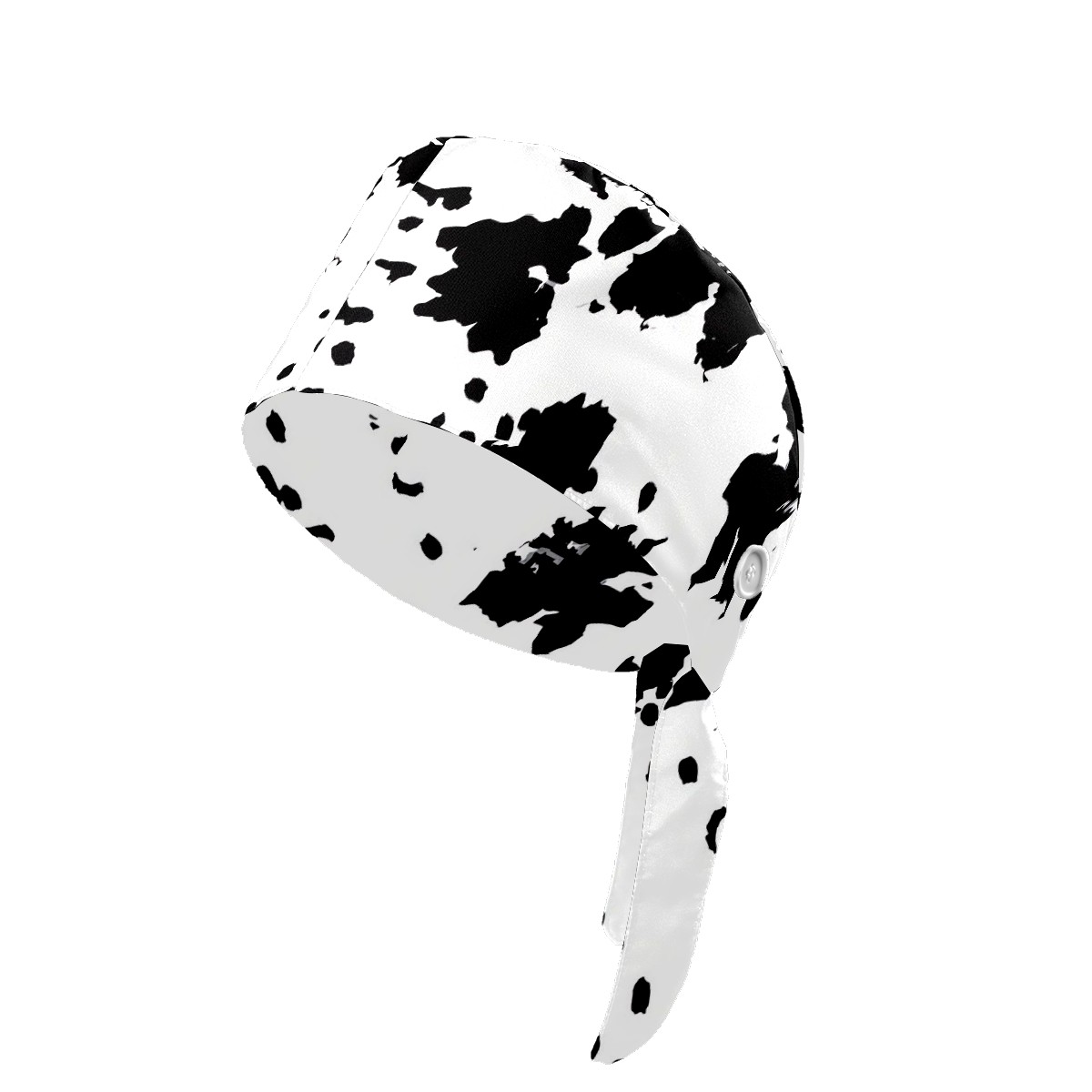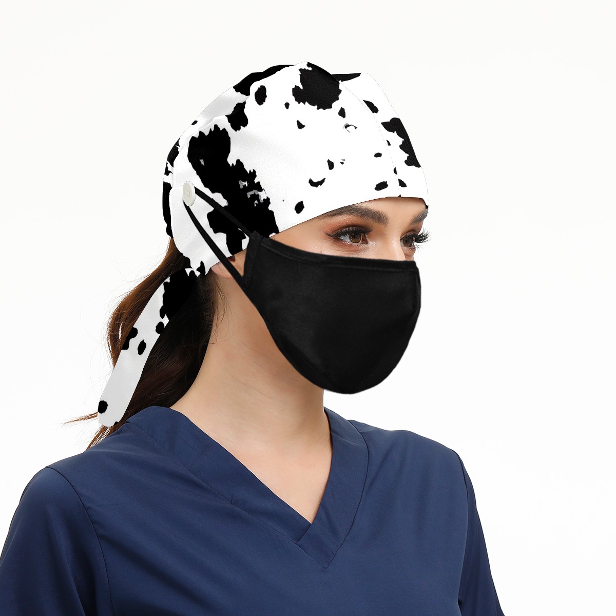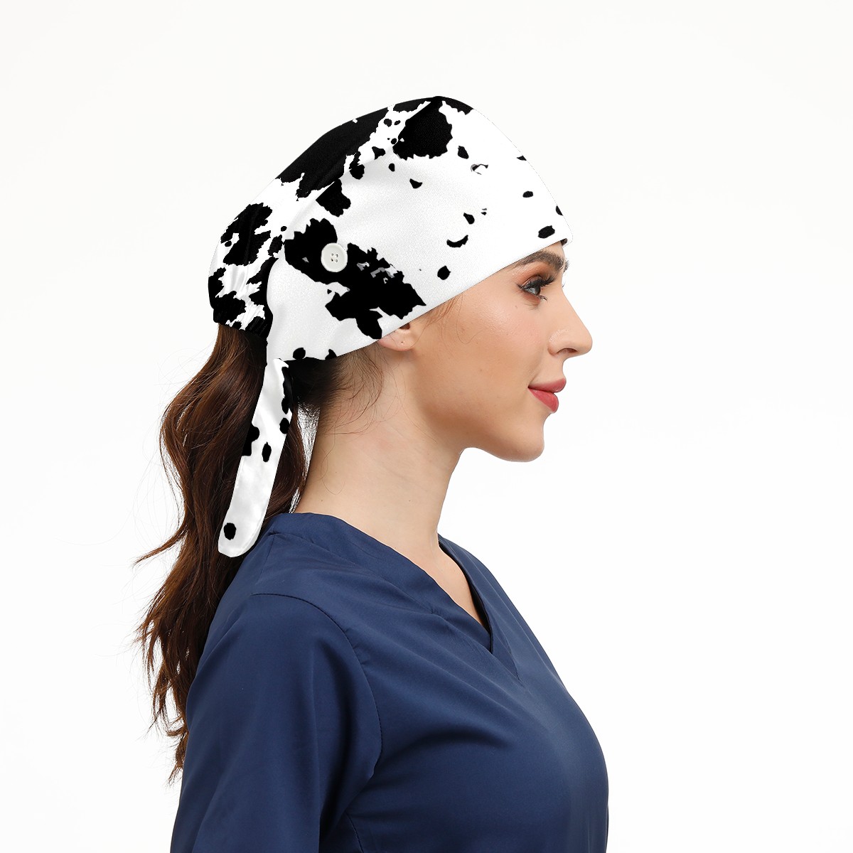 Working Caps with Button & Sweatband Satin Lined Cotton Adjustable Nurse Hats Elastic Band Scrub Cap Surgeon Hat Western Black And White Cow Print