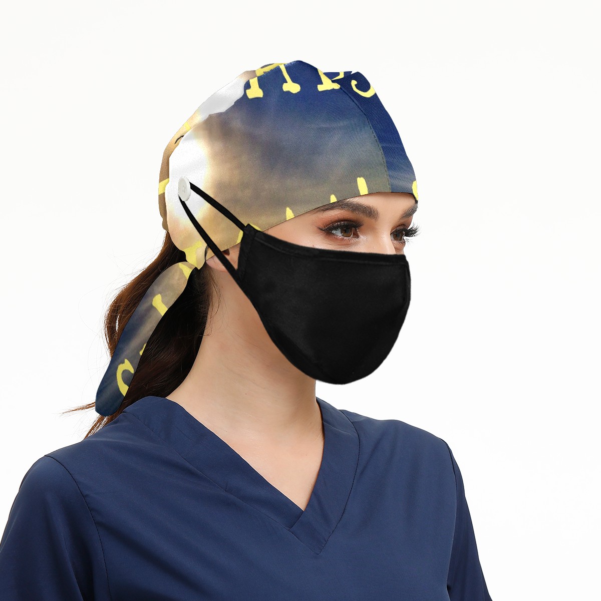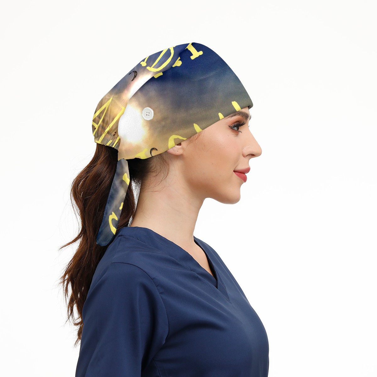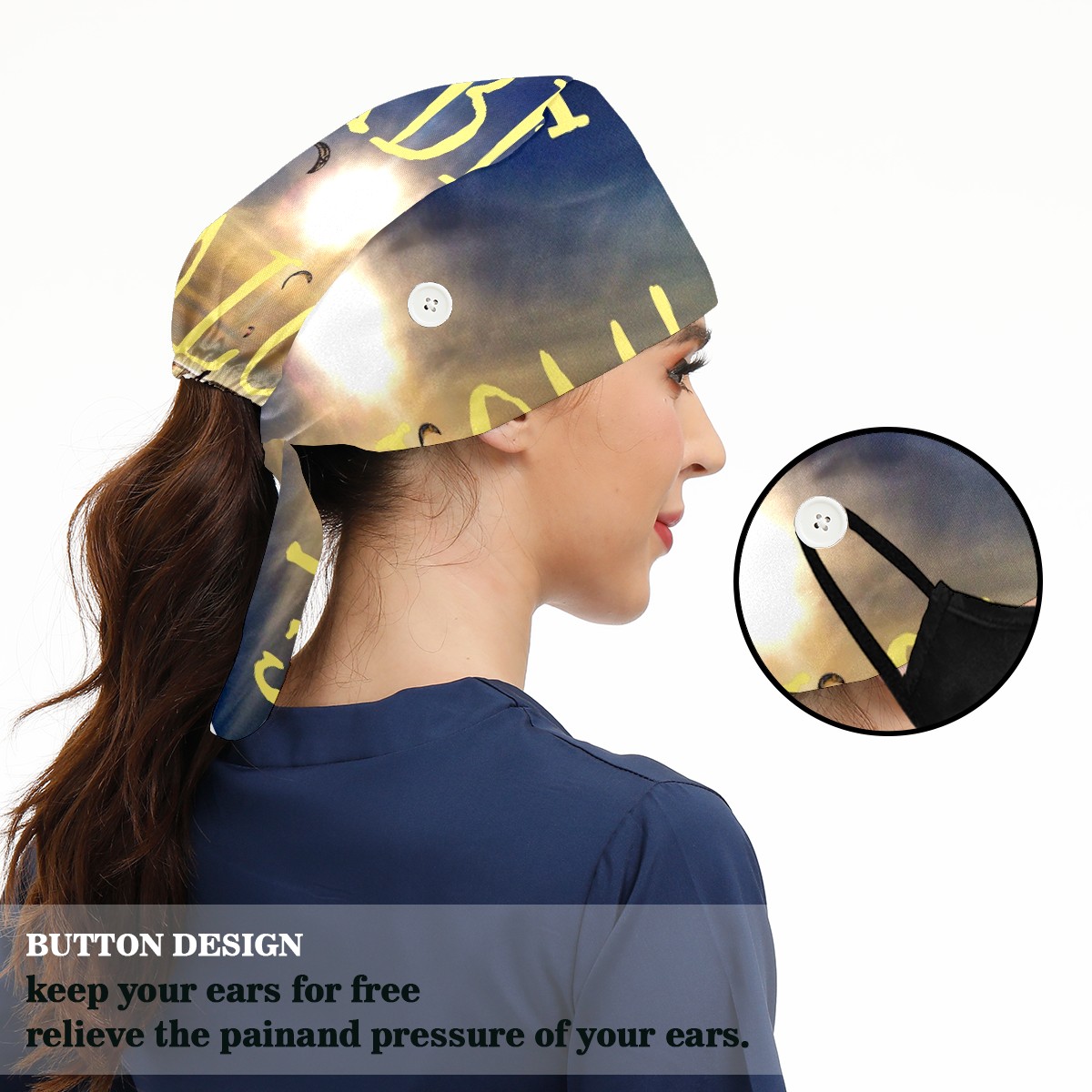 Working Caps with Button & Sweatband Satin Lined Cotton Adjustable Nurse Hats Elastic Band Scrub Cap Surgeon Hat Shabbat Shalom_1