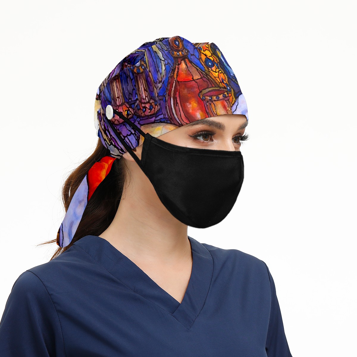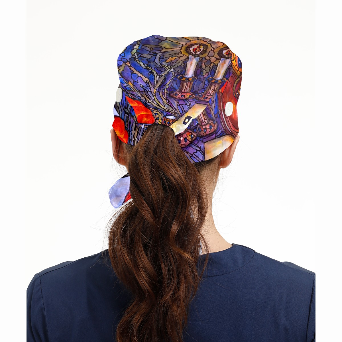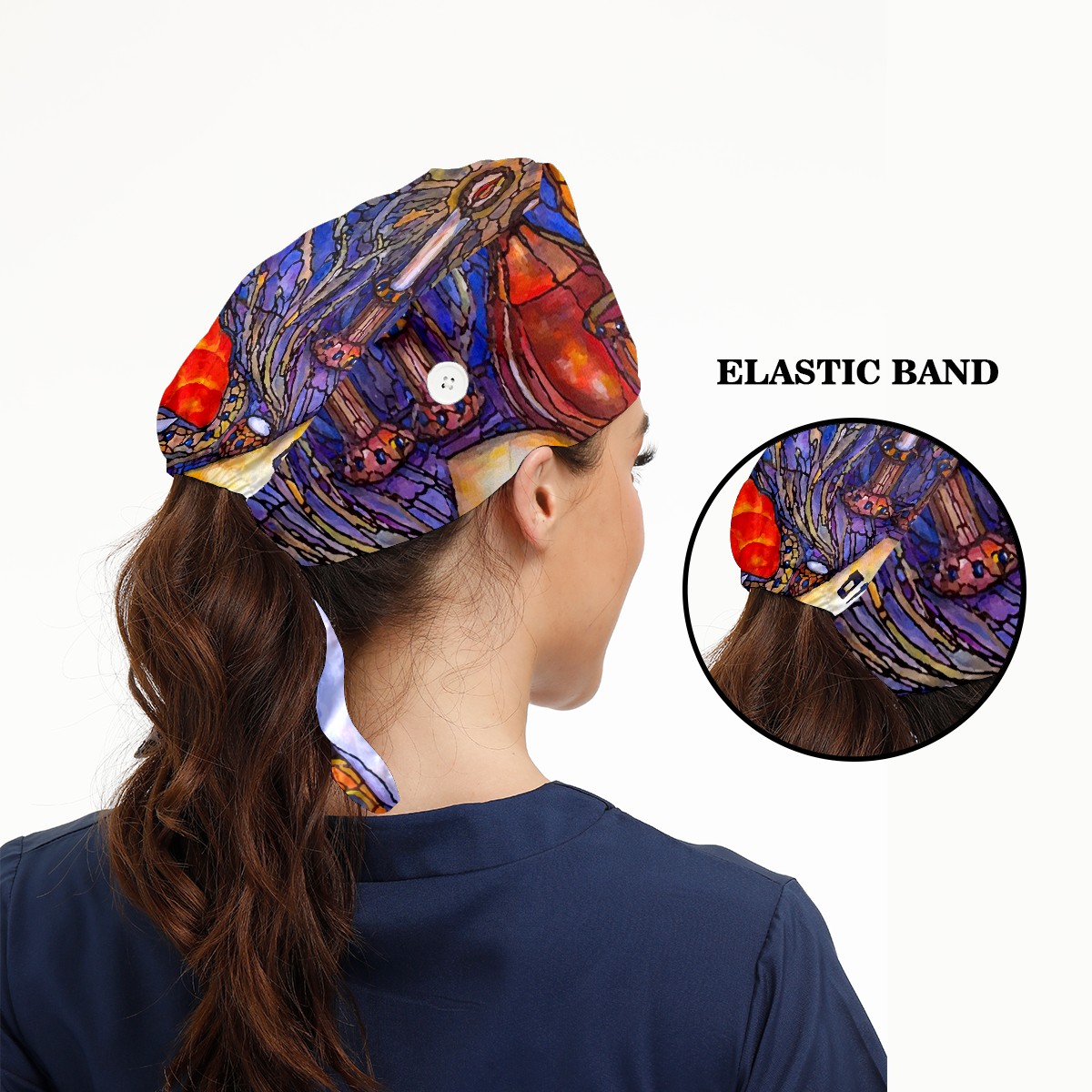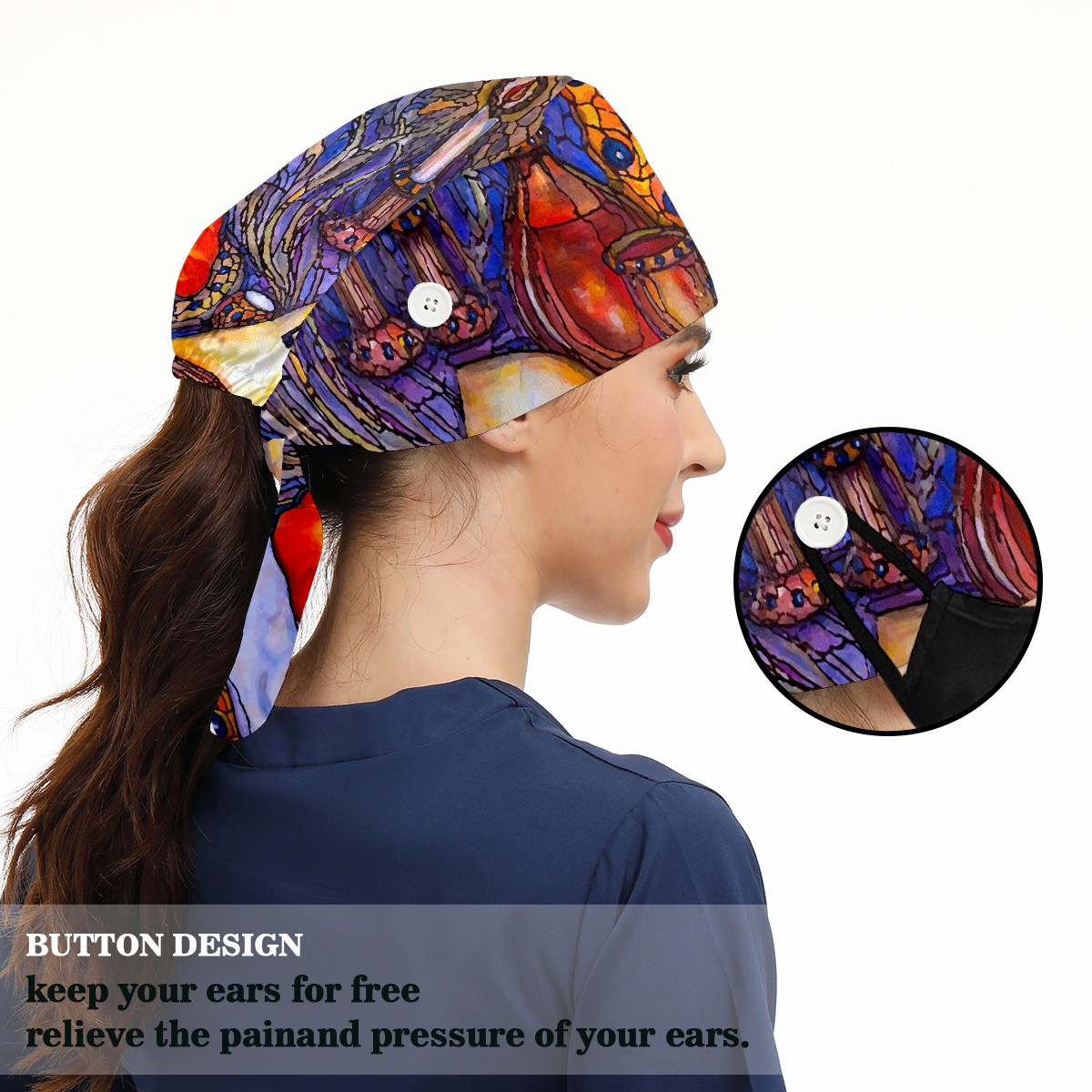 Working Caps with Button & Sweatband Satin Lined Cotton Adjustable Nurse Hats Elastic Band Scrub Cap Surgeon Hat Shabbat Shalom