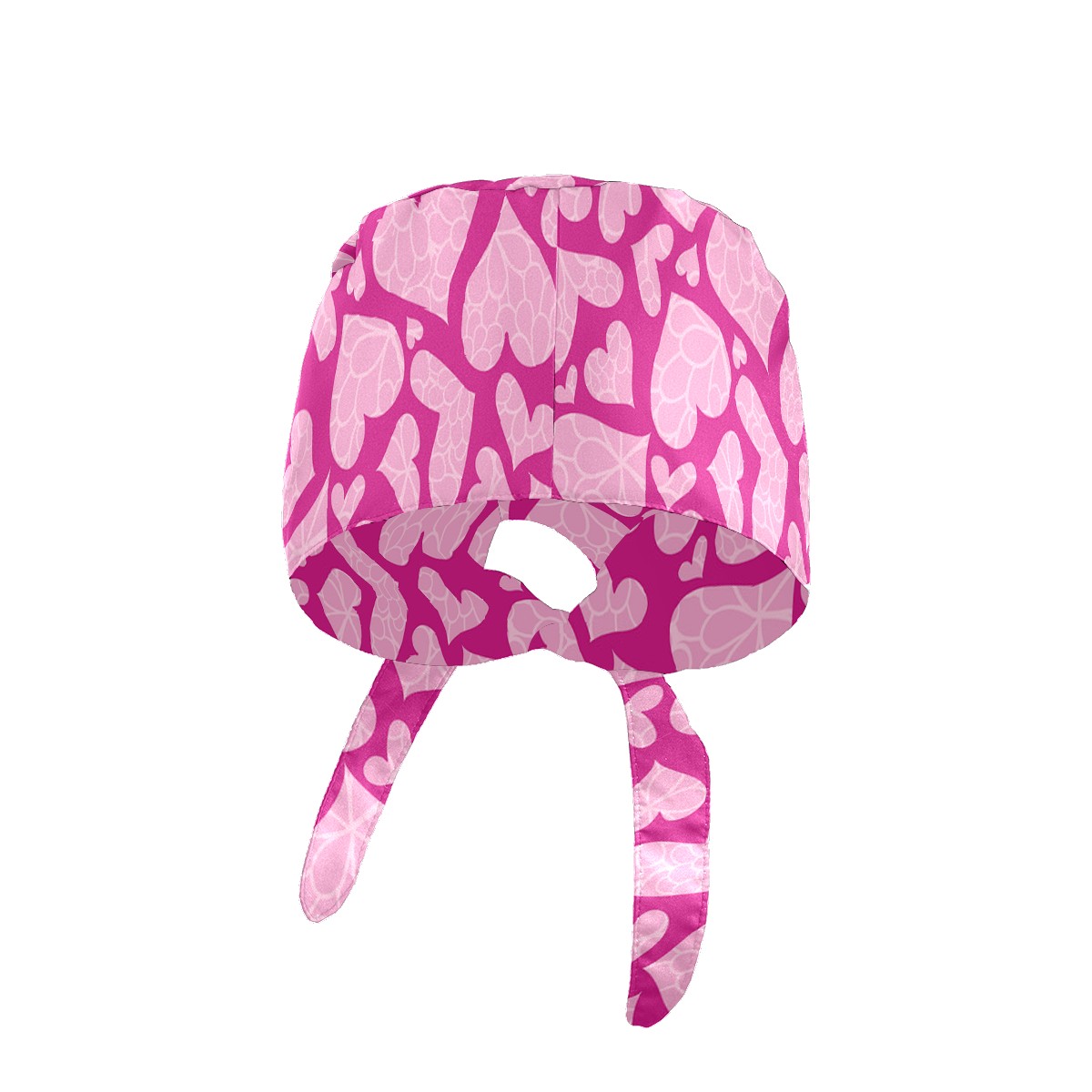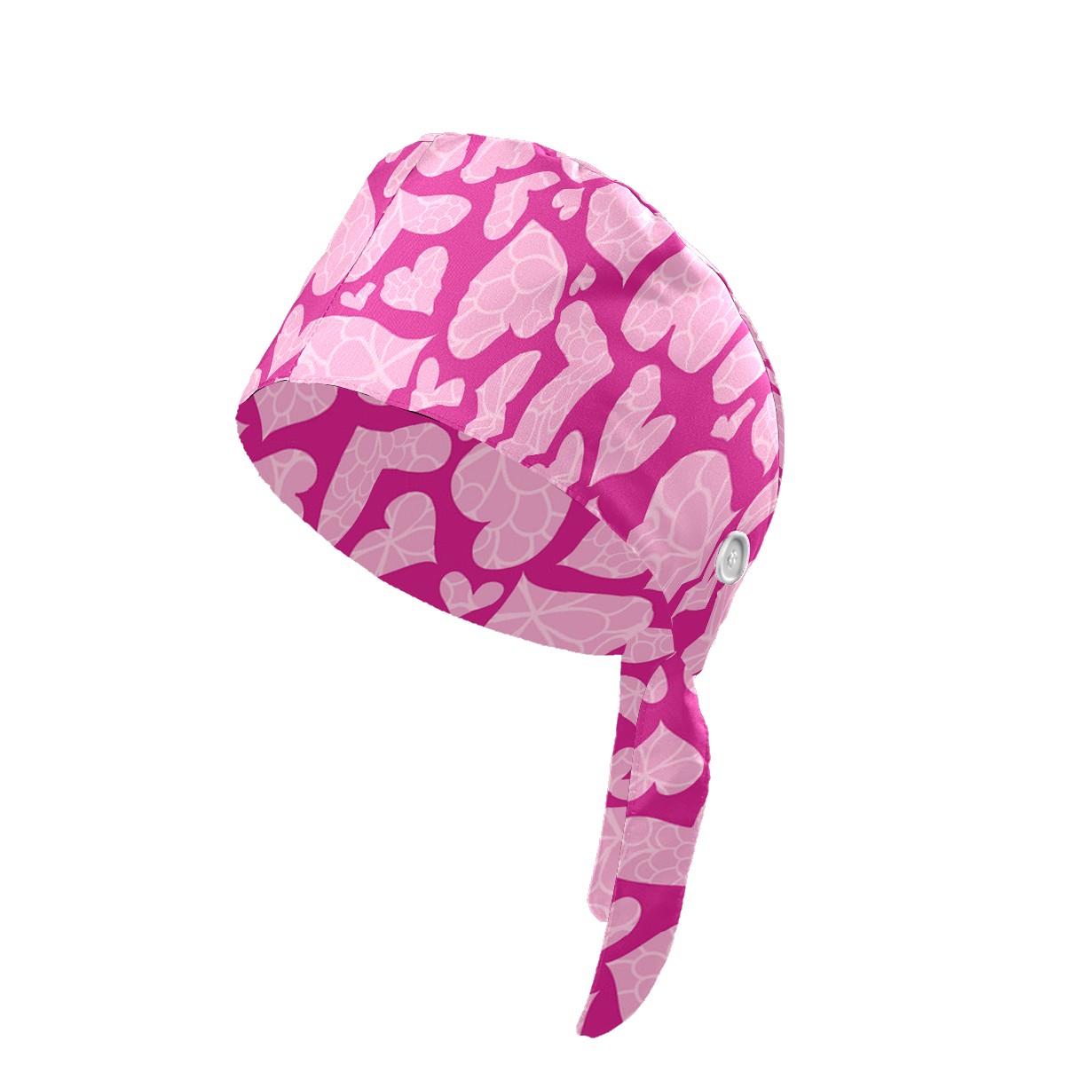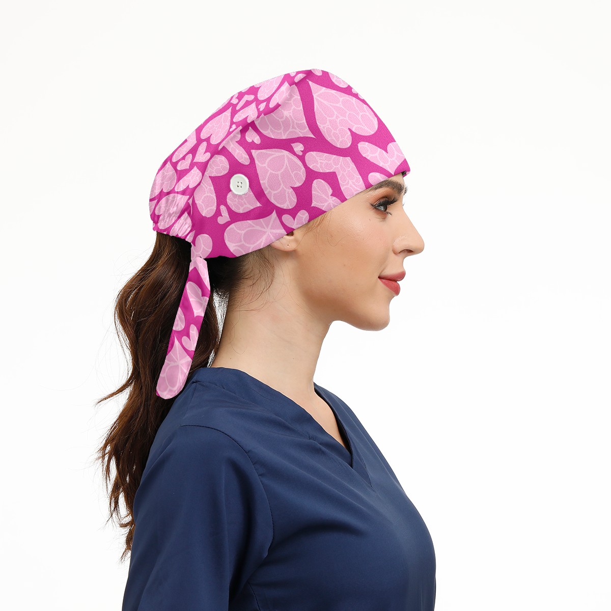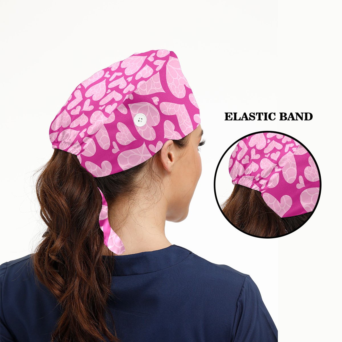 Working Caps with Button & Sweatband Satin Lined Cotton Adjustable Nurse Hats Elastic Band Scrub Cap Surgeon Hat Pink Floral Hearts (2)