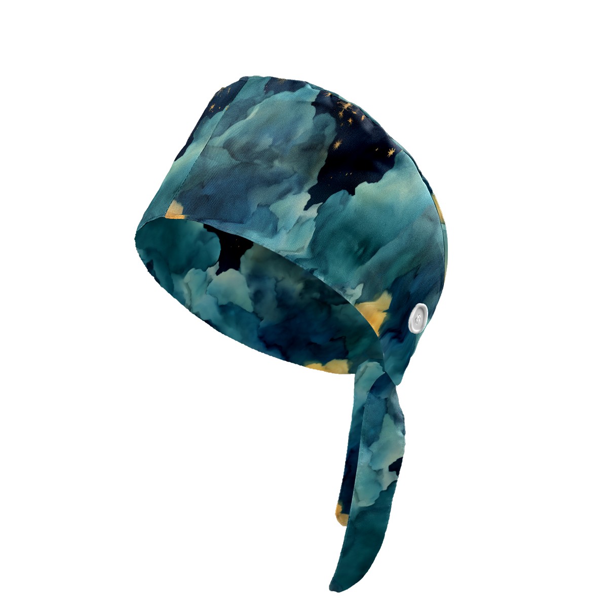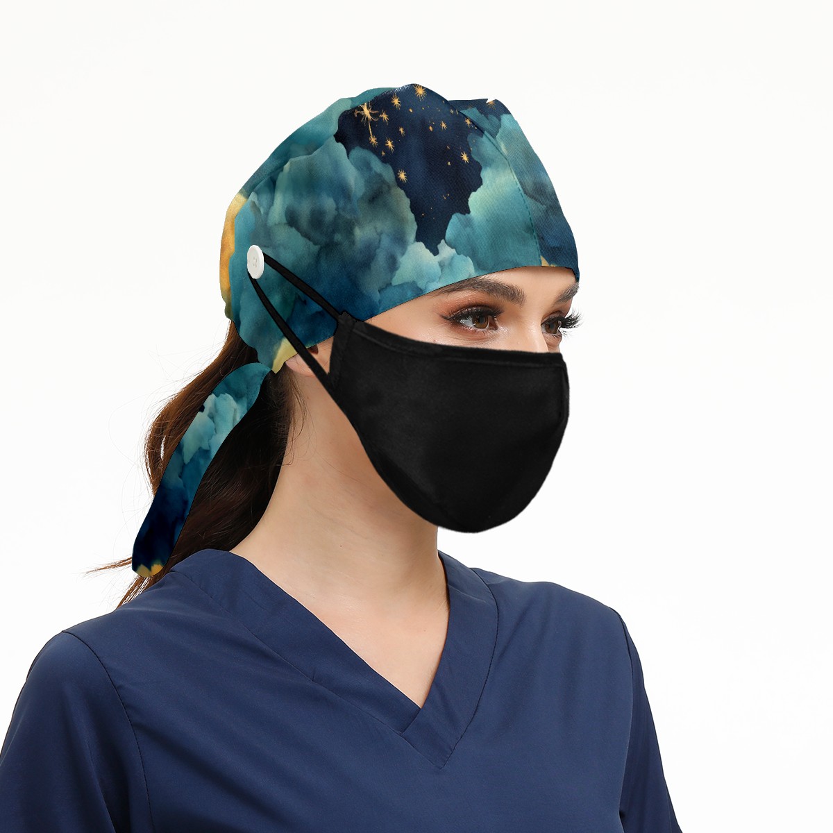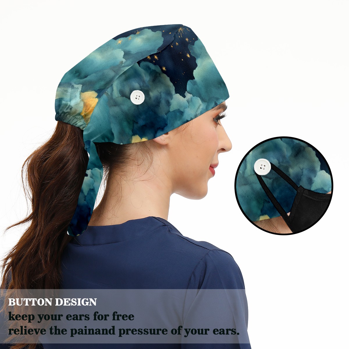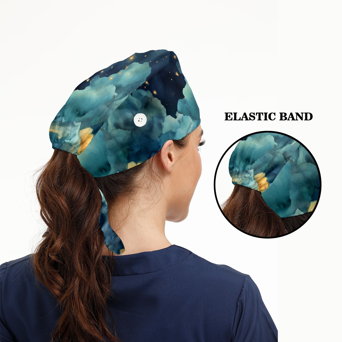 Working Caps with Button & Sweatband Satin Lined Cotton Adjustable Nurse Hats Elastic Band Scrub Cap Surgeon Hat Night Sky Moon Star