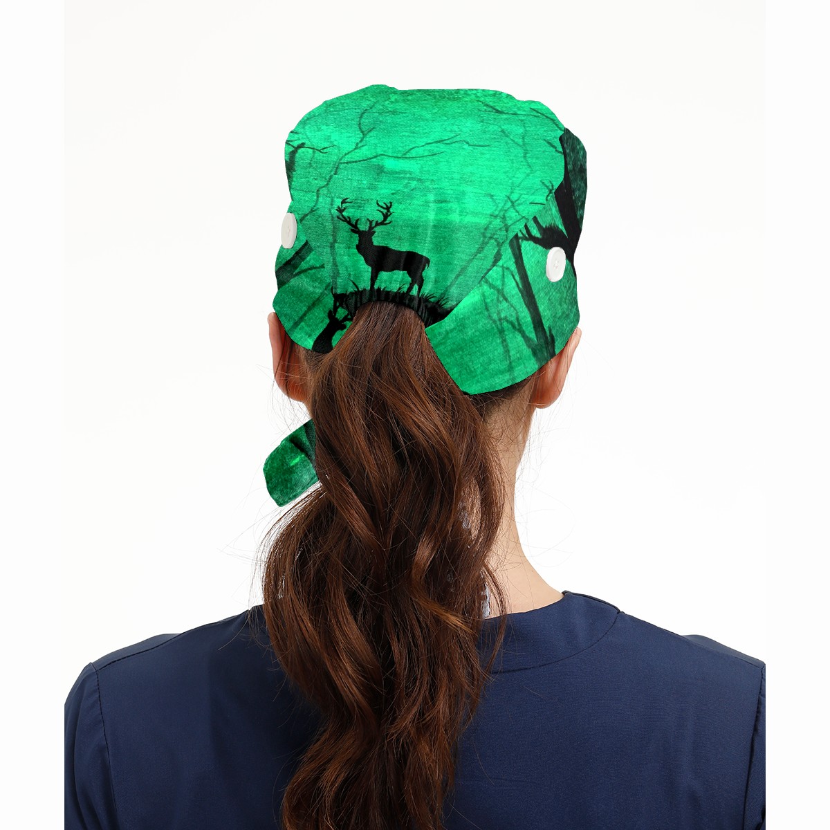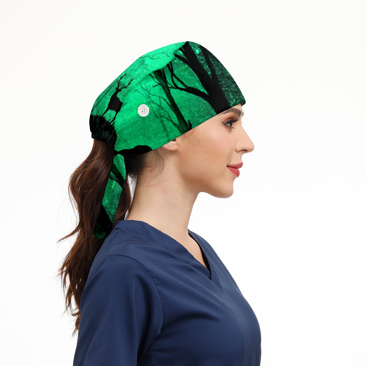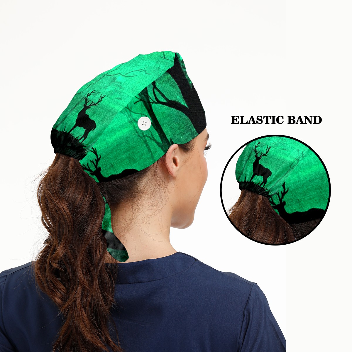 Working Caps with Button & Sweatband Satin Lined Cotton Adjustable Nurse Hats Elastic Band Scrub Cap Surgeon Hat Glow In The Dark Art Deer Forest