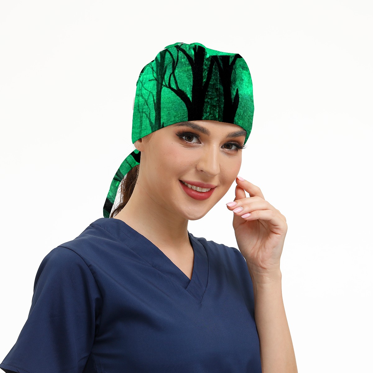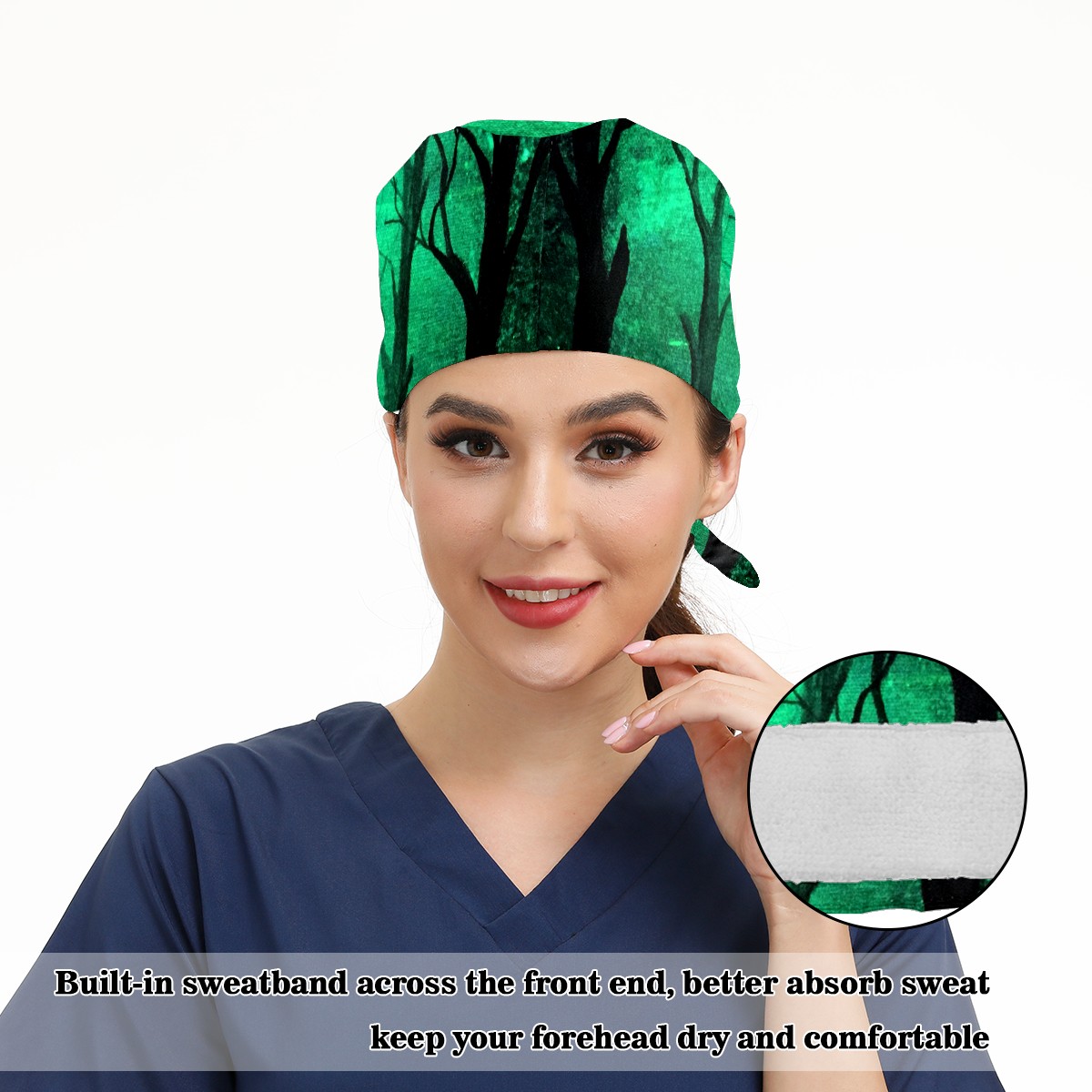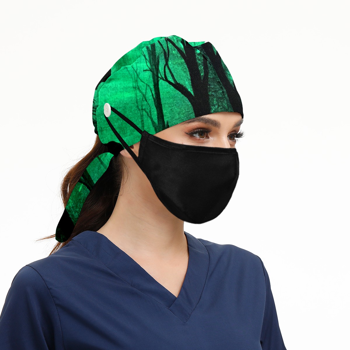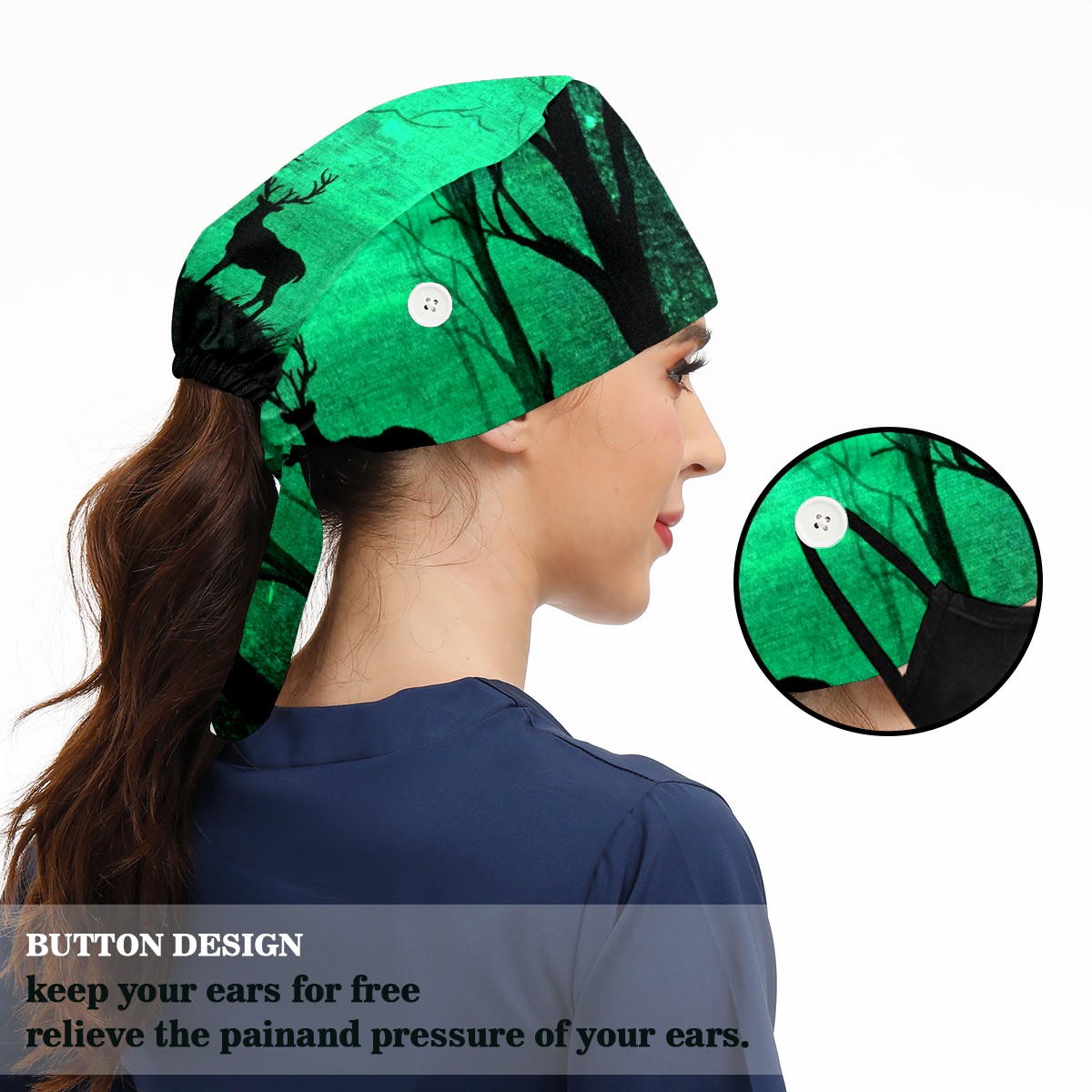 Working Caps with Button & Sweatband Satin Lined Cotton Adjustable Nurse Hats Elastic Band Scrub Cap Surgeon Hat Glow In The Dark Art Deer Forest