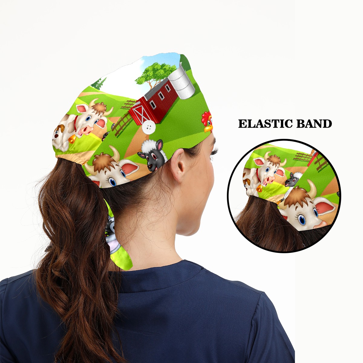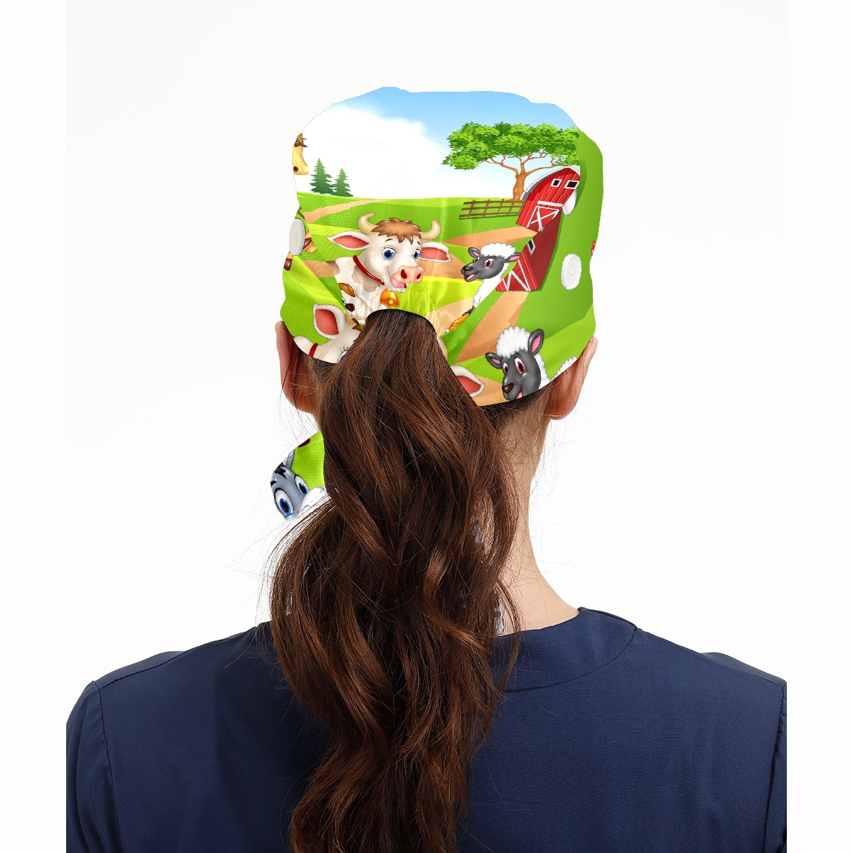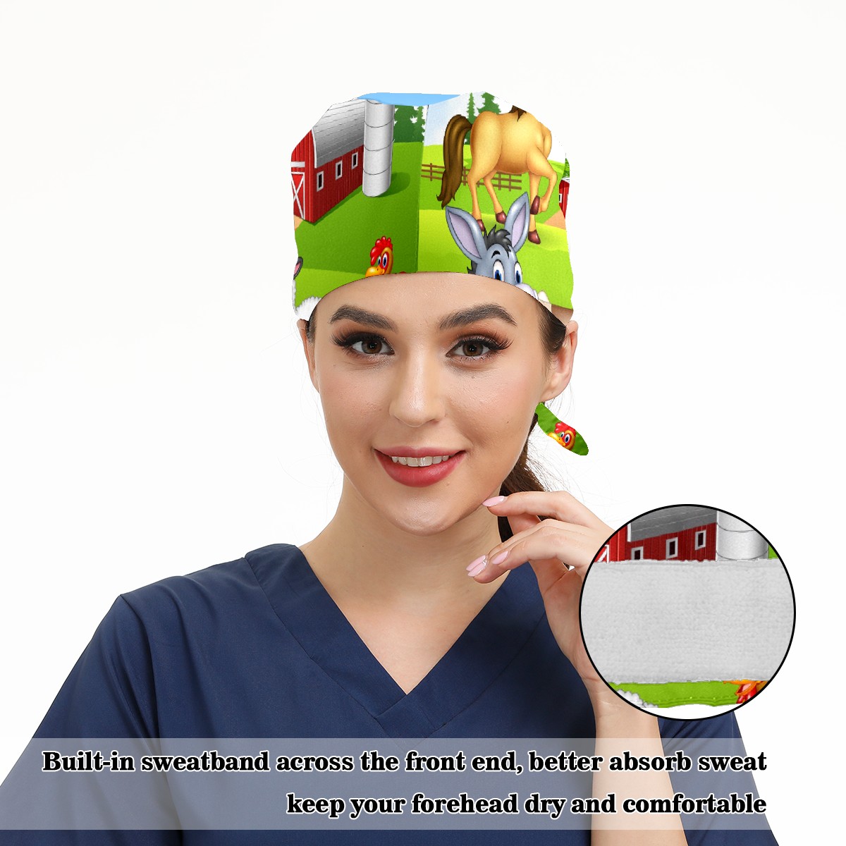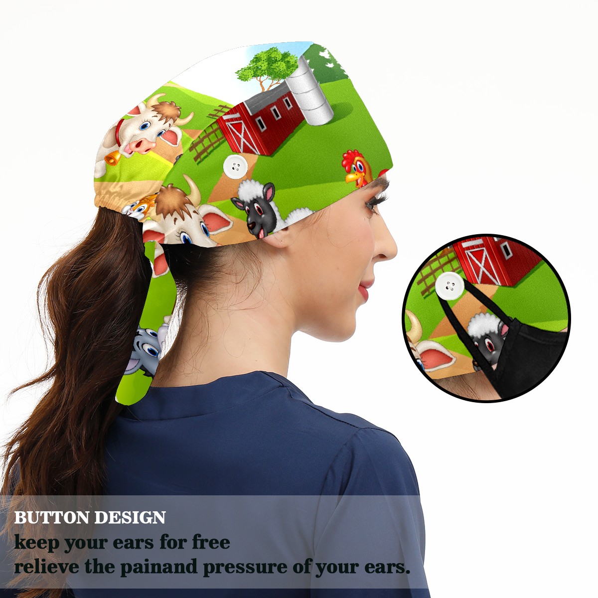 Working Caps with Button & Sweatband Satin Lined Cotton Adjustable Nurse Hats Elastic Band Scrub Cap Surgeon Hat Animal Farm Selfie