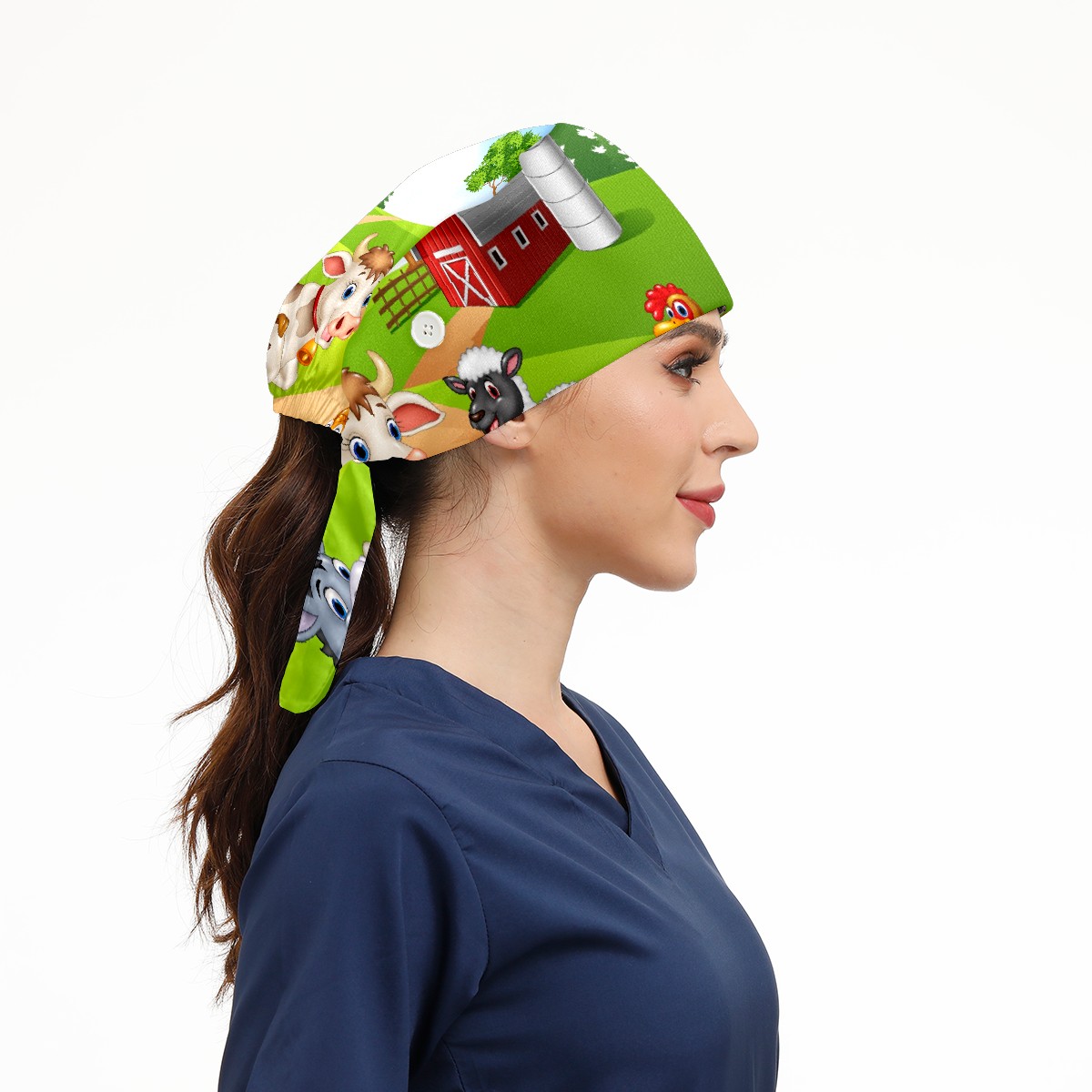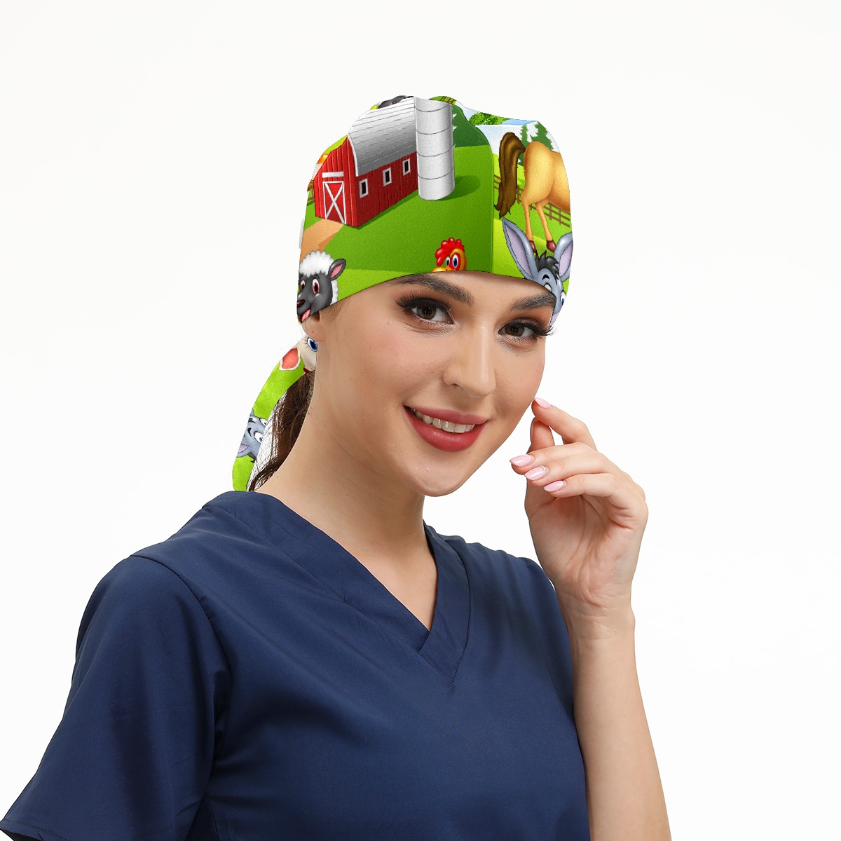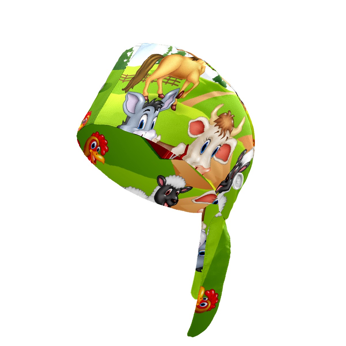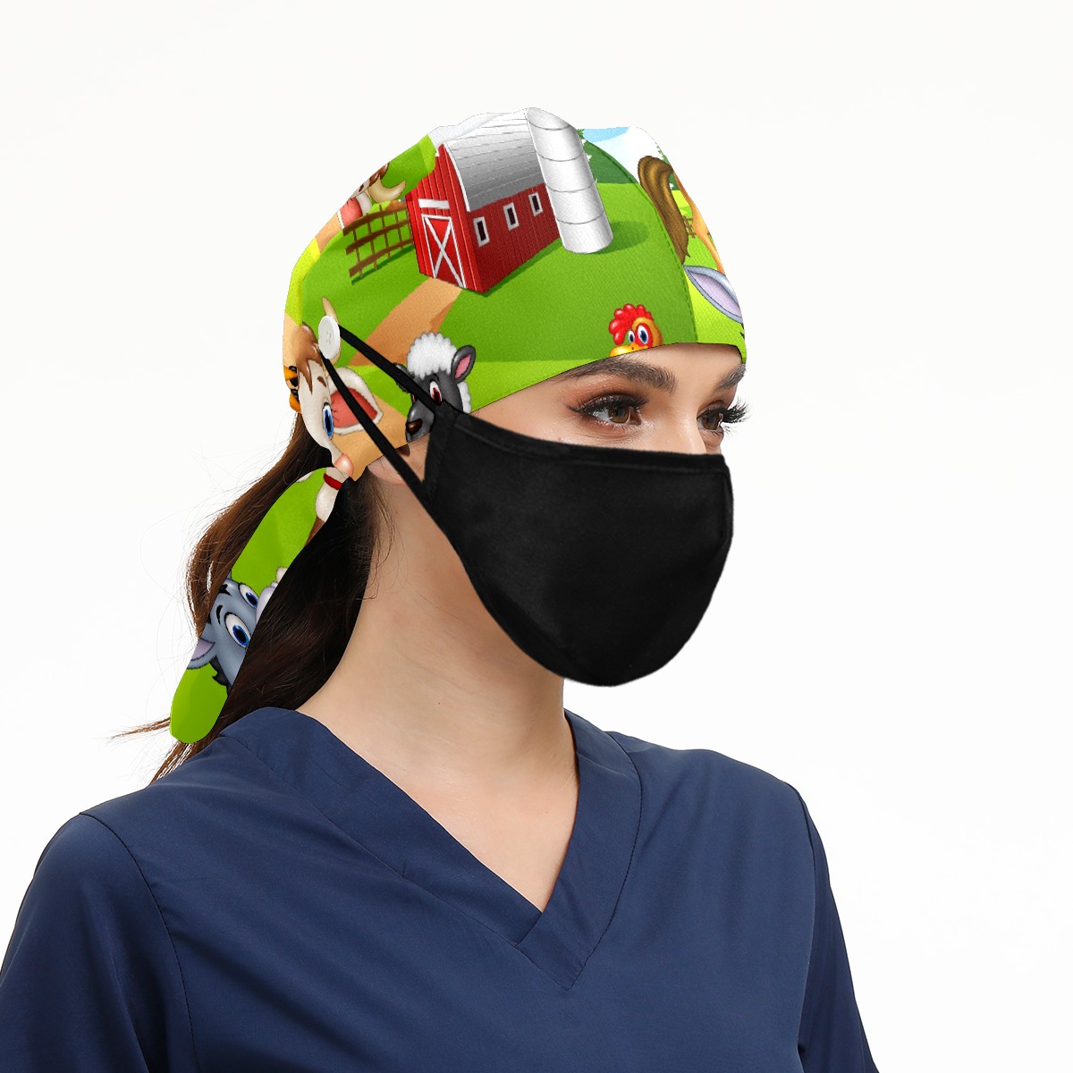 Working Caps with Button & Sweatband Satin Lined Cotton Adjustable Nurse Hats Elastic Band Scrub Cap Surgeon Hat Animal Farm Selfie