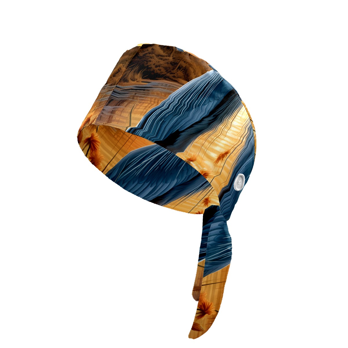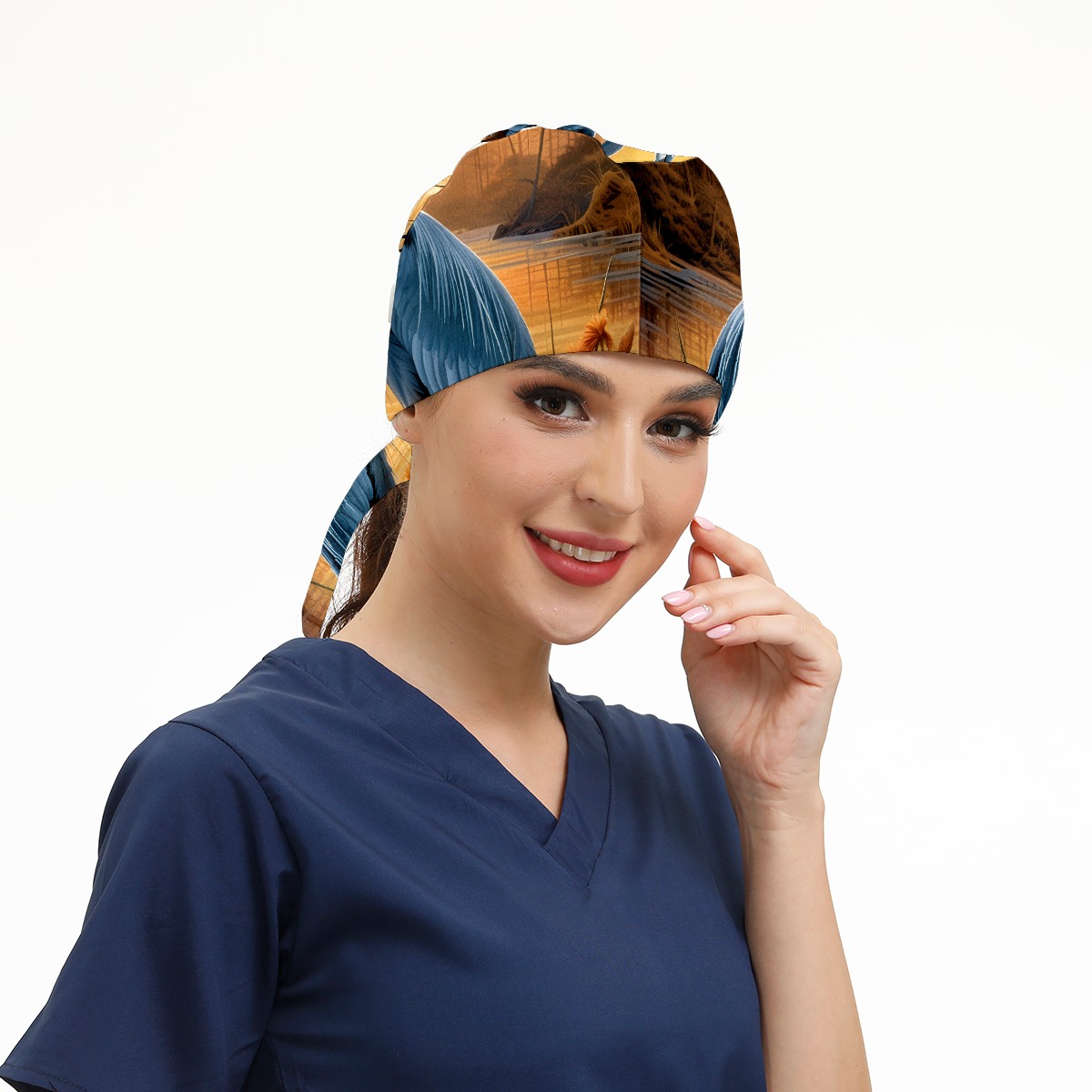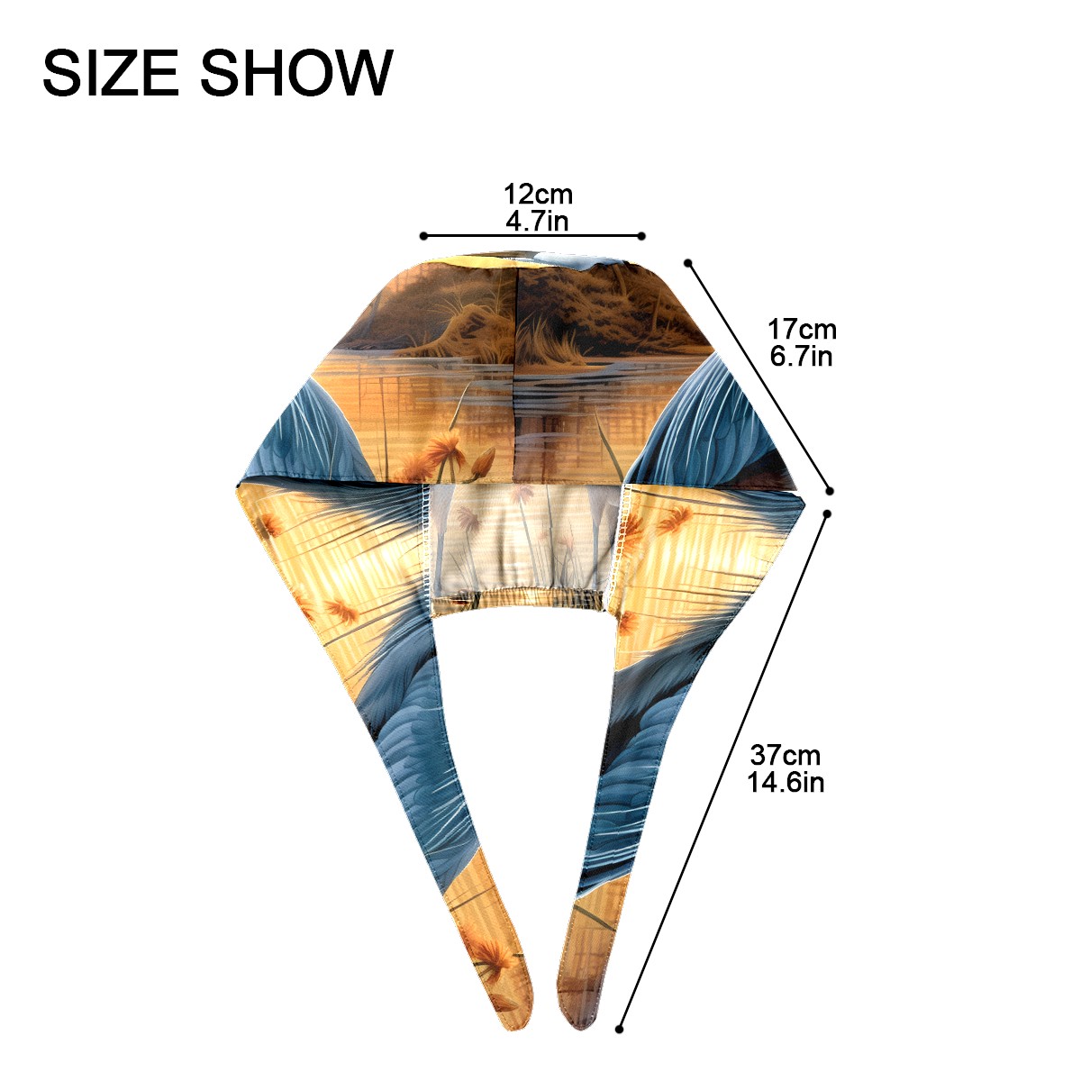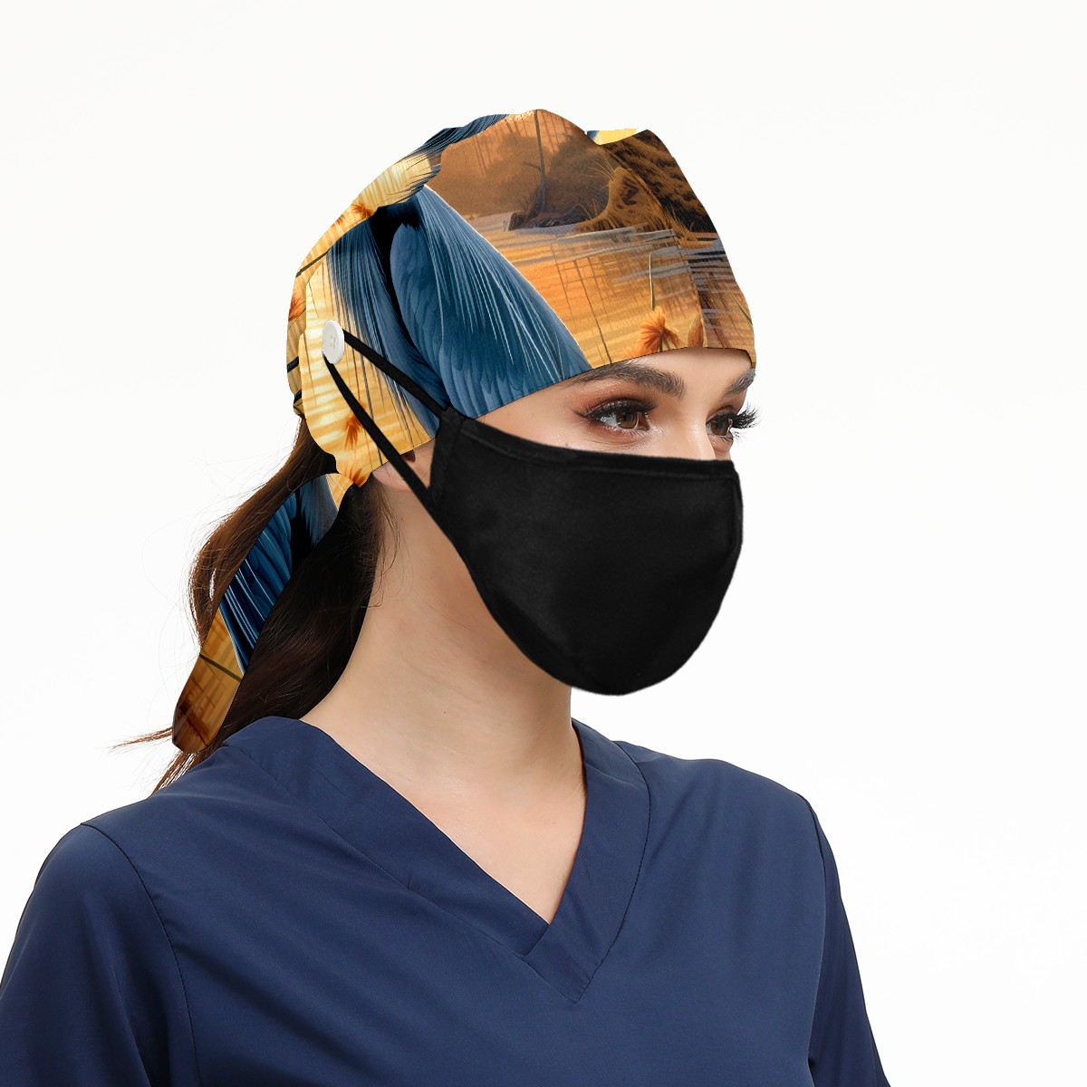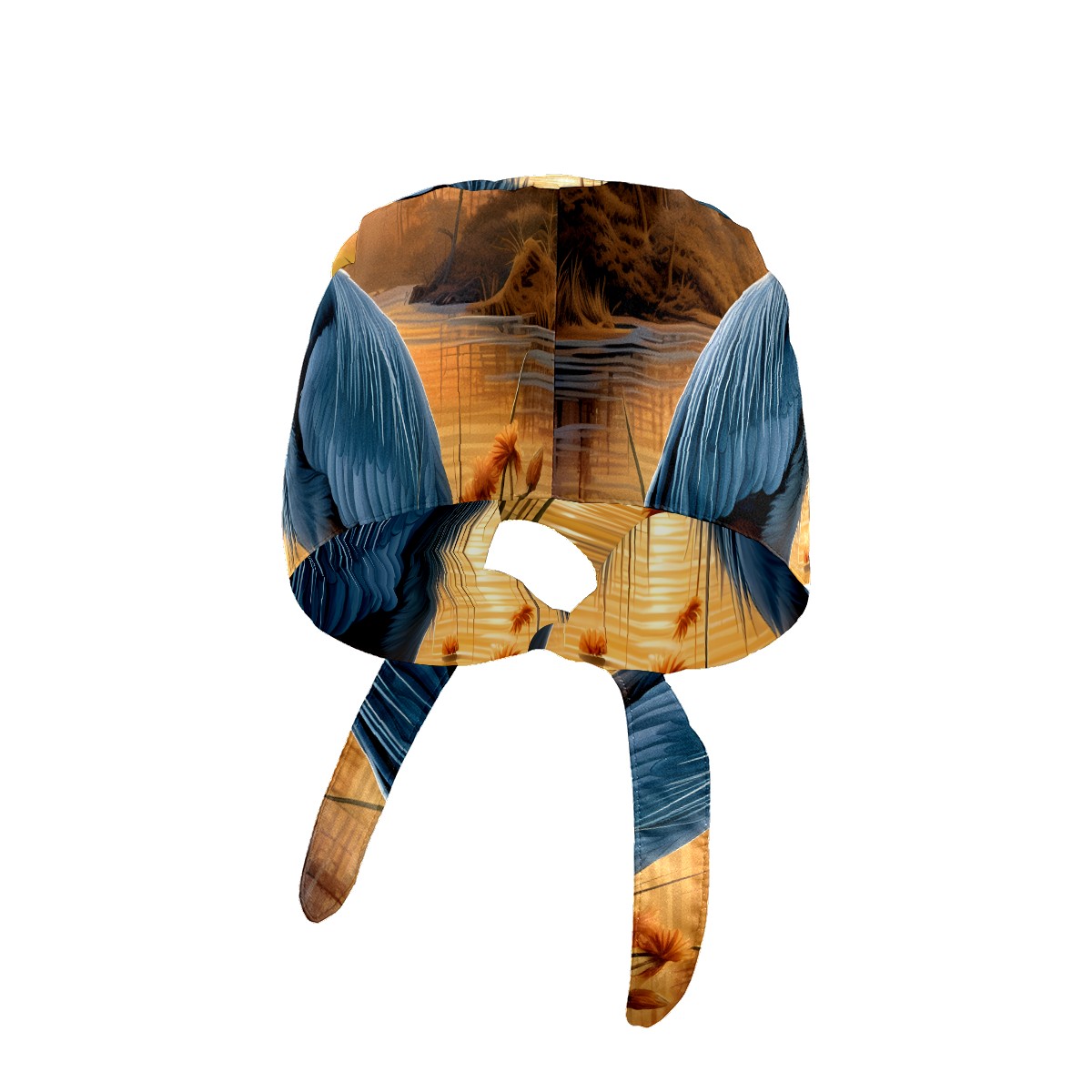 Working Caps with Button & Sweatband Satin Lined Cotton Adjustable Nurse Hats Elastic Band Scrub Cap Surgeon Hat Two Blue Herons Standing