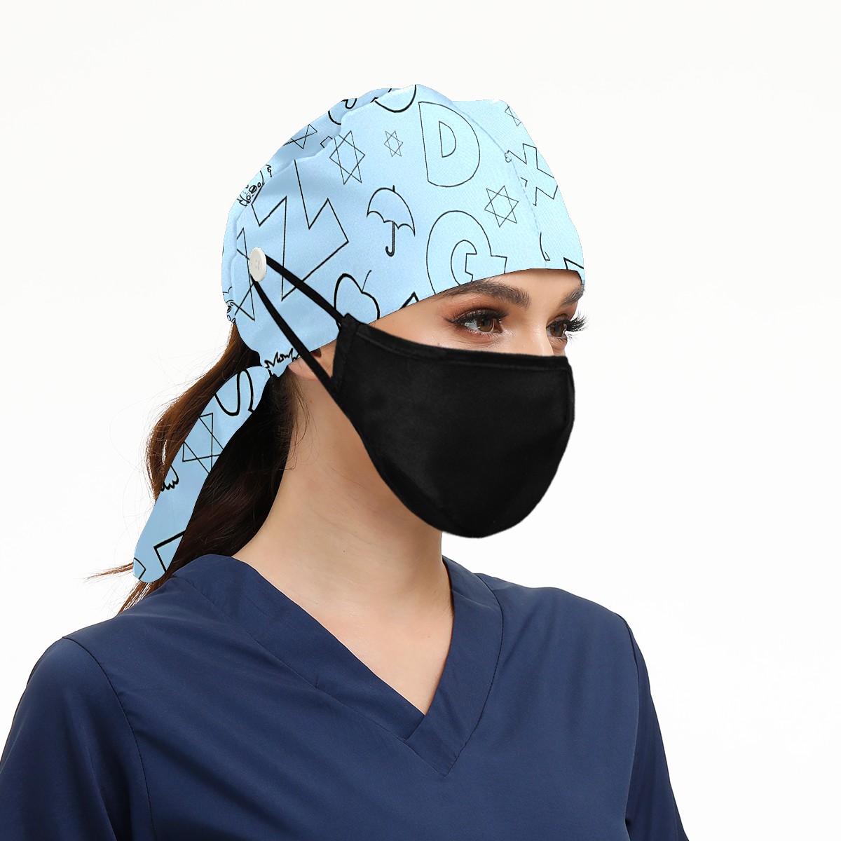 Working Caps with Button & Sweatband Satin Lined Cotton Adjustable Nurse Hats Elastic Band Scrub Cap Surgeon Hat 123