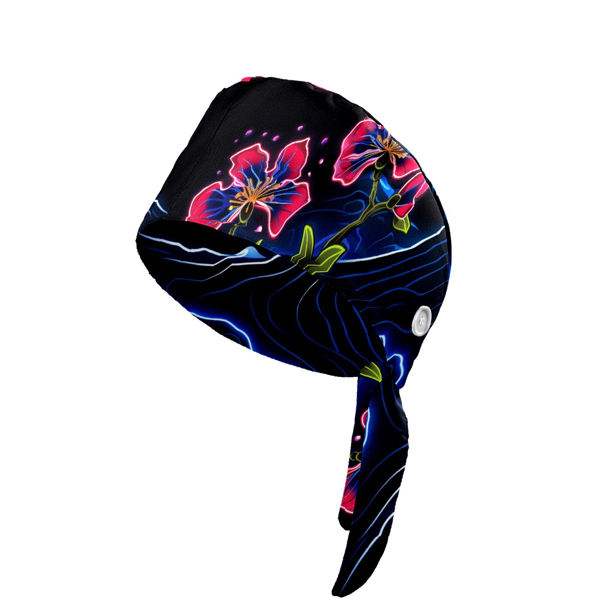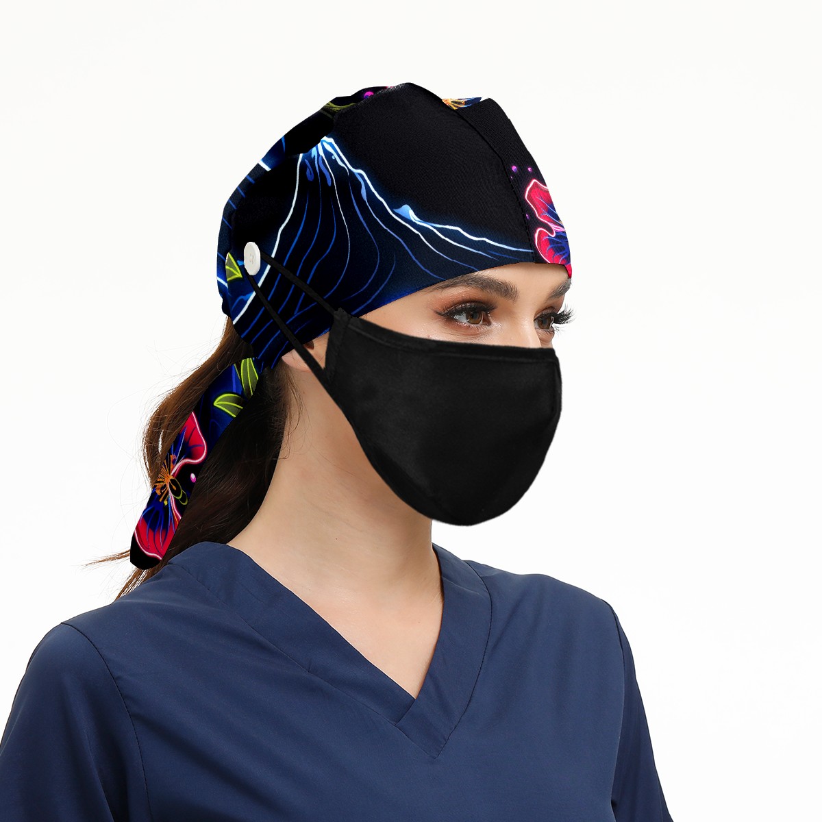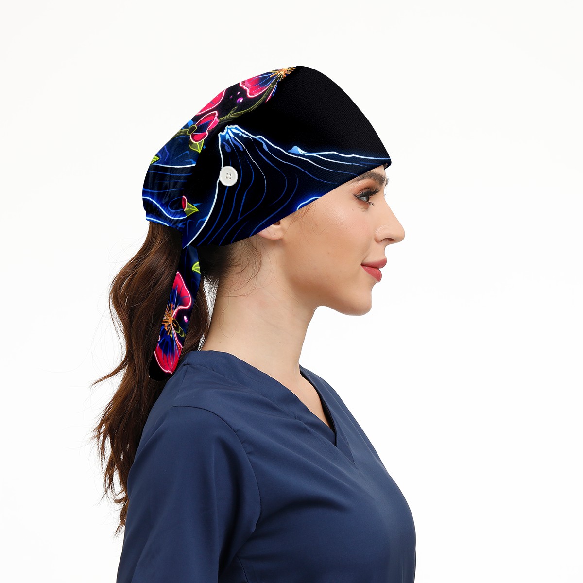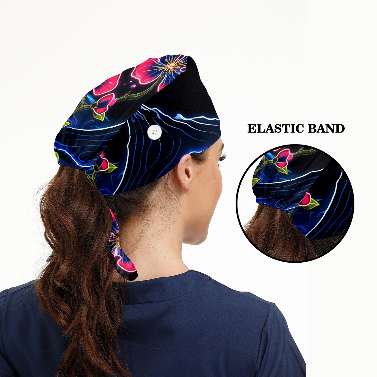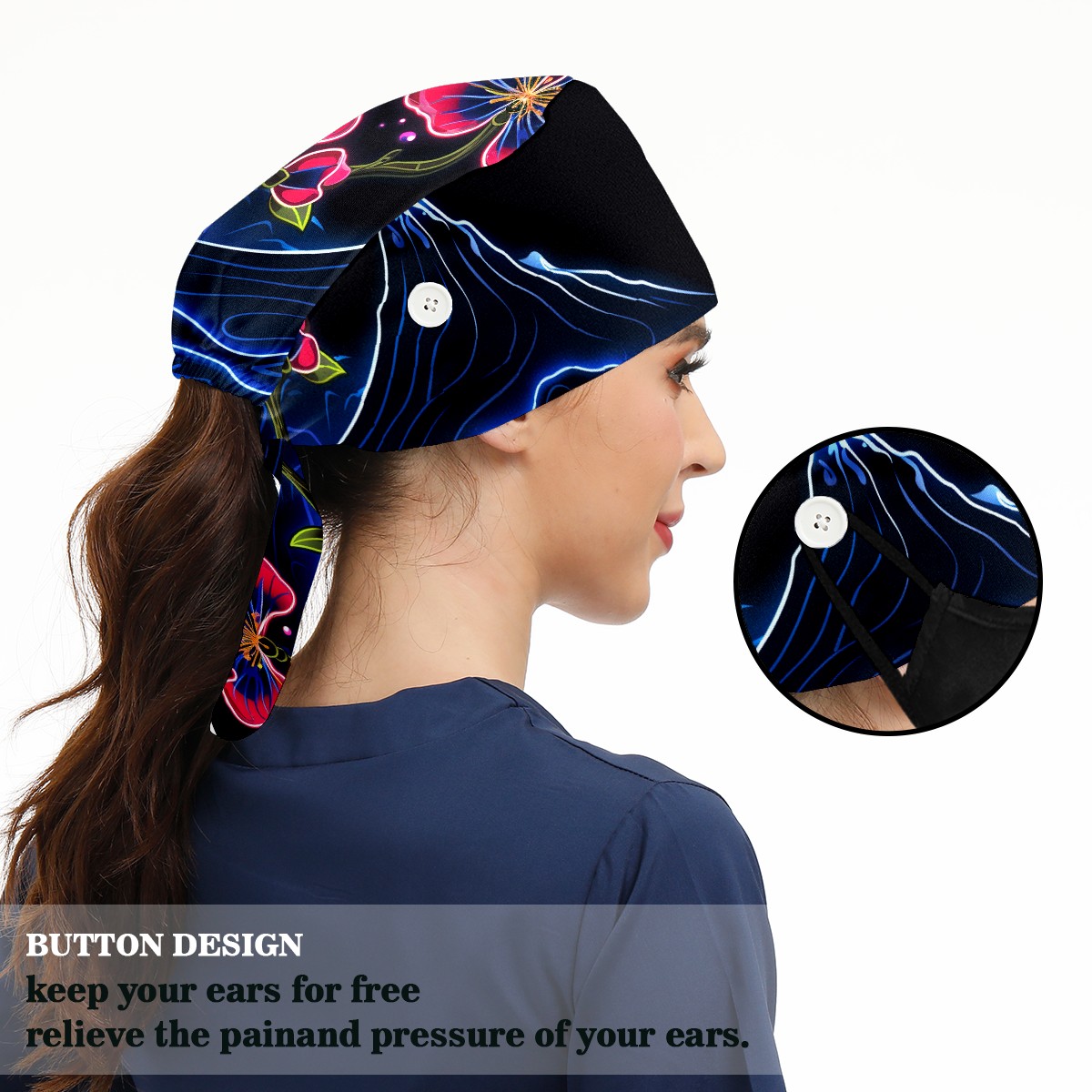 Working Caps with Button & Sweatband Satin Lined Cotton Adjustable Nurse Hats Elastic Band Scrub Cap Surgeon Hat Flower (359)
