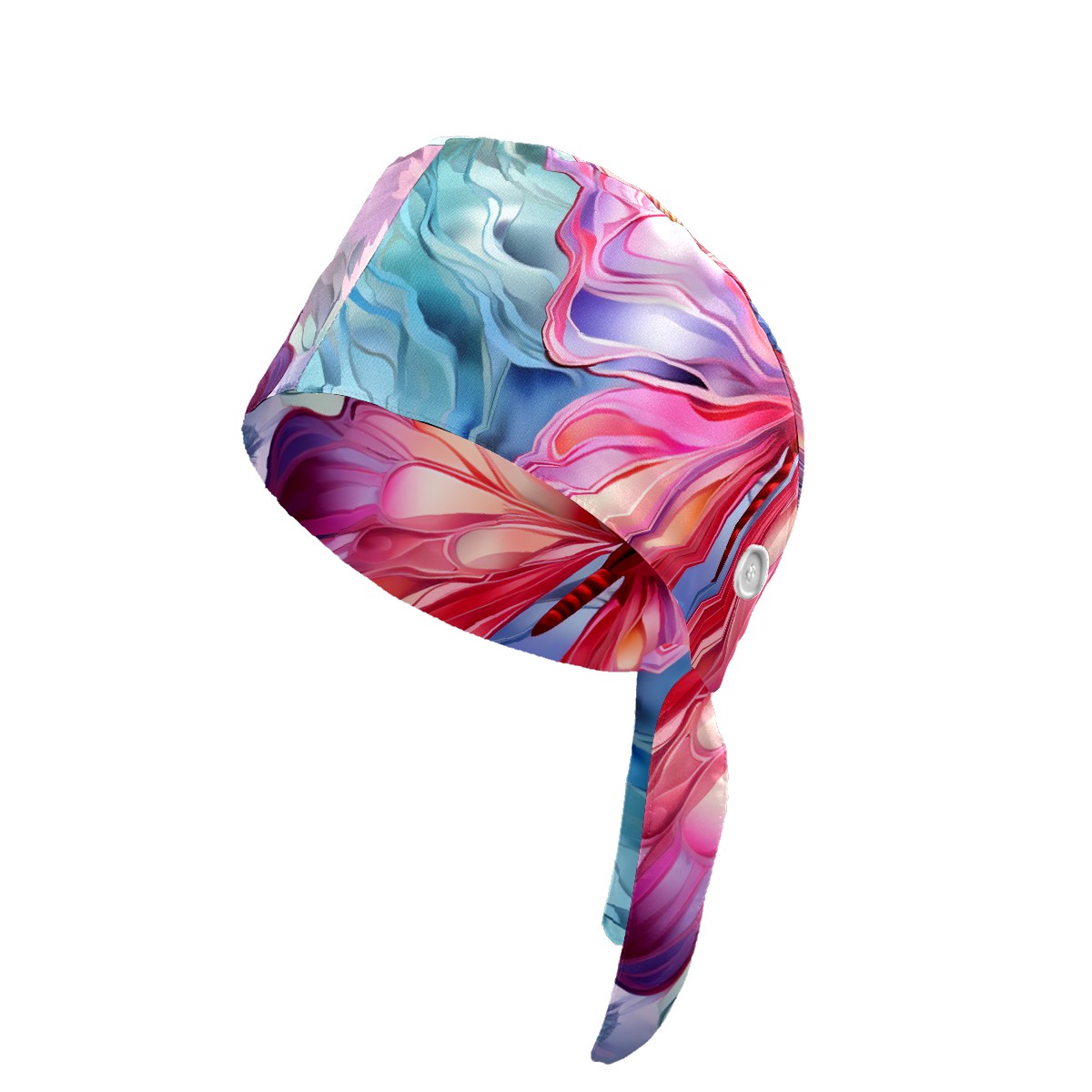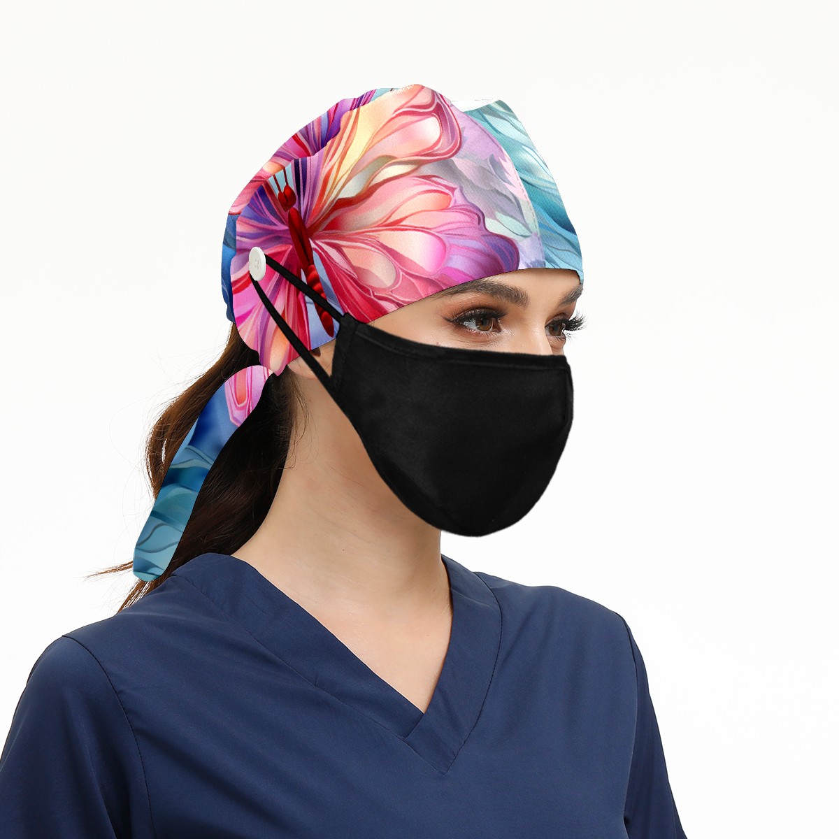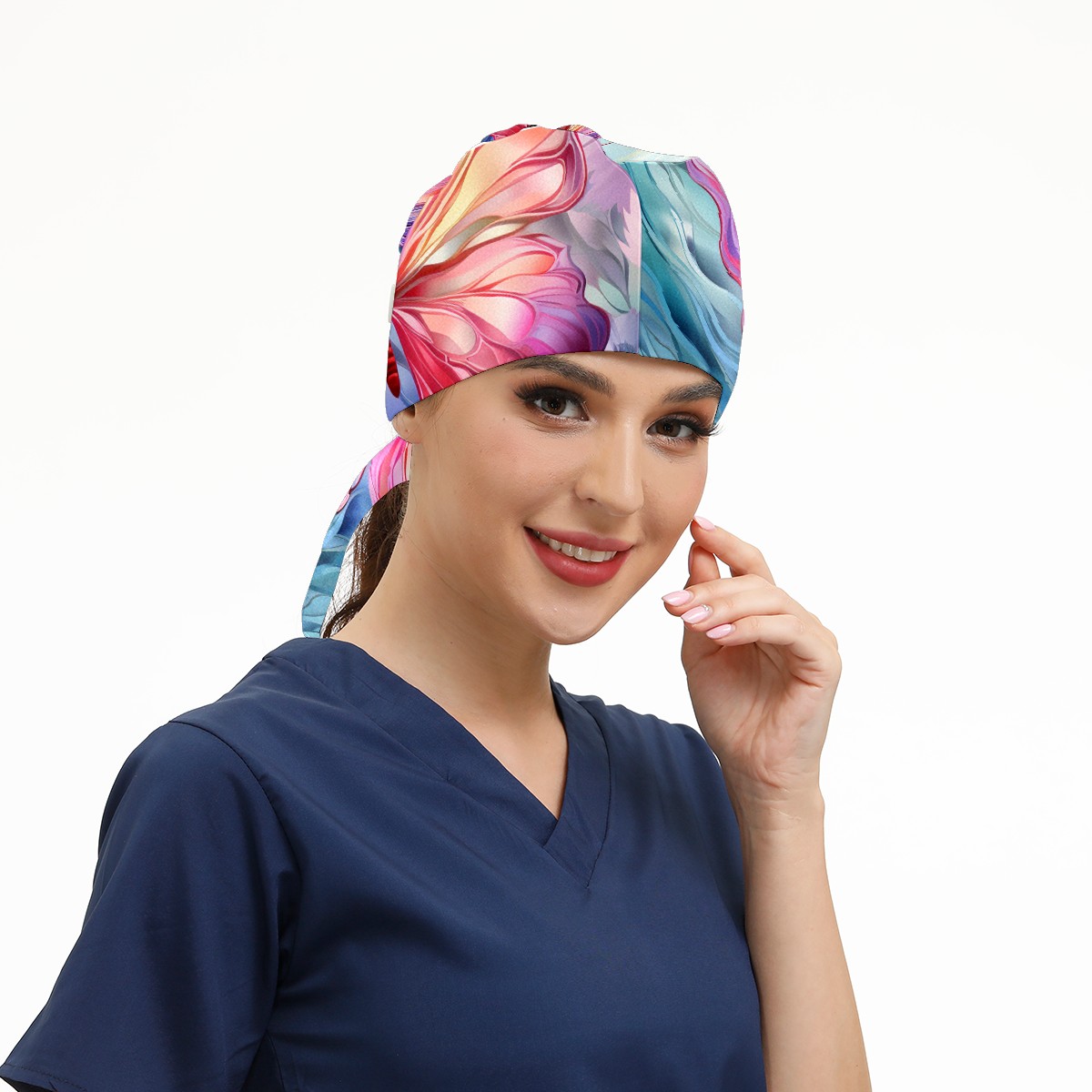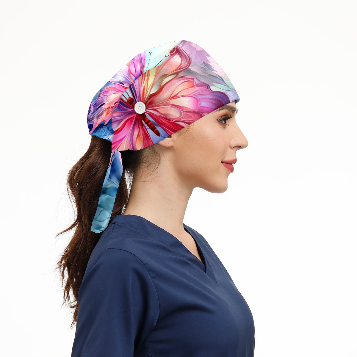 Working Caps with Button & Sweatband Satin Lined Cotton Adjustable Nurse Hats Elastic Band Scrub Cap Surgeon Hat Butterfly (16)