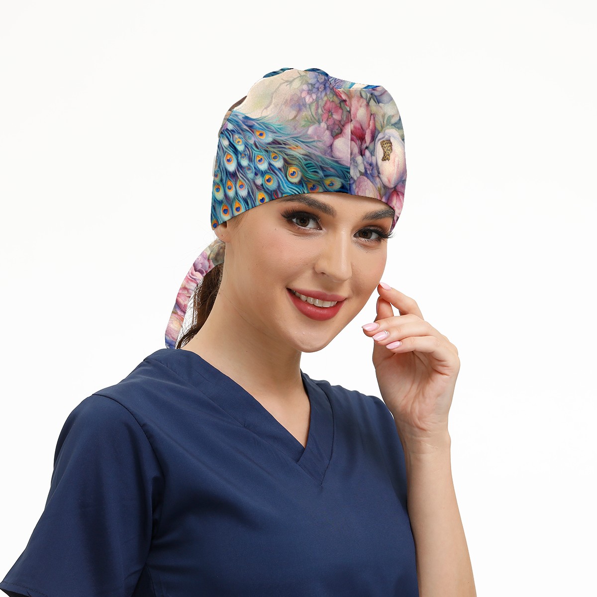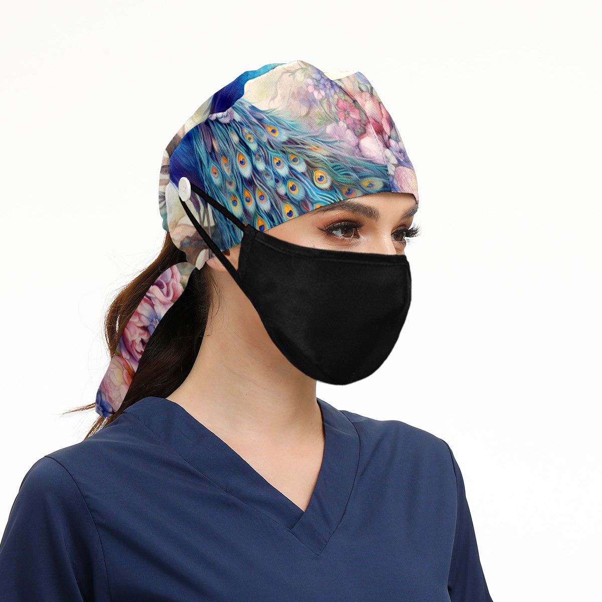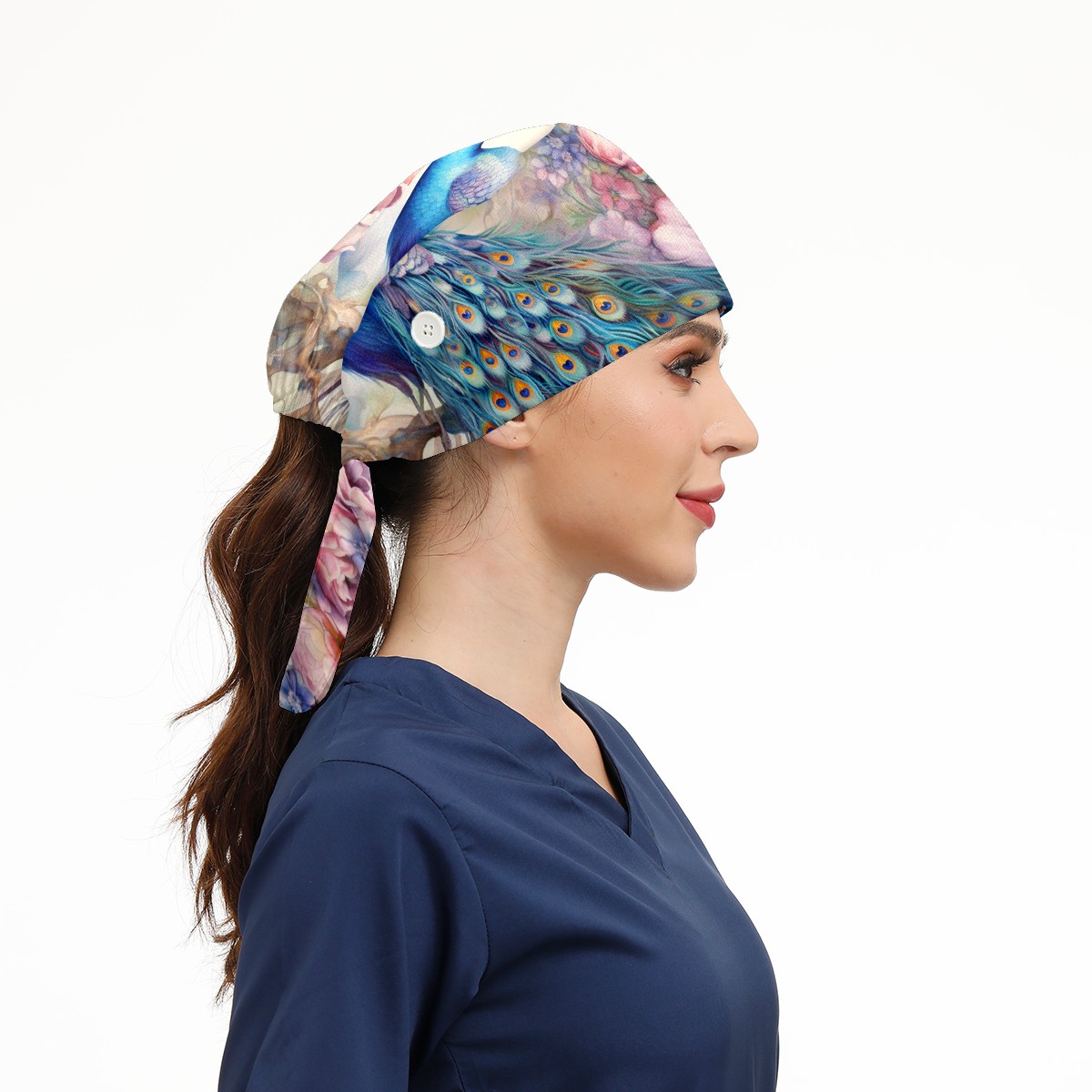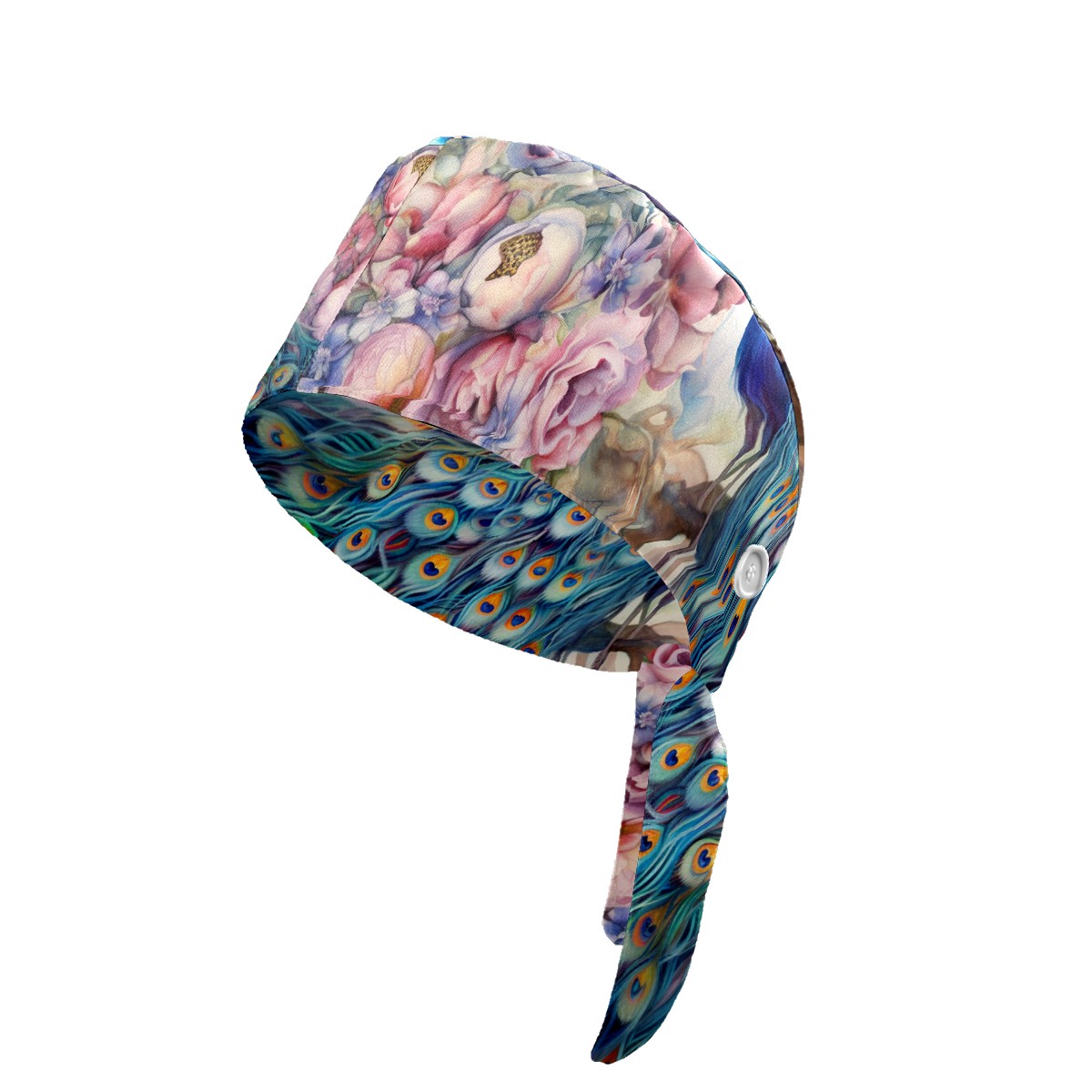 Working Caps with Button & Sweatband Satin Lined Cotton Adjustable Nurse Hats Elastic Band Scrub Cap Surgeon Hat Peacock (18)