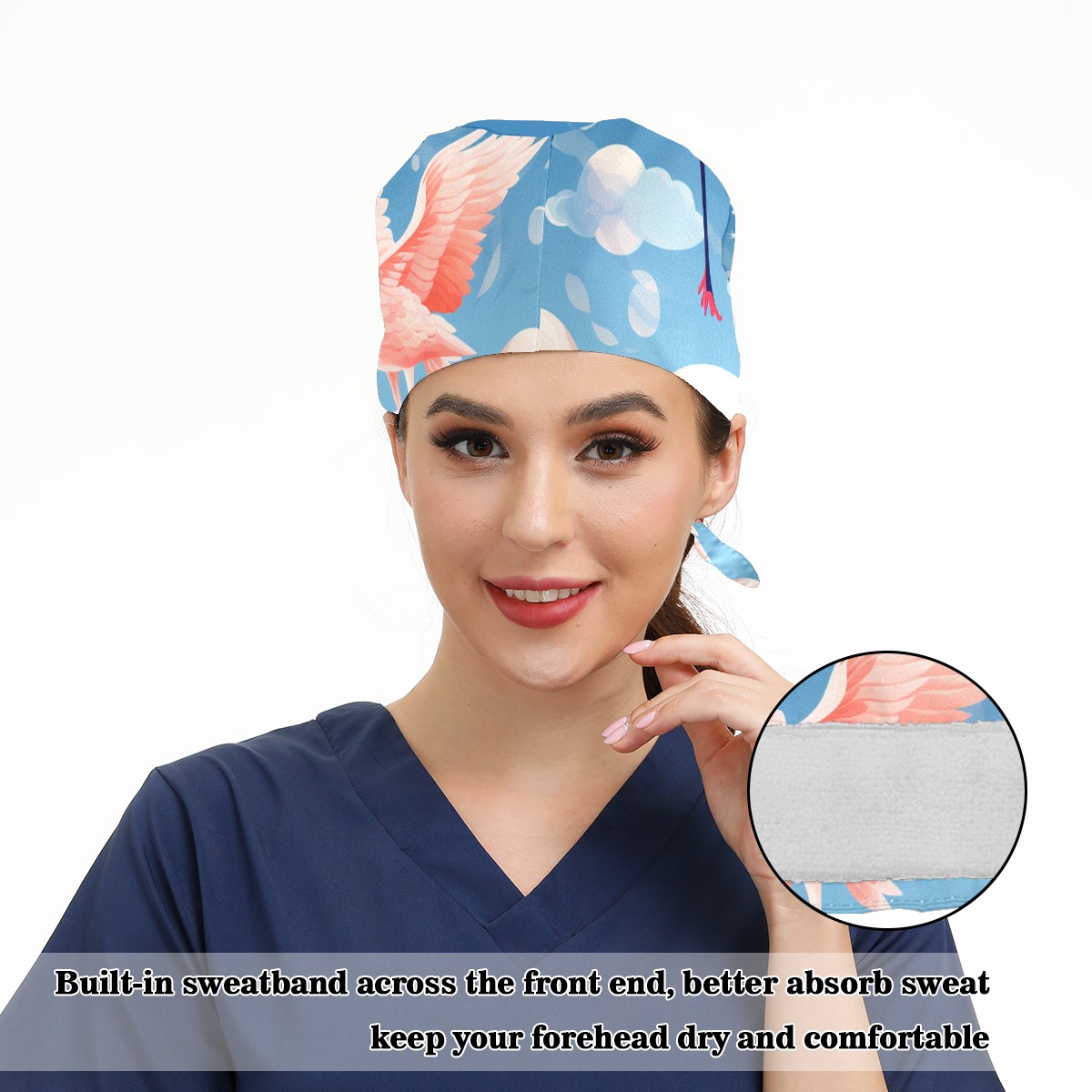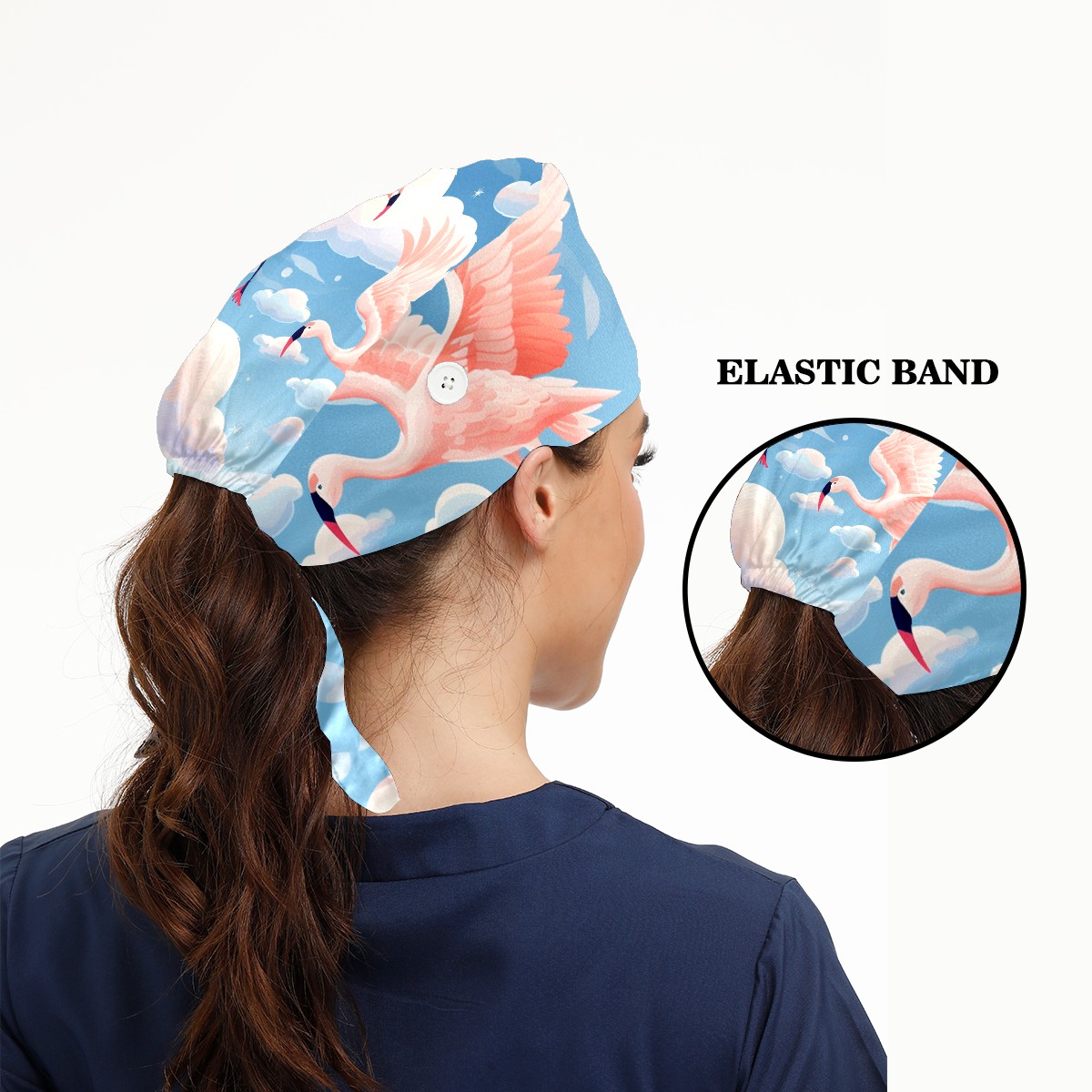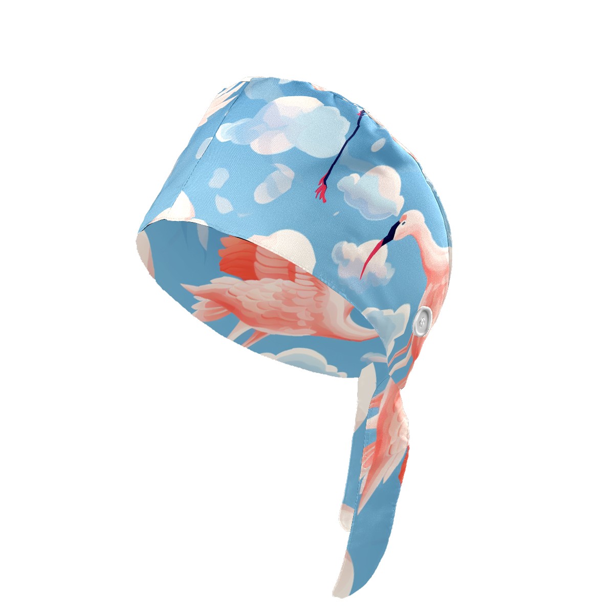 Working Caps with Button & Sweatband Satin Lined Cotton Adjustable Nurse Hats Elastic Band Scrub Cap Surgeon Hat Flamingo (52)
