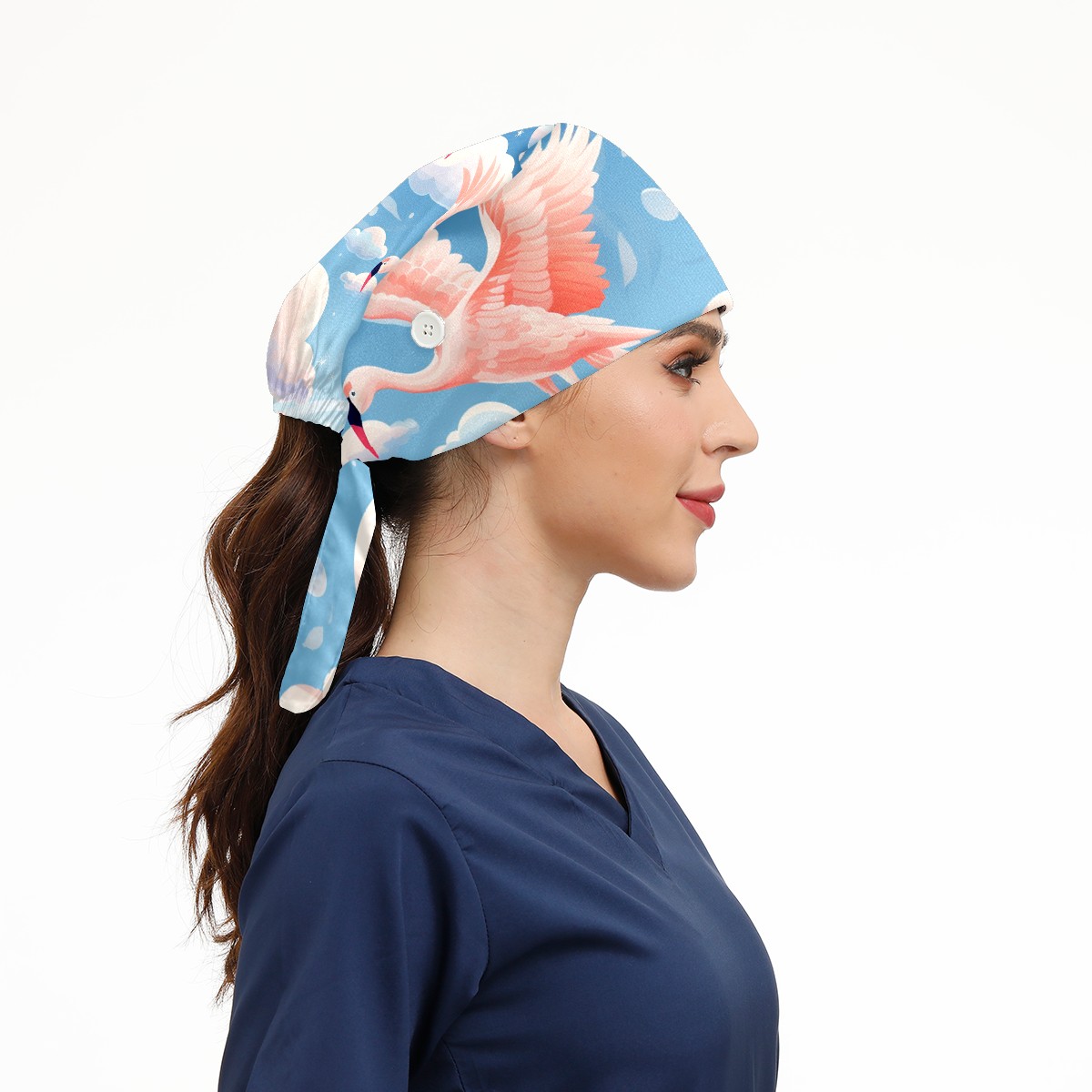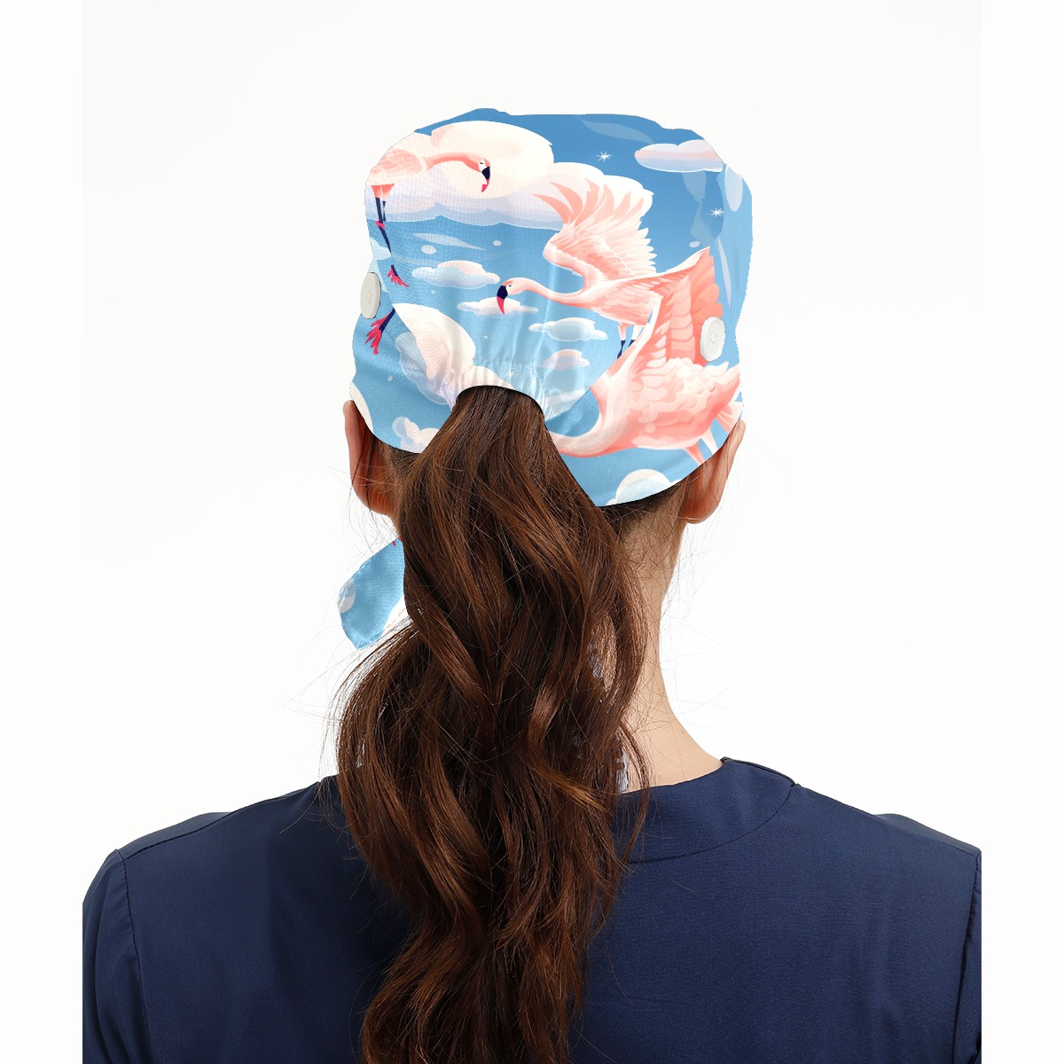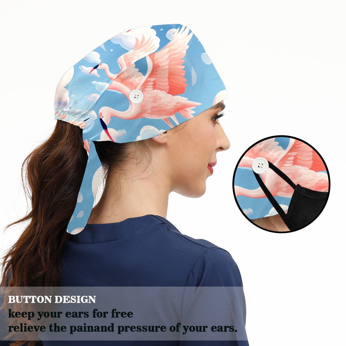 Working Caps with Button & Sweatband Satin Lined Cotton Adjustable Nurse Hats Elastic Band Scrub Cap Surgeon Hat Flamingo (52)