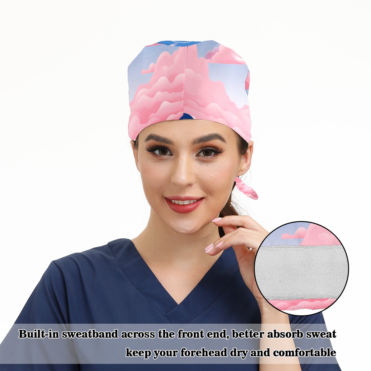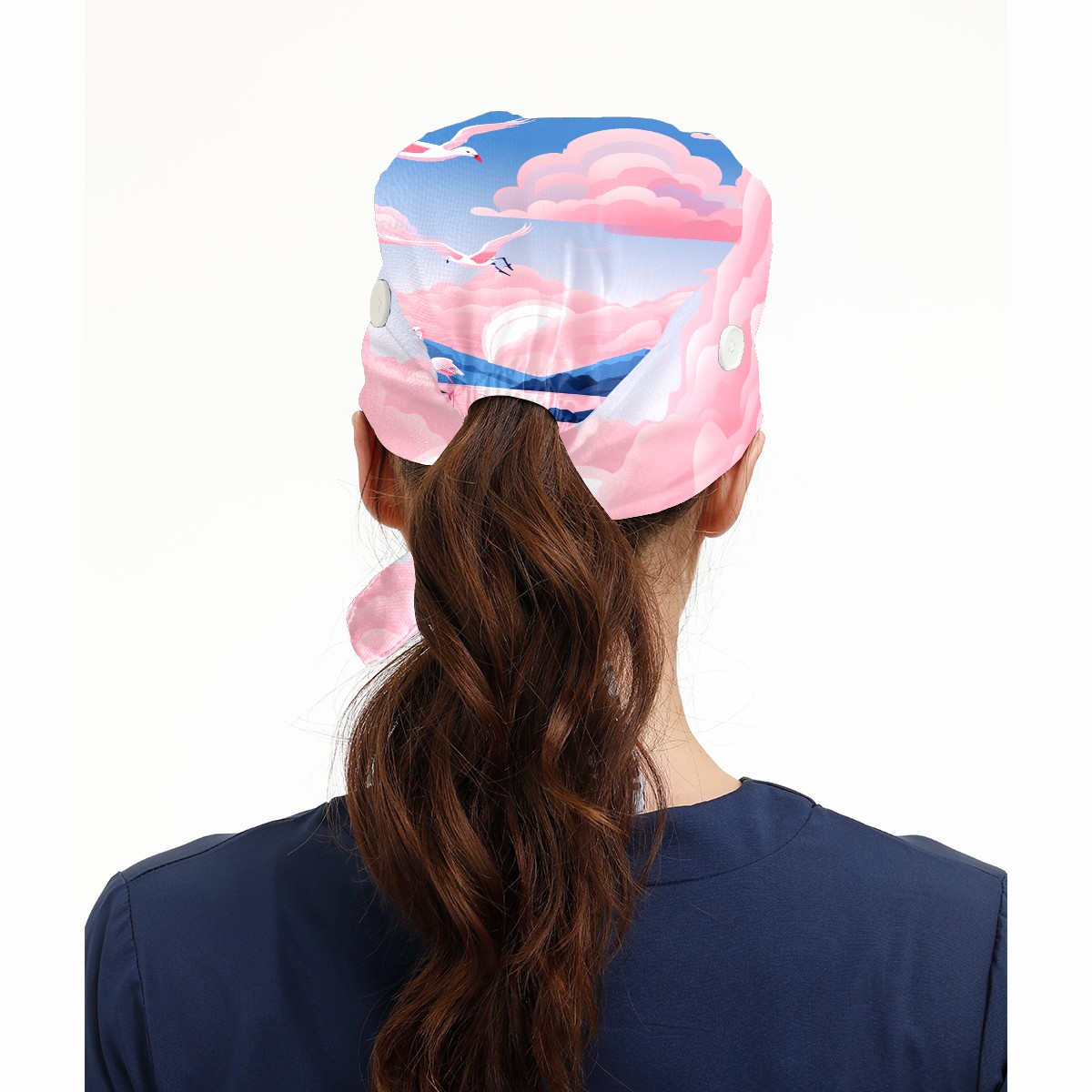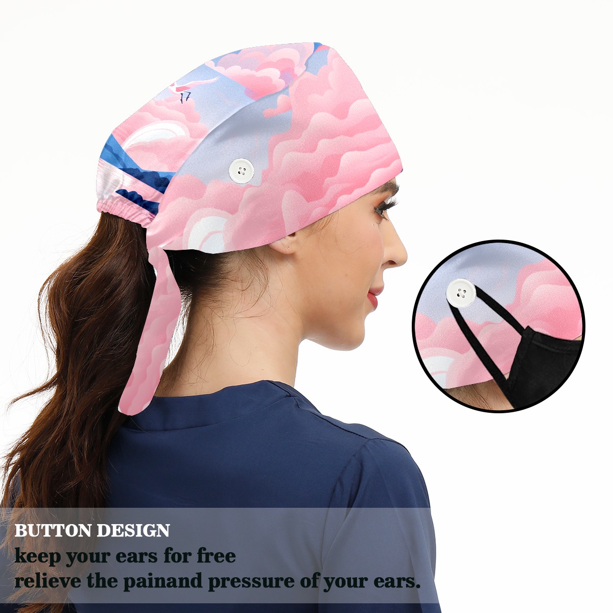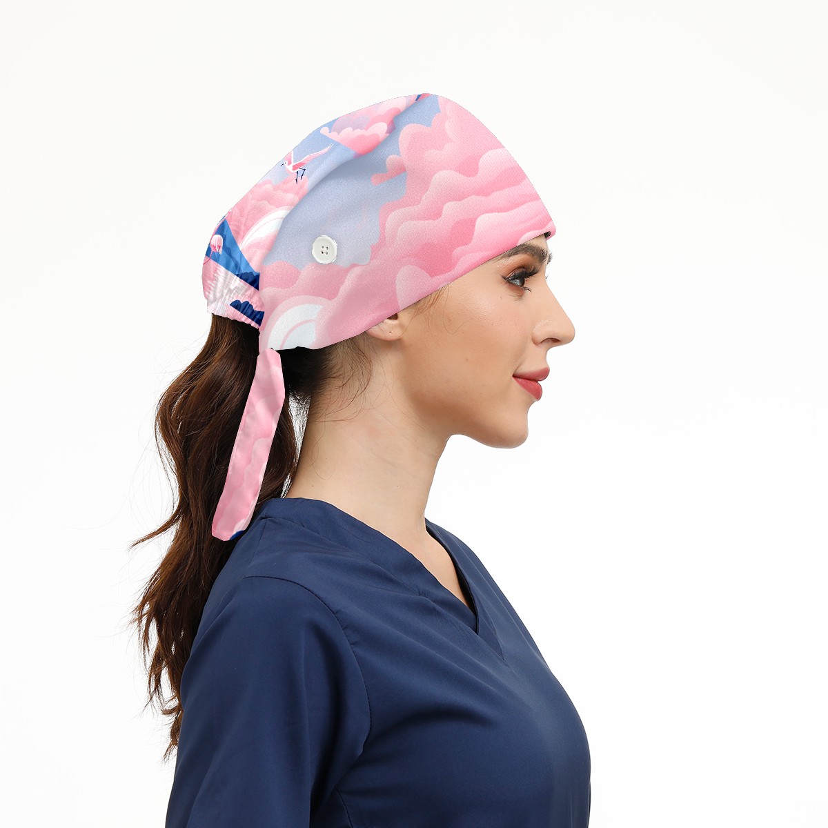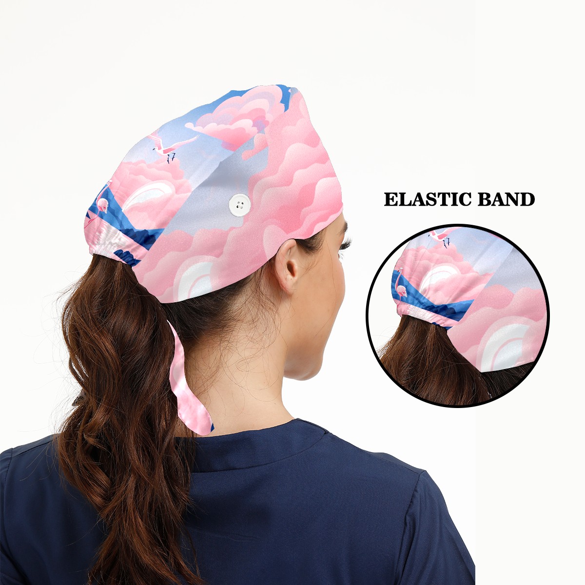 Working Caps with Button & Sweatband Satin Lined Cotton Adjustable Nurse Hats Elastic Band Scrub Cap Surgeon Hat Flamingo (51)