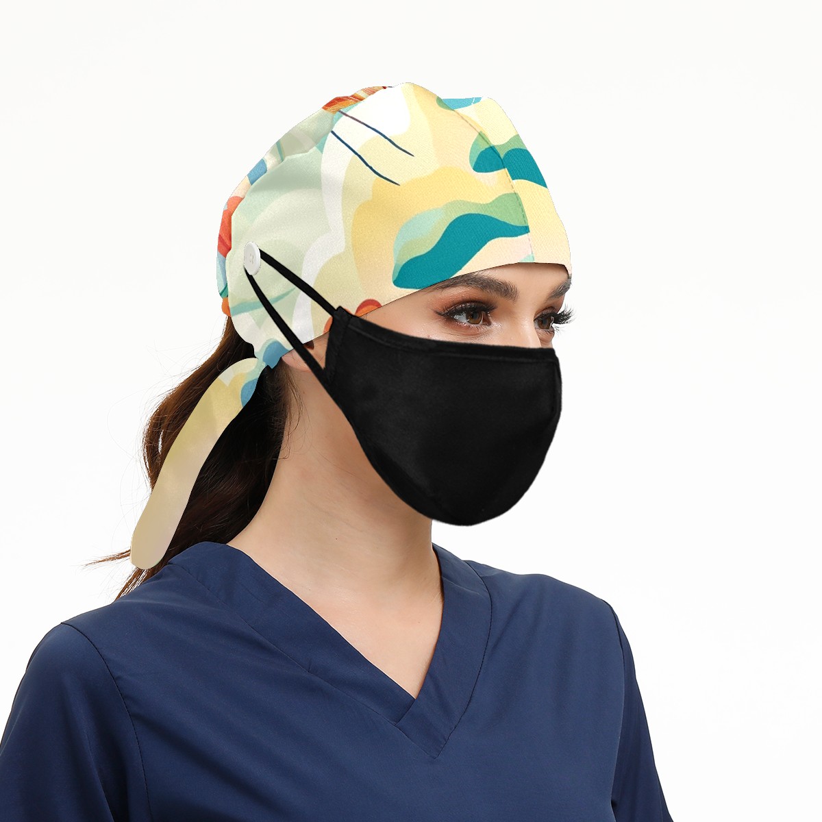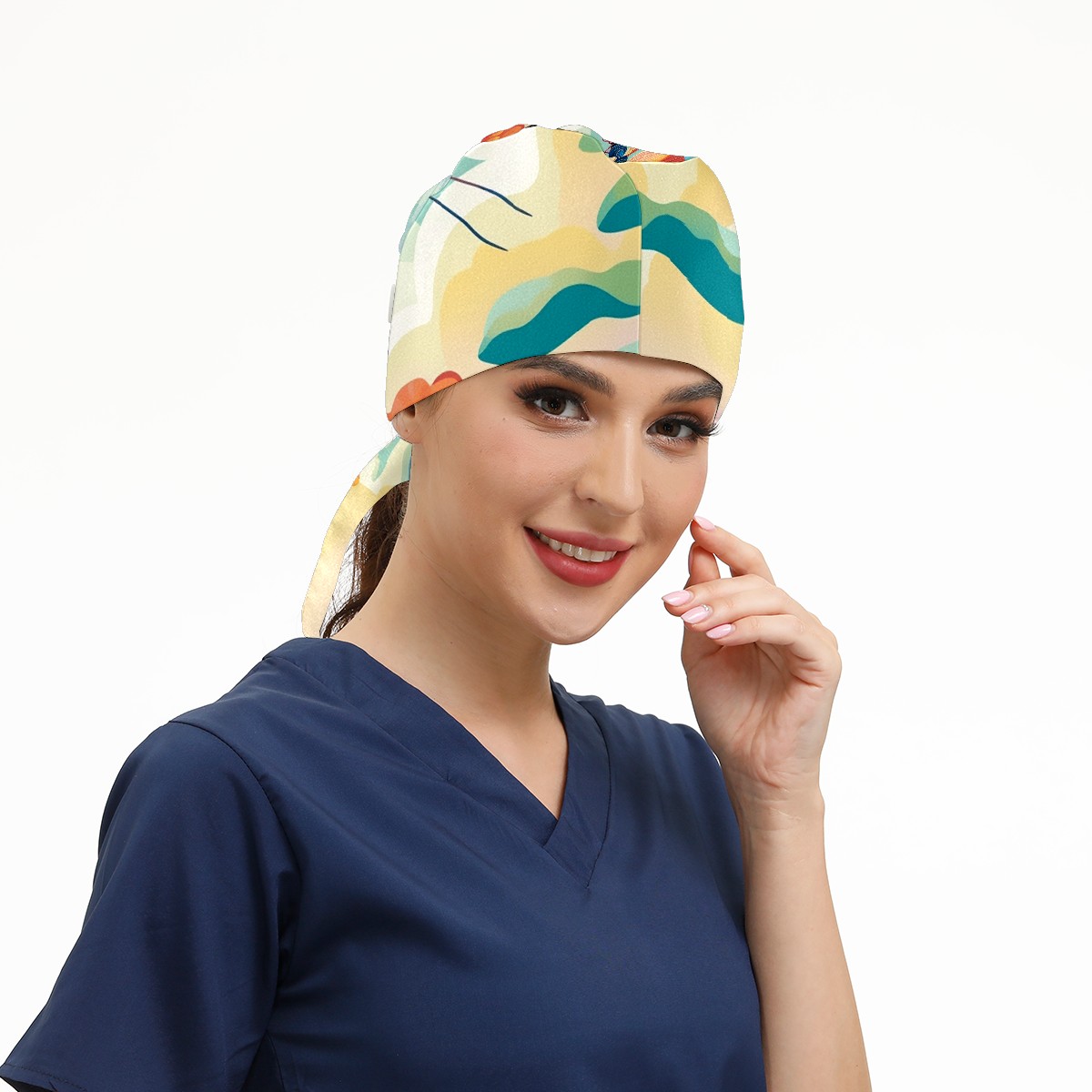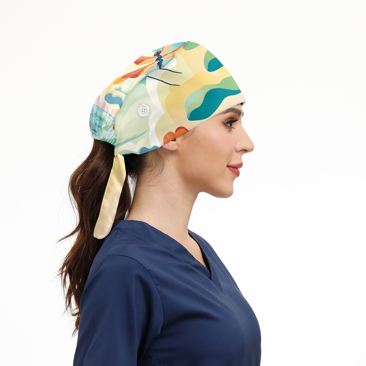 Working Caps with Button & Sweatband Satin Lined Cotton Adjustable Nurse Hats Elastic Band Scrub Cap Surgeon Hat Dragonfly (59)