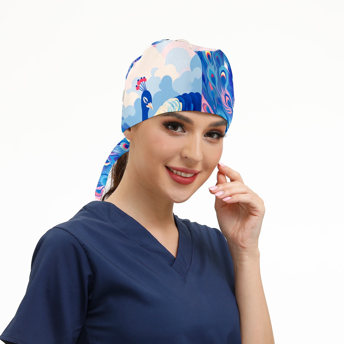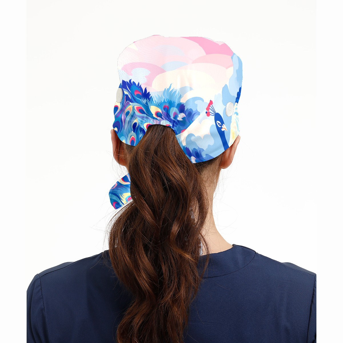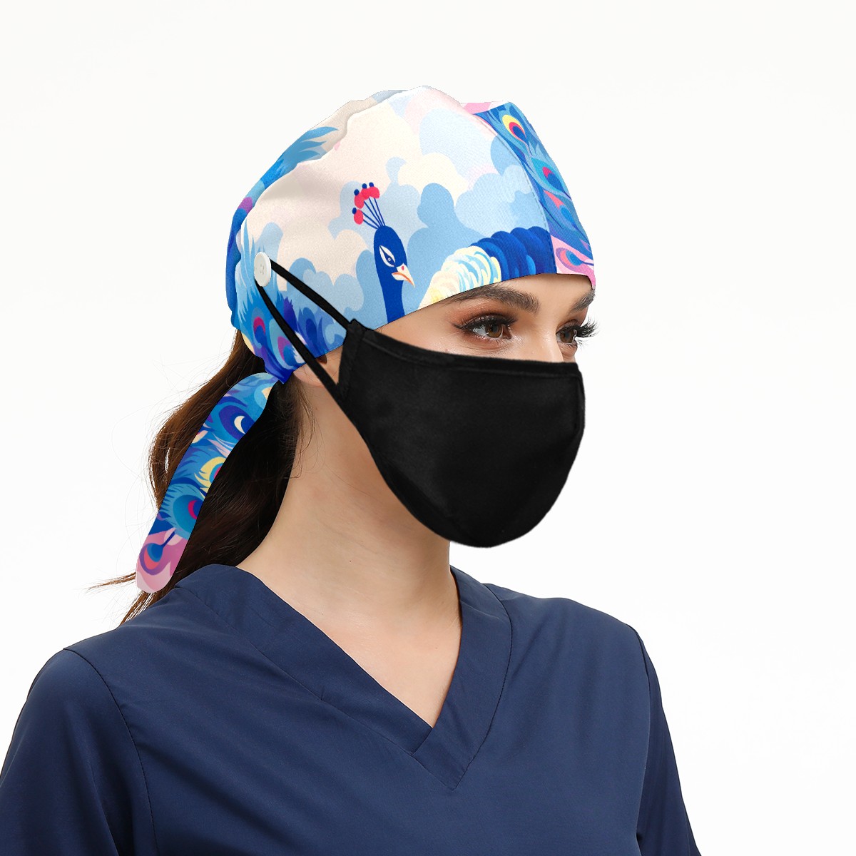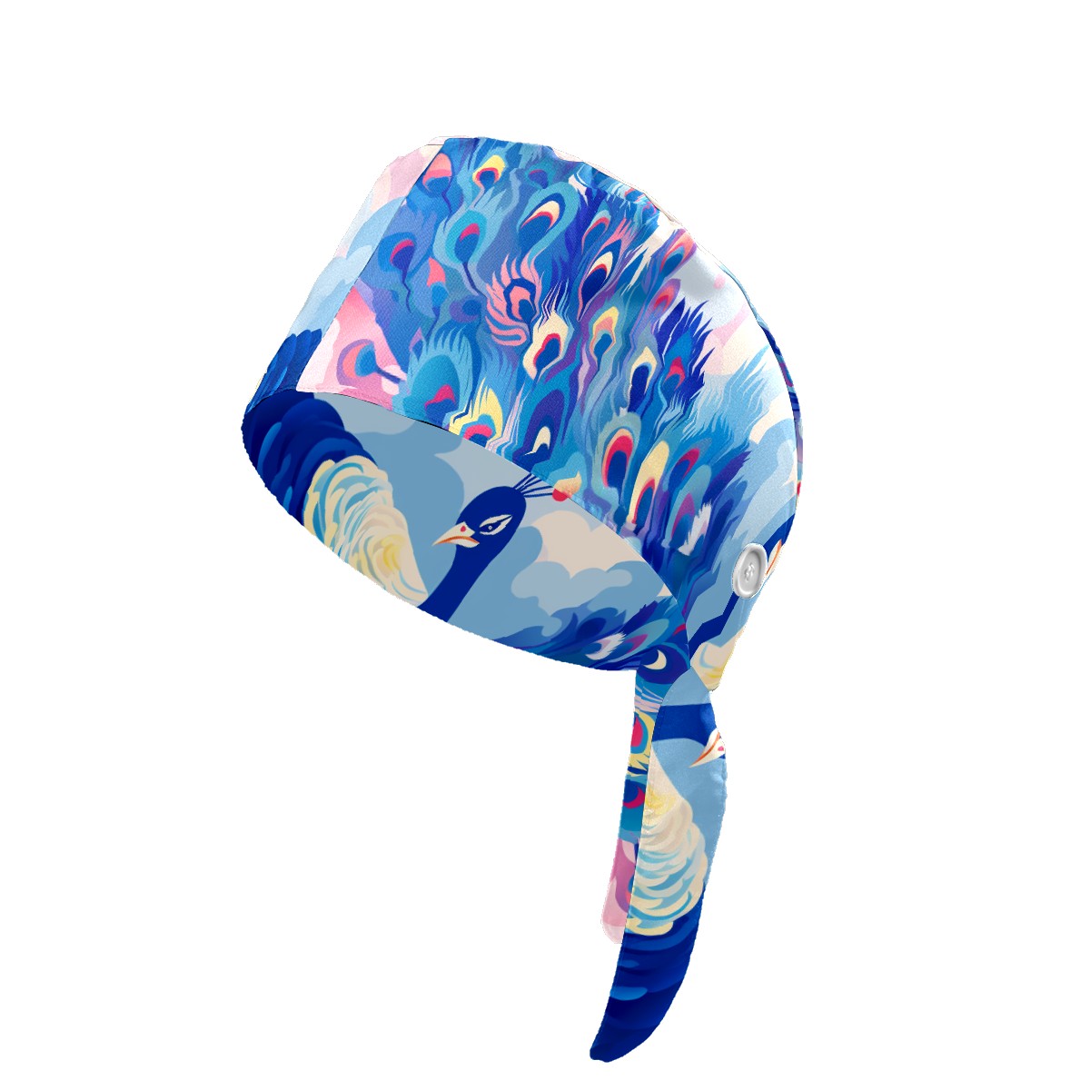 Working Caps with Button & Sweatband Satin Lined Cotton Adjustable Nurse Hats Elastic Band Scrub Cap Surgeon Hat Peacock (5)