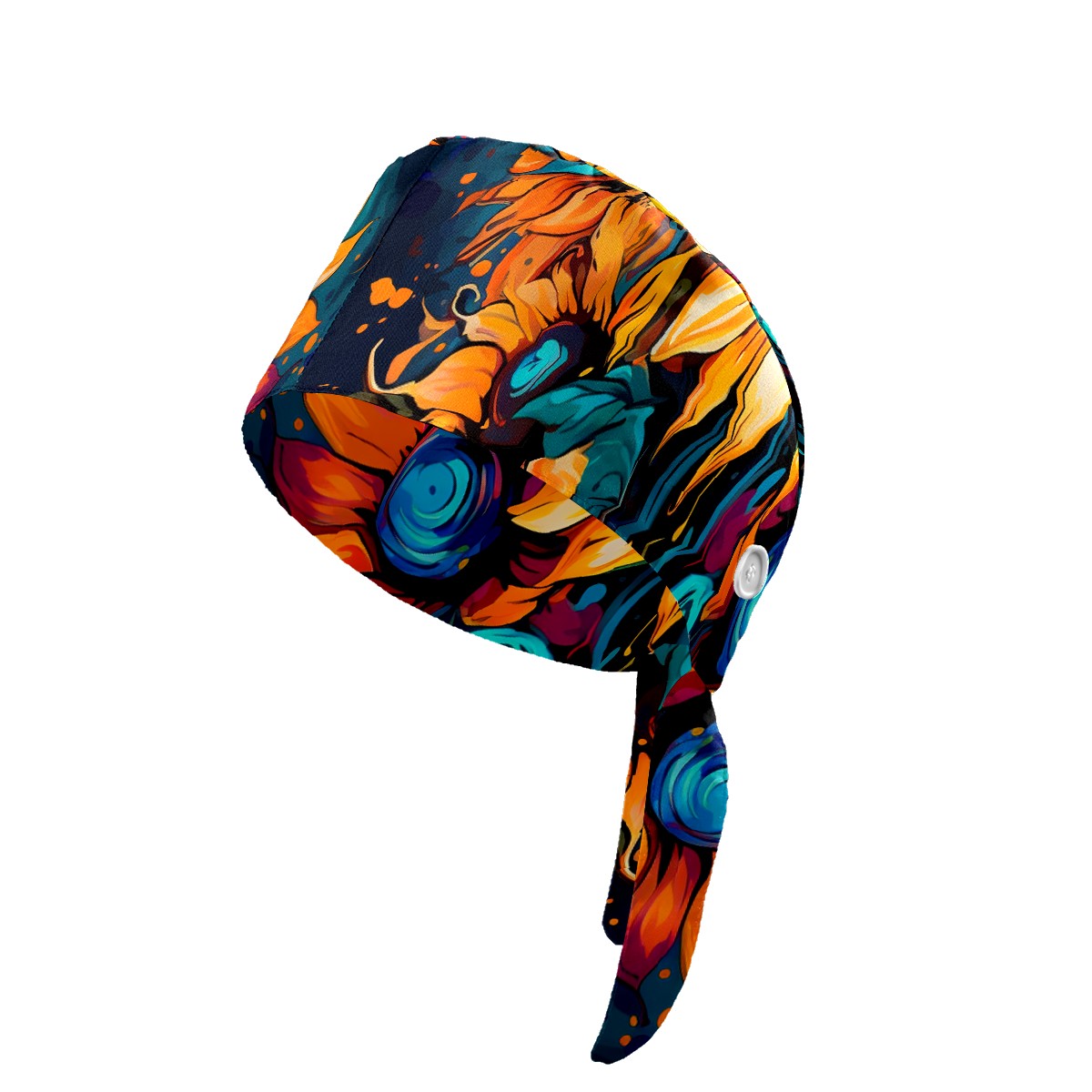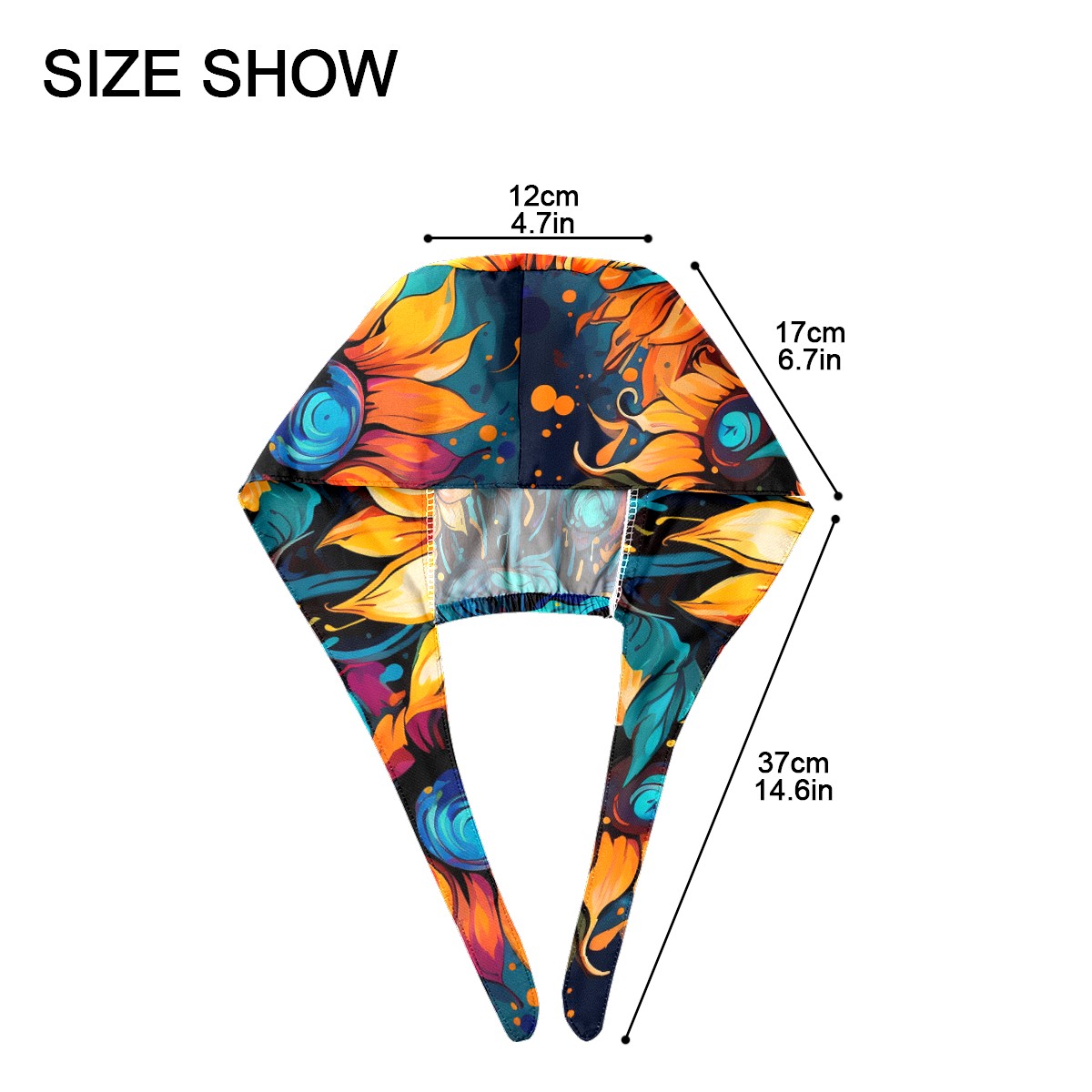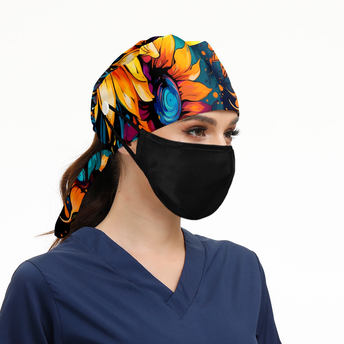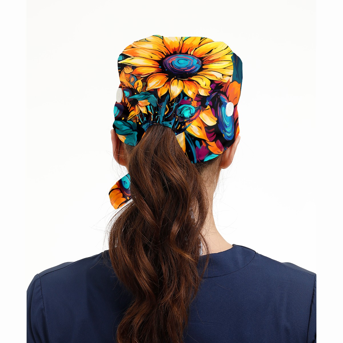 Working Caps with Button & Sweatband Satin Lined Cotton Adjustable Nurse Hats Elastic Band Scrub Cap Surgeon Hat Sunflower (9)