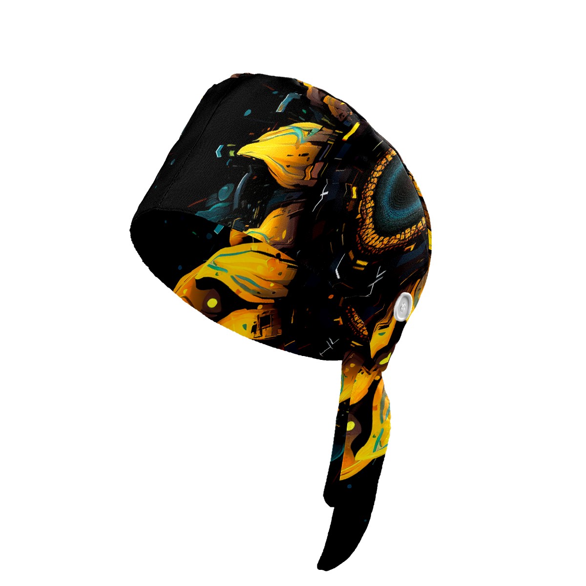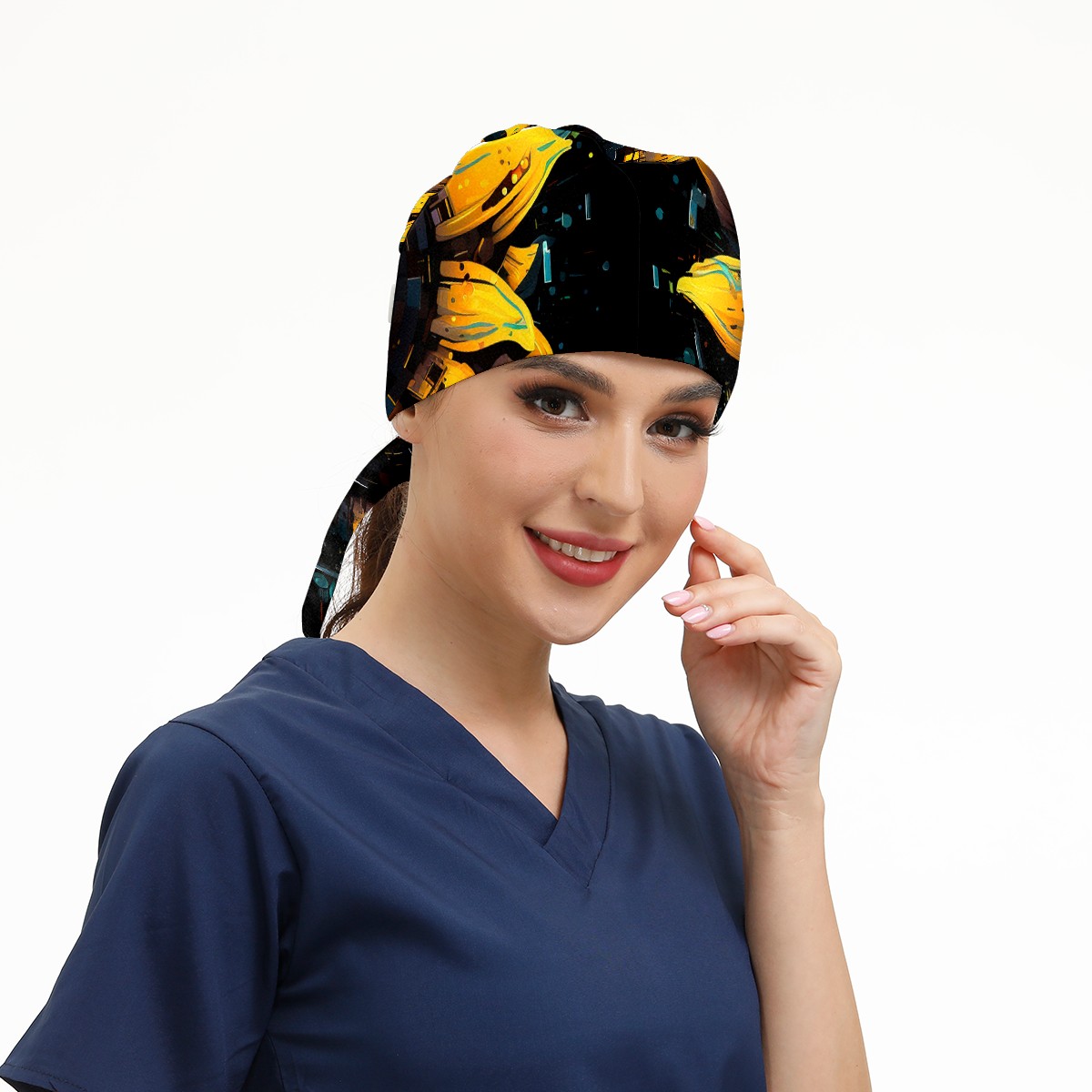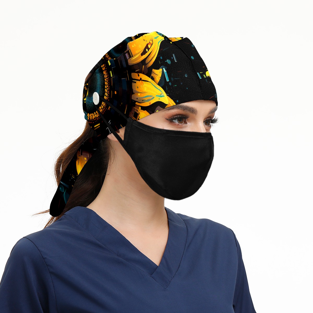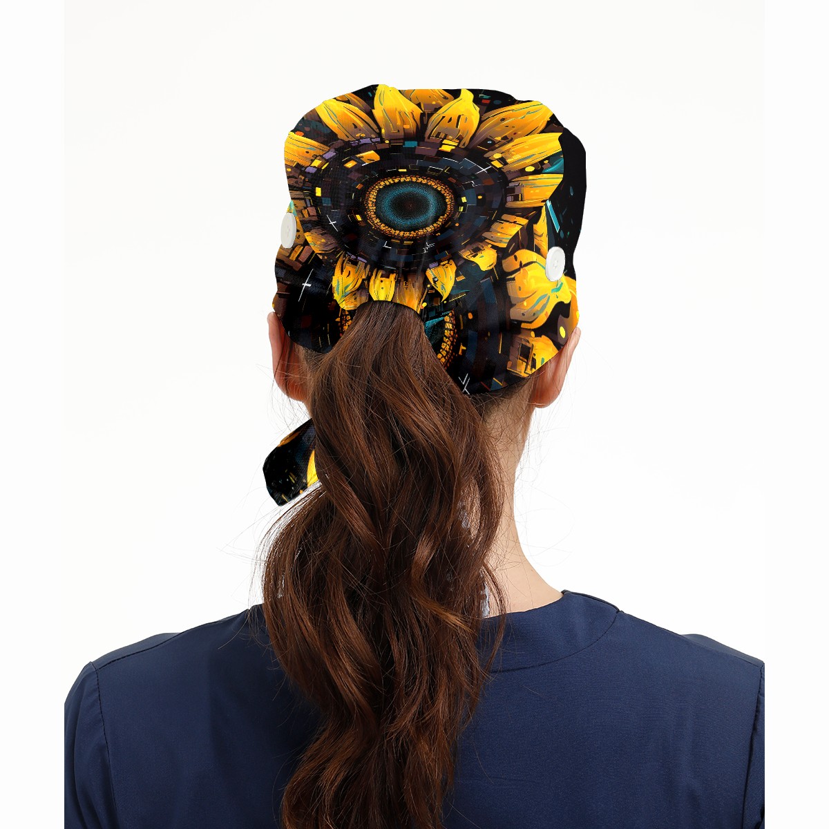 Working Caps with Button & Sweatband Satin Lined Cotton Adjustable Nurse Hats Elastic Band Scrub Cap Surgeon Hat Sunflower (52)