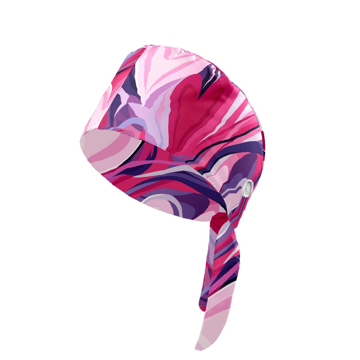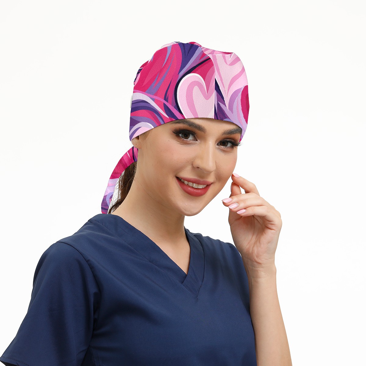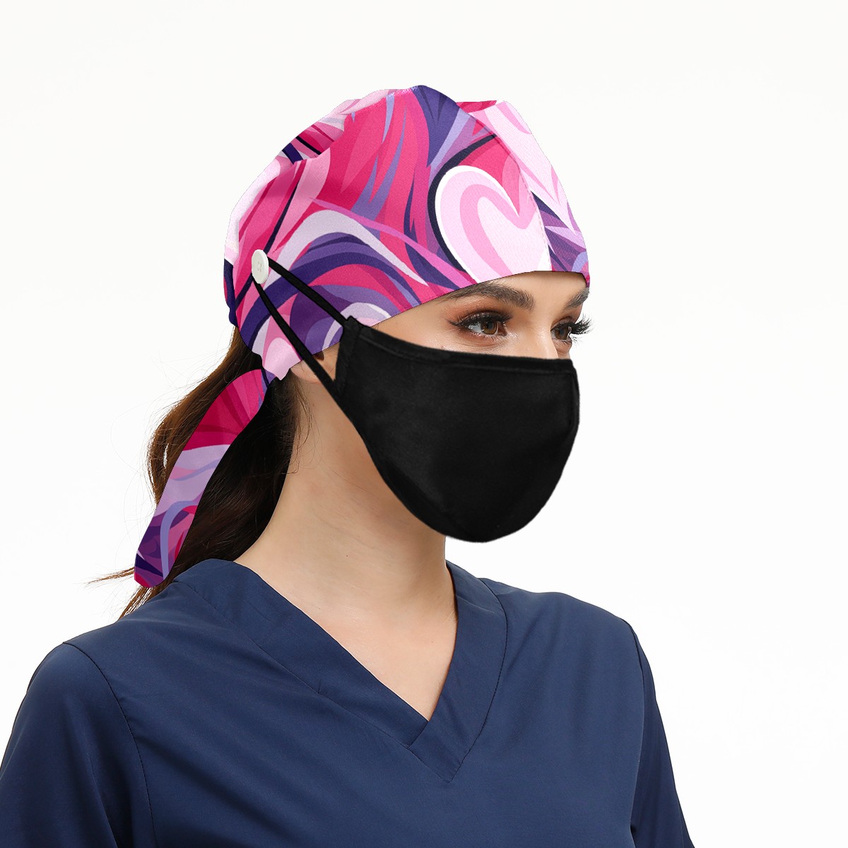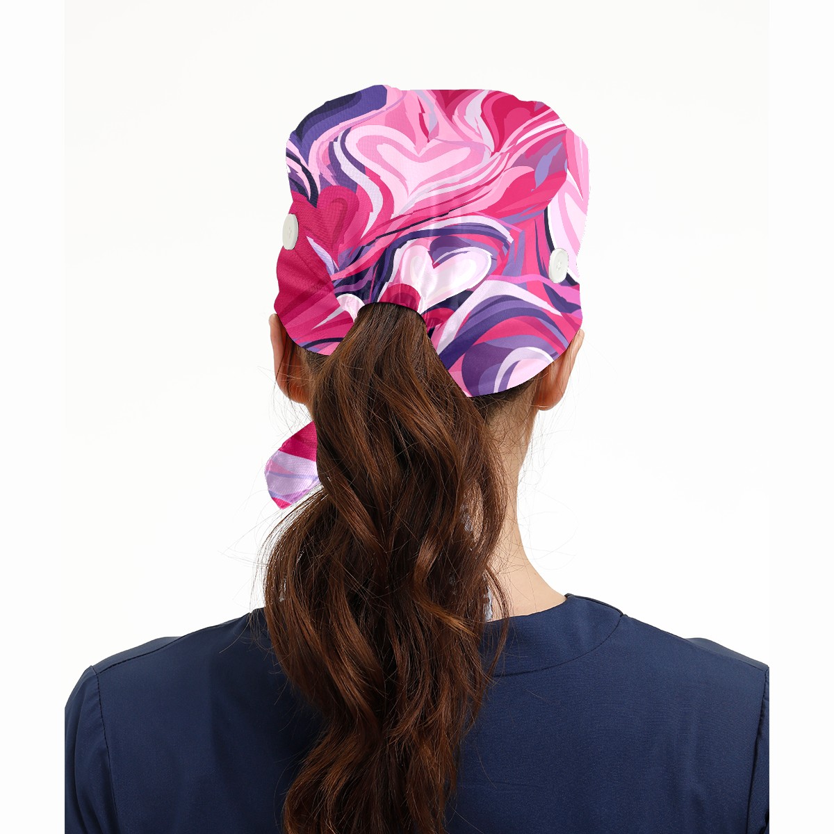 Working Caps with Button & Sweatband Satin Lined Cotton Adjustable Nurse Hats Elastic Band Scrub Cap Surgeon Hat Pink Heart Valentine