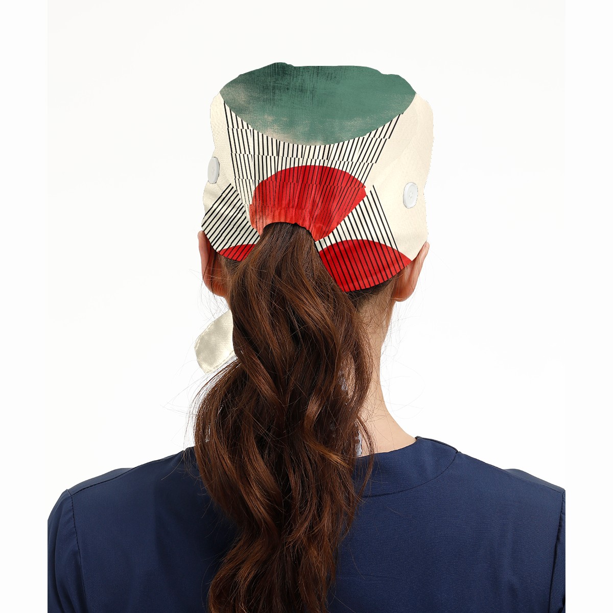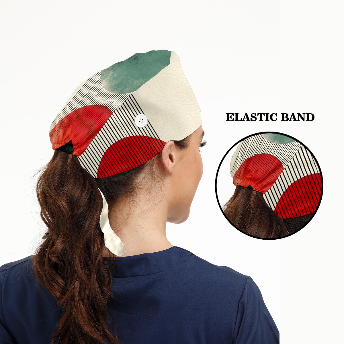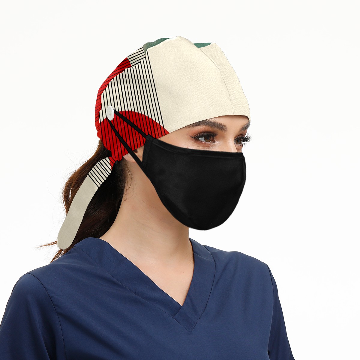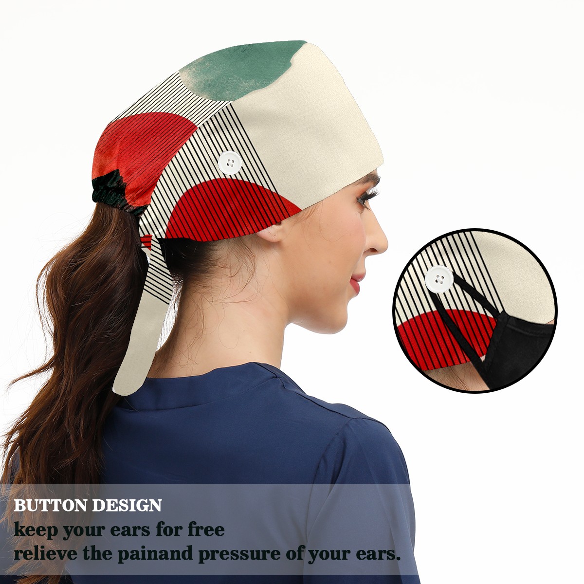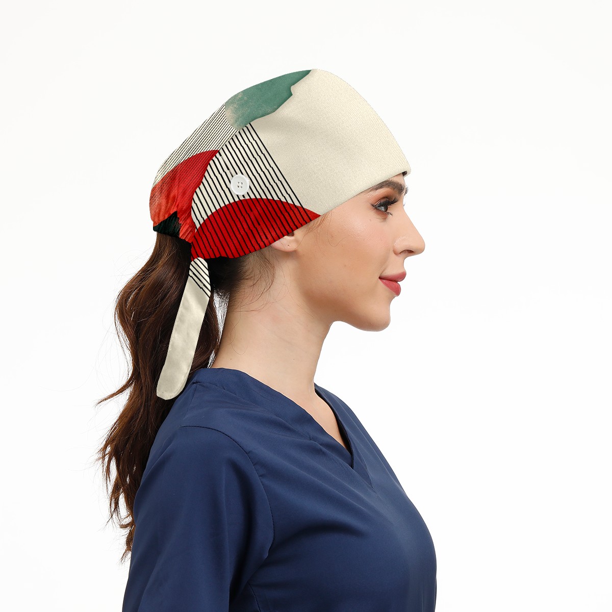 Working Caps with Button & Sweatband Satin Lined Cotton Adjustable Nurse Hats Elastic Band Scrub Cap Surgeon Hat Abstract Sun