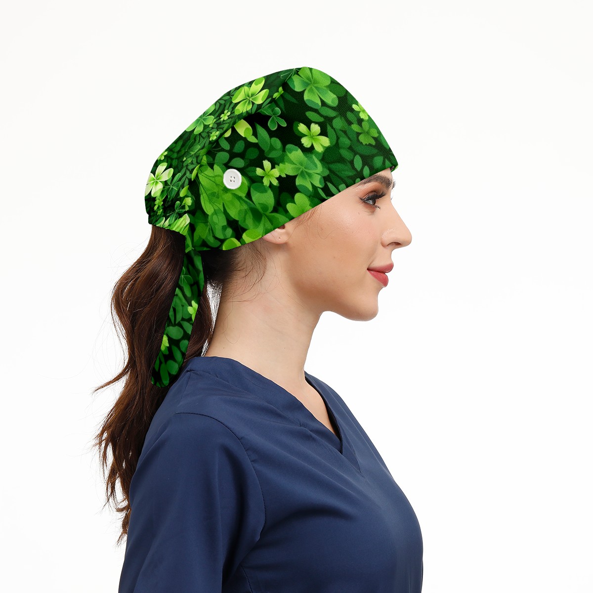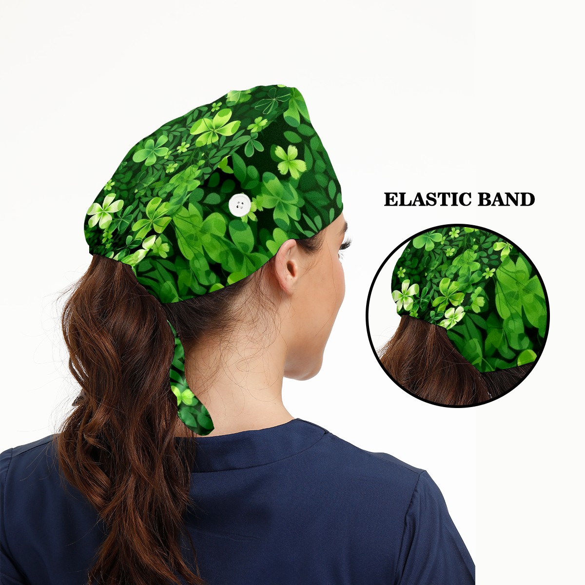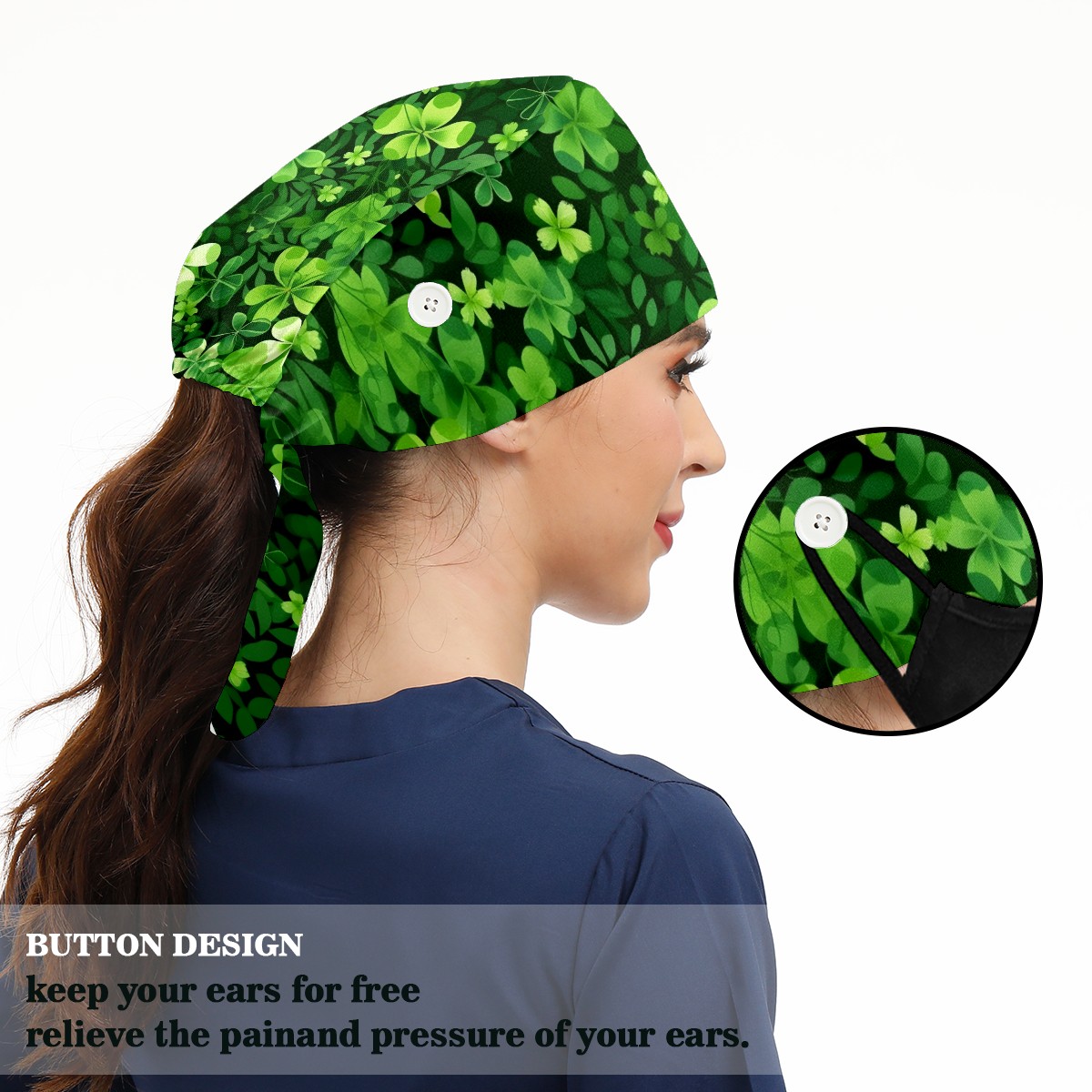 Working Caps with Button & Sweatband Satin Lined Cotton Adjustable Nurse Hats Elastic Band Scrub Cap Surgeon Hat ST Patrick