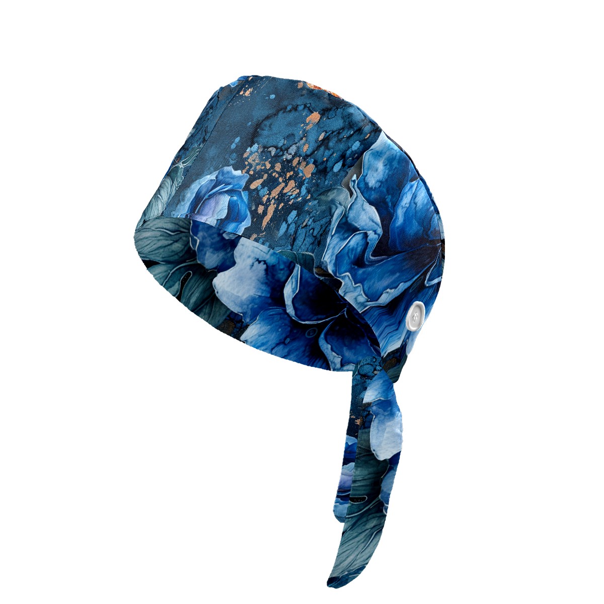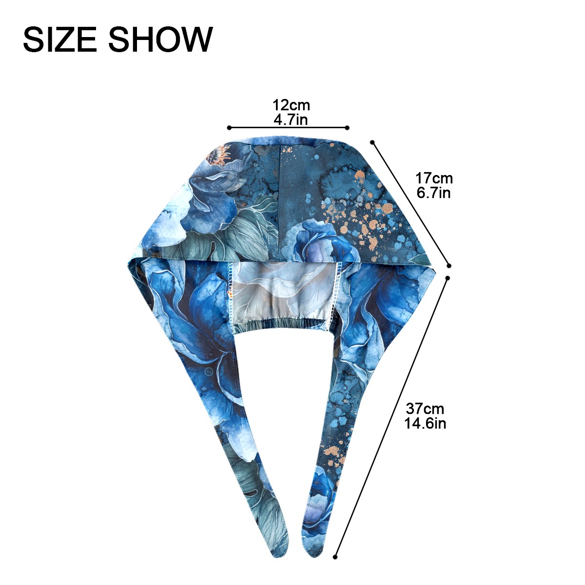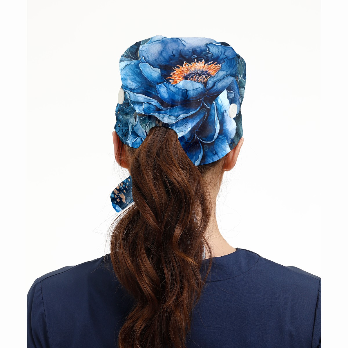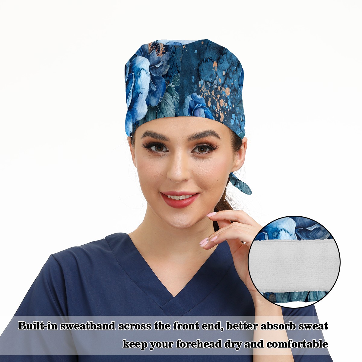 Working Caps with Button & Sweatband Satin Lined Cotton Adjustable Nurse Hats Elastic Band Scrub Cap Surgeon Hat Peony