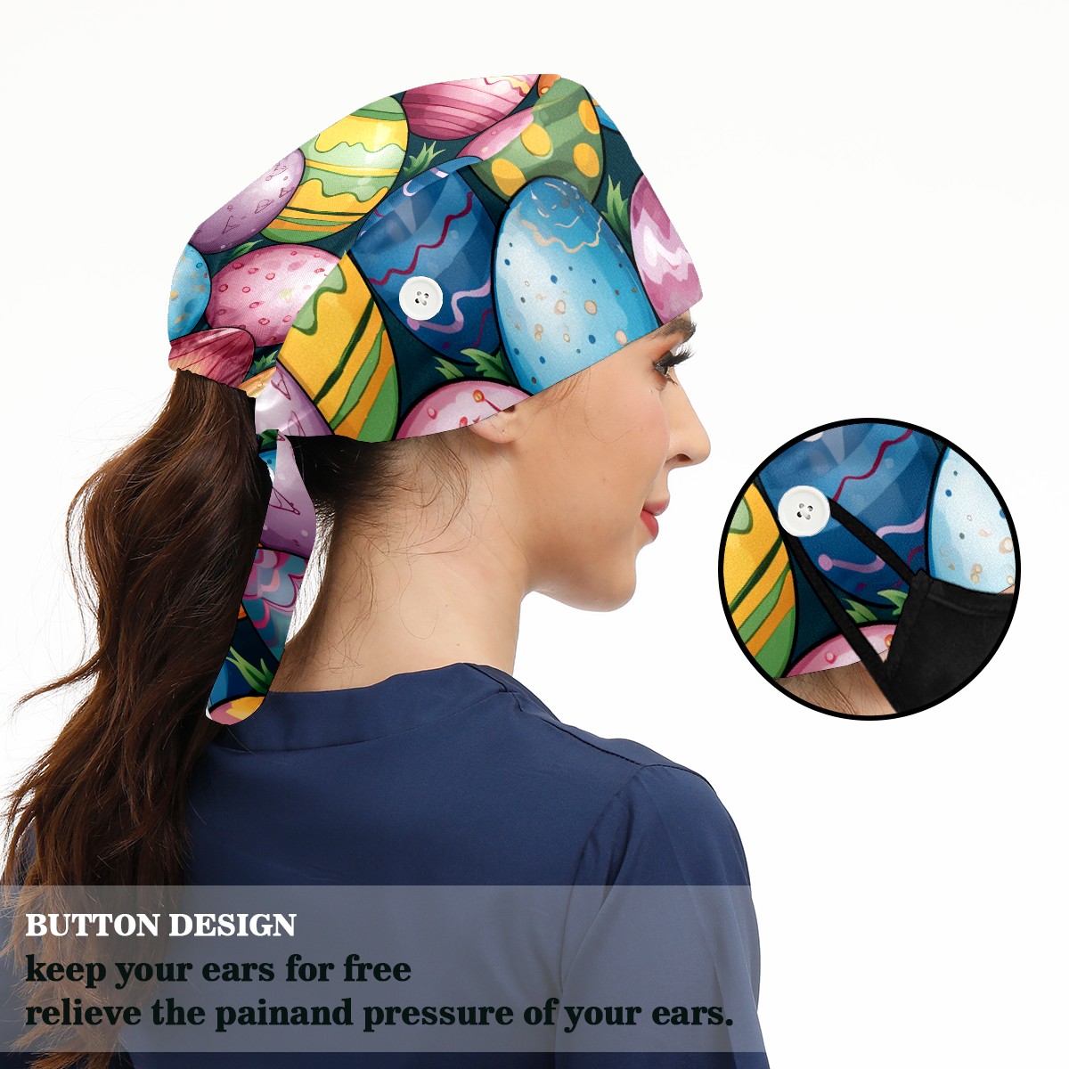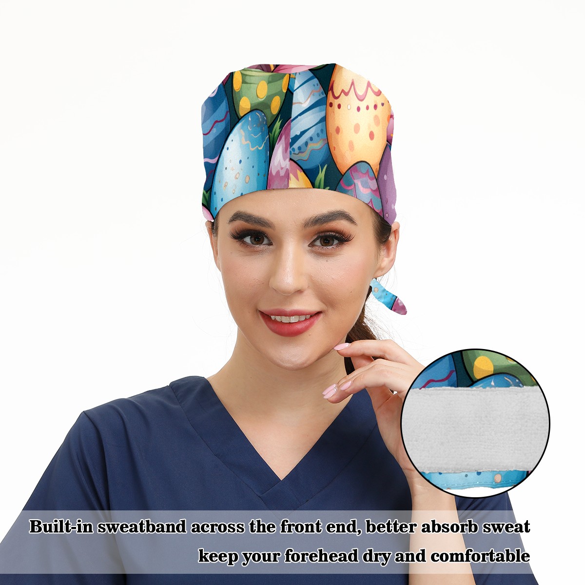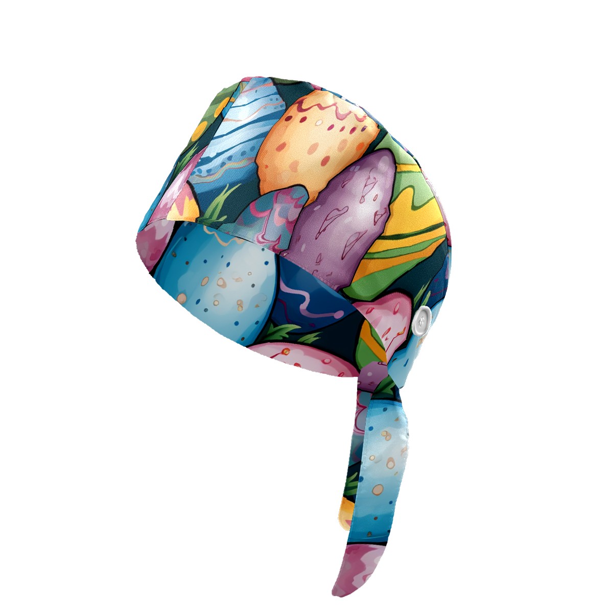 Working Caps with Button & Sweatband Satin Lined Cotton Adjustable Nurse Hats Elastic Band Scrub Cap Surgeon Hat Easter Eggs (51)