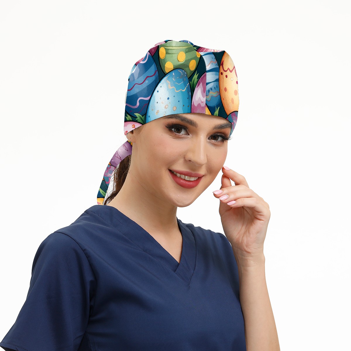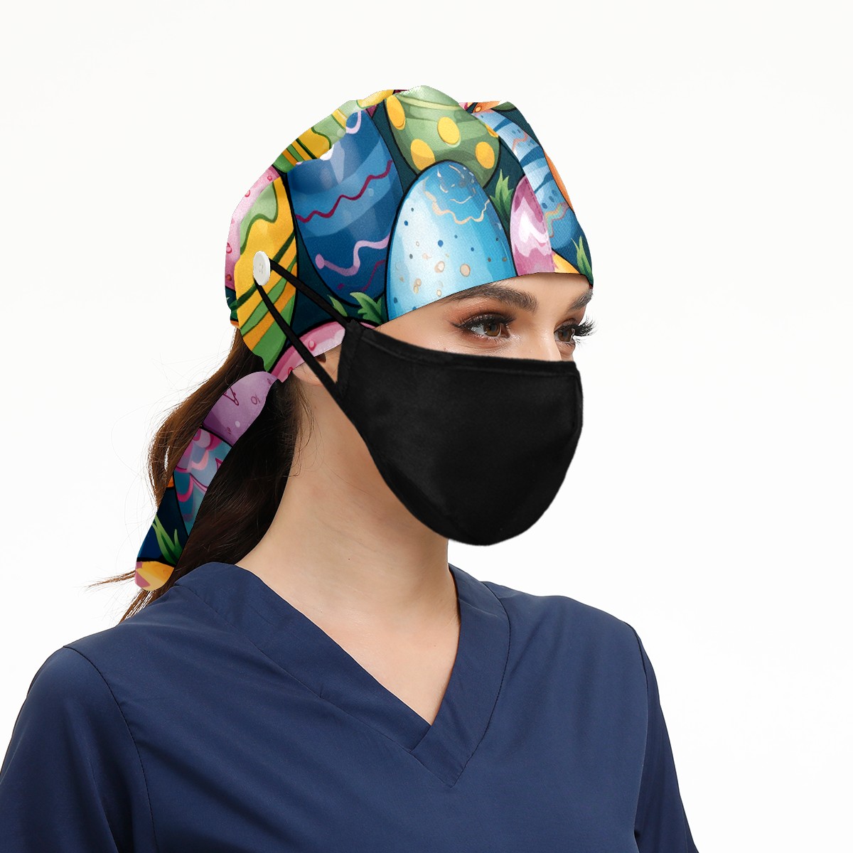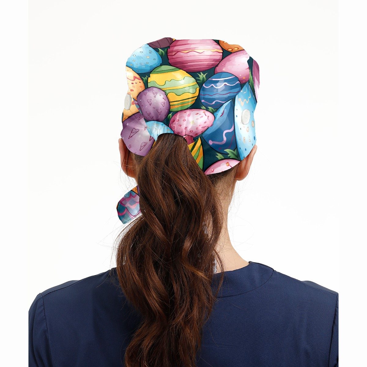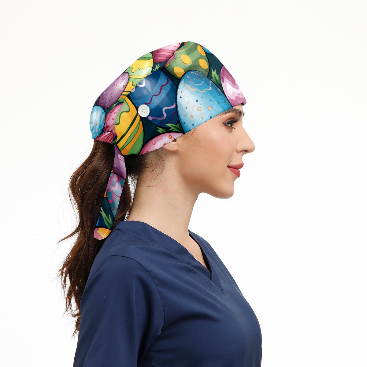 Working Caps with Button & Sweatband Satin Lined Cotton Adjustable Nurse Hats Elastic Band Scrub Cap Surgeon Hat Easter Eggs (51)