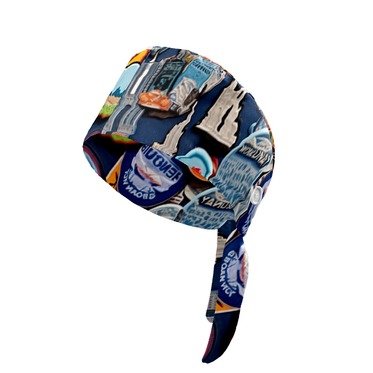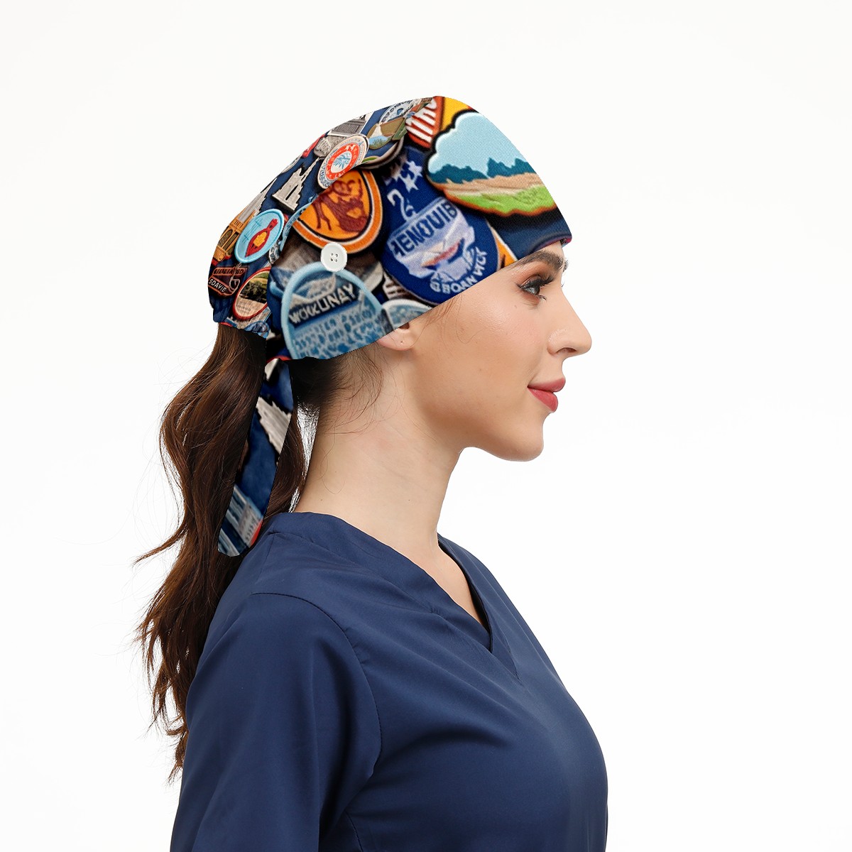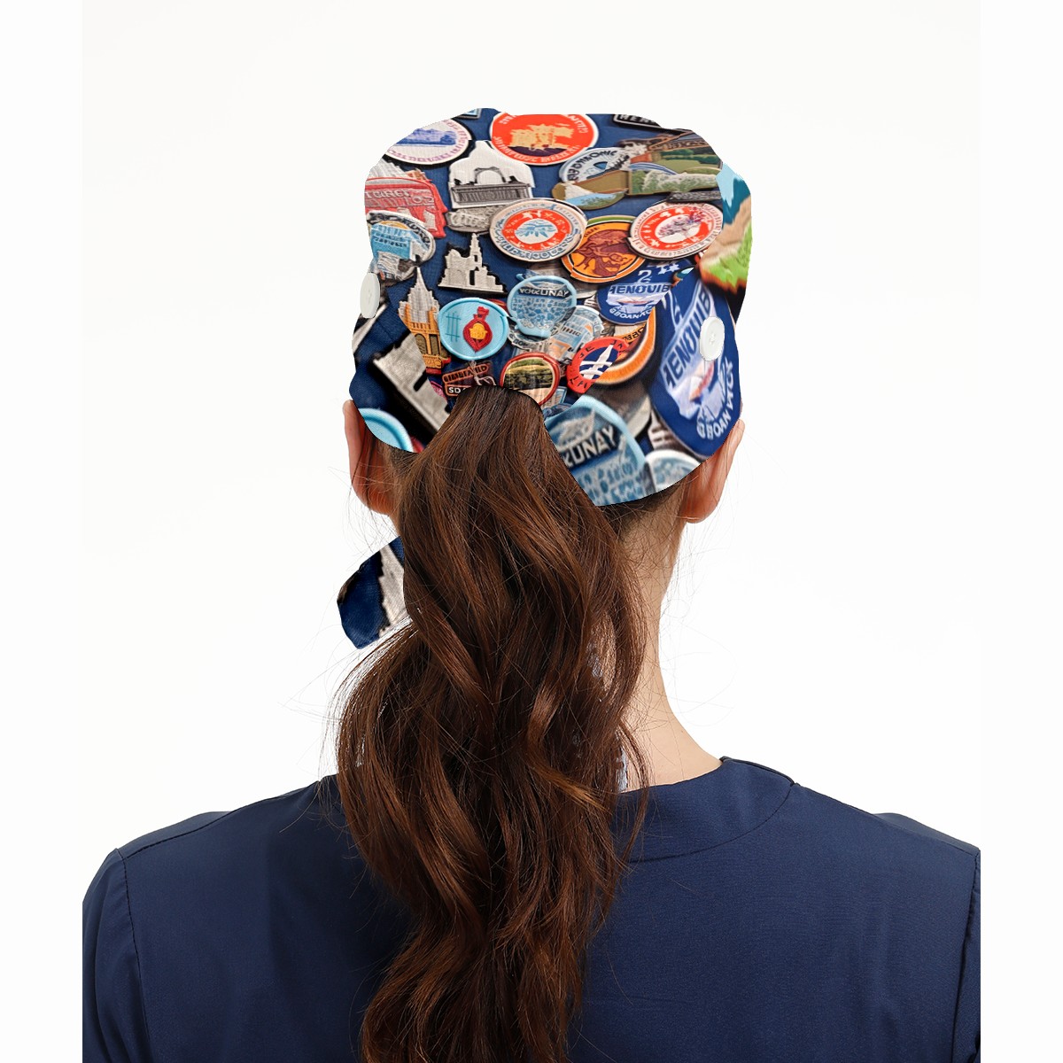 Working Caps with Button & Sweatband Satin Lined Cotton Adjustable Nurse Hats Elastic Band Scrub Cap Surgeon Hat Colorful Travel Sticker (8)